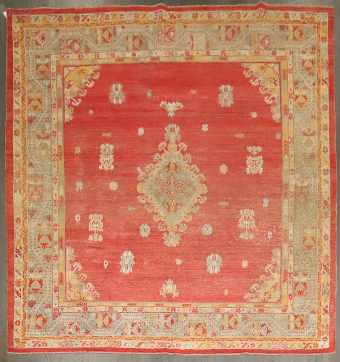 a Stunning late 19th century Angora Wool Turkish Oushak Square size Rug