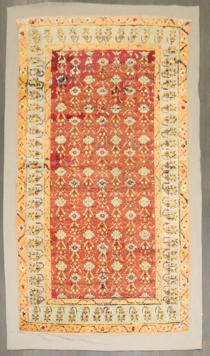 3rd quarter of the 19th Century Spectacular Indian Agra Carpet. Backed in Linen and can be used as a wall hanging