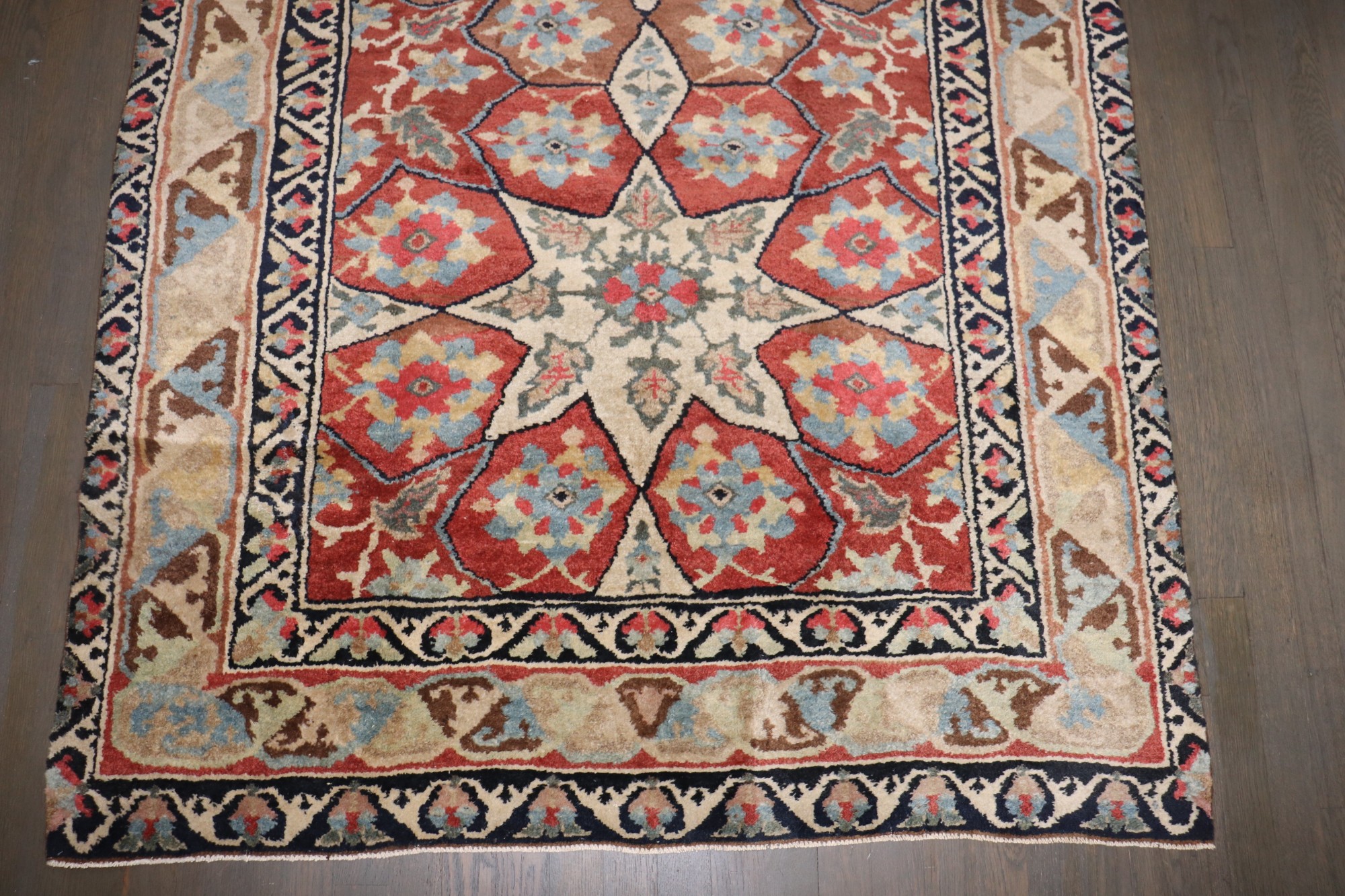 a rare early 20th-century Chinese Kansu rug feauturing a traditional Persian design on a red field.
