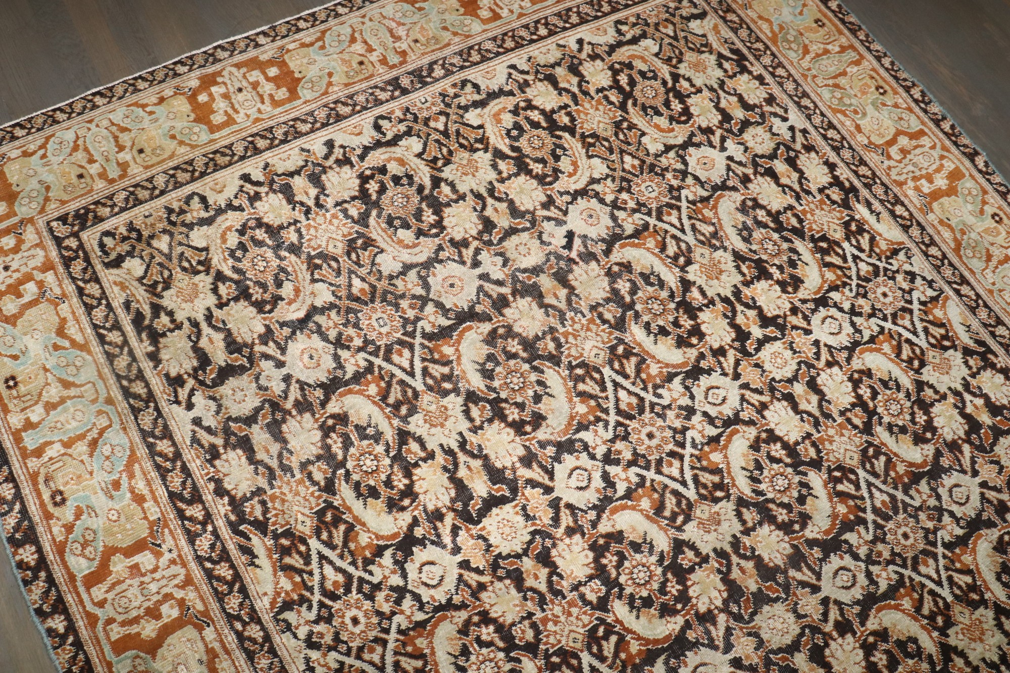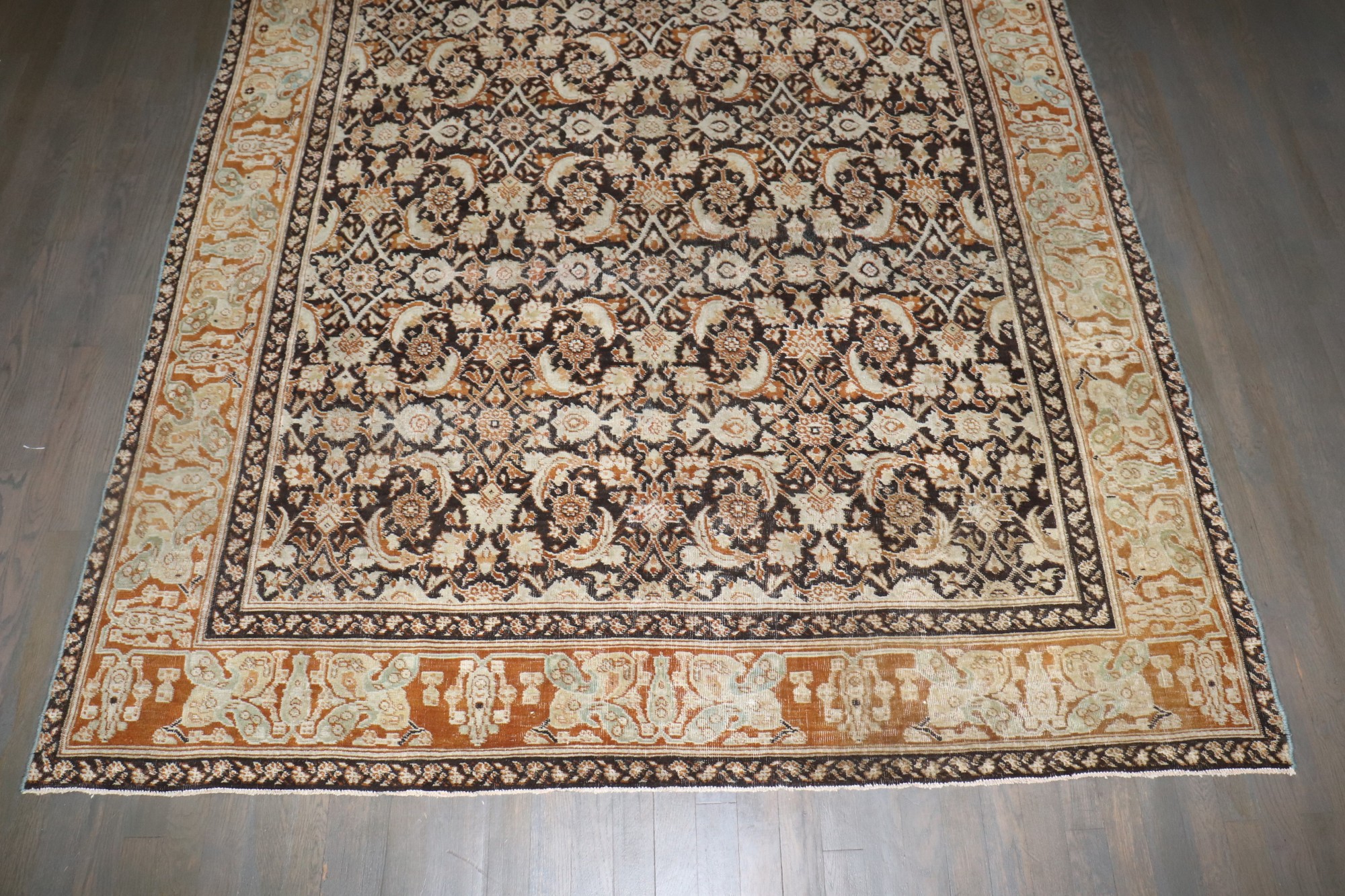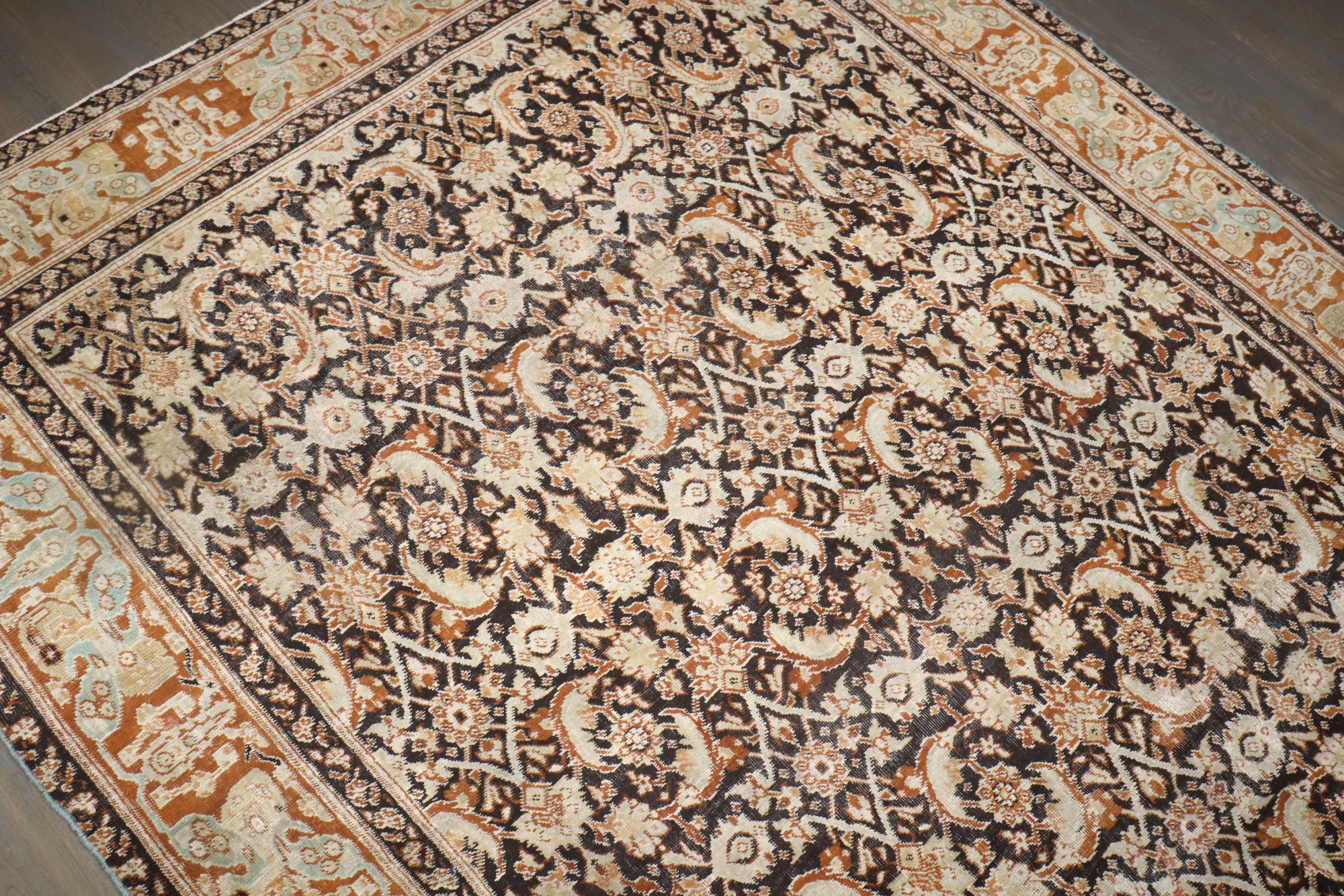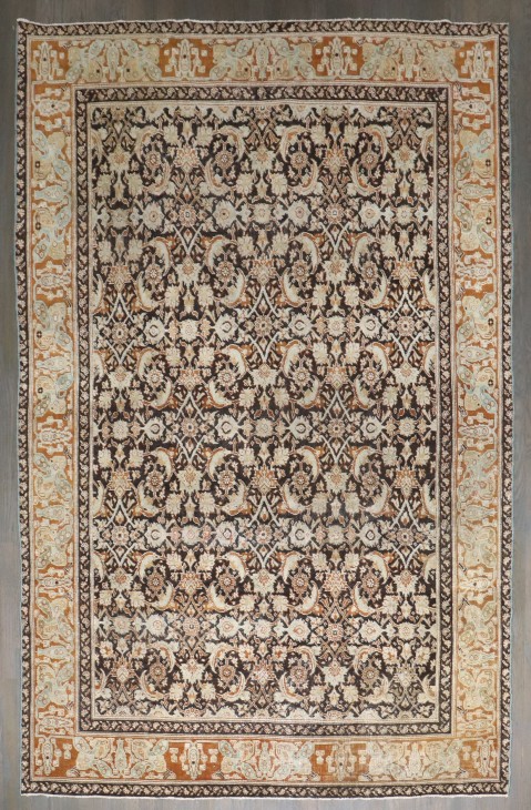 An early 20th-century Indian Agra Rug with an all-over herati design on a dark brown ground