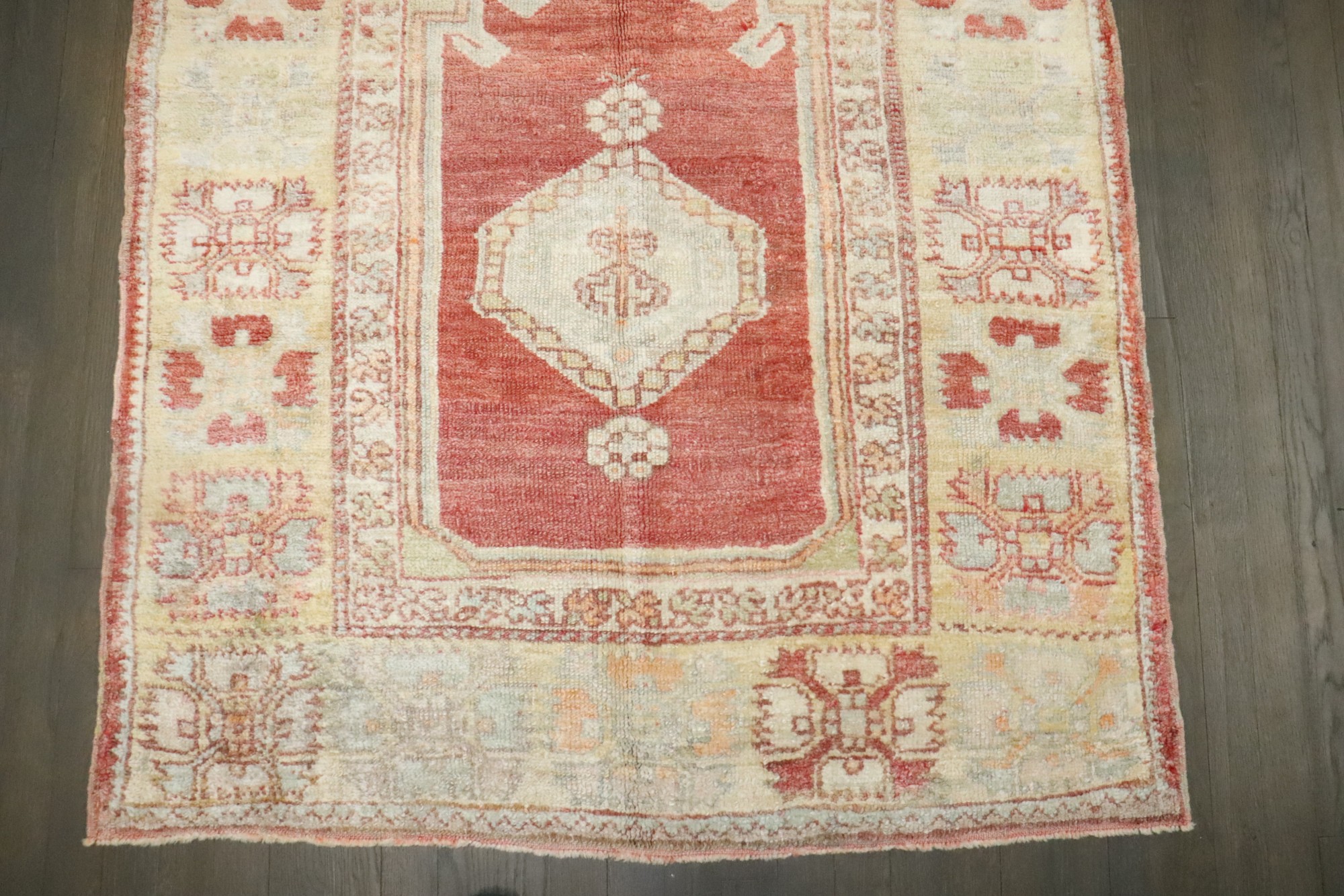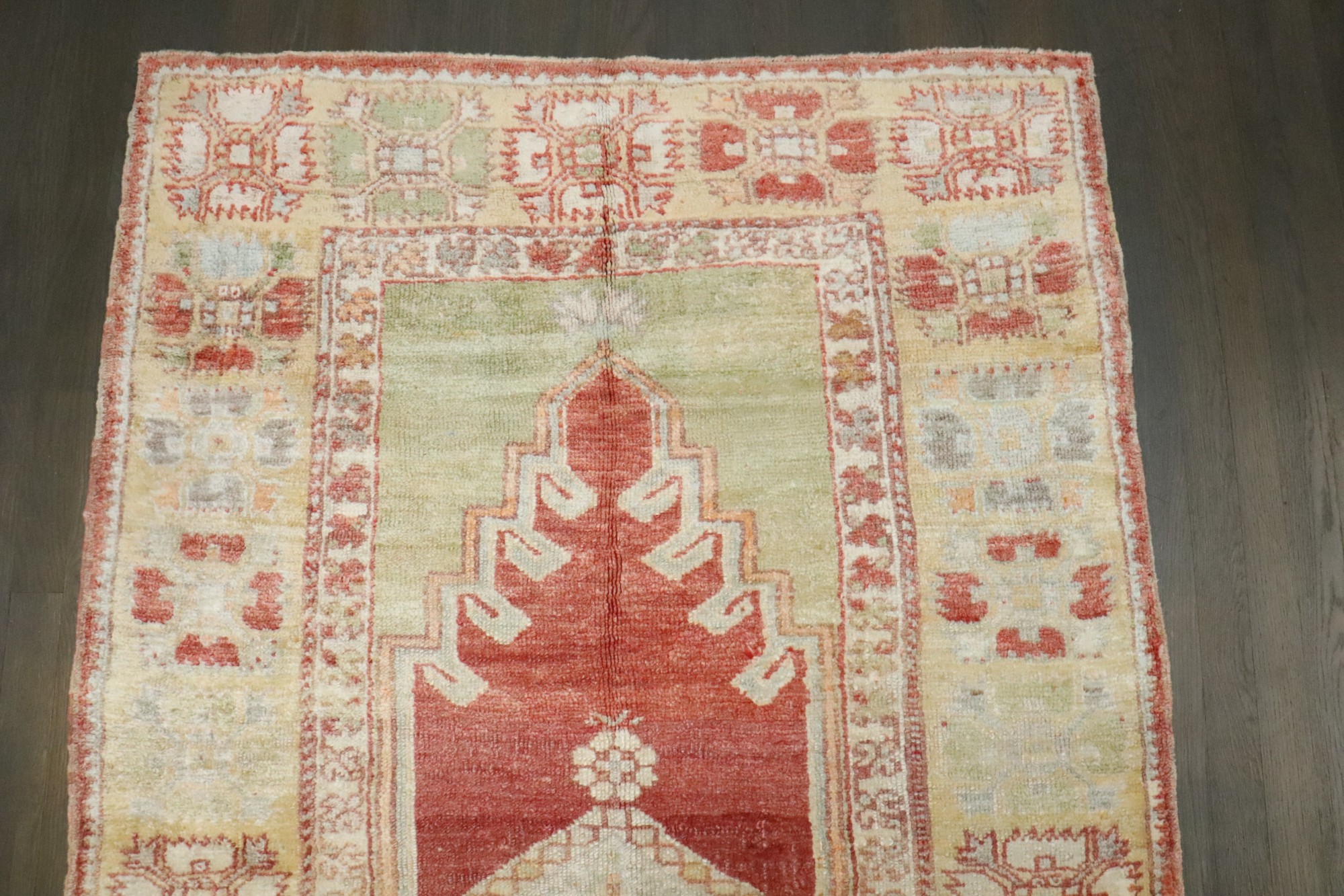 One of a kind Turkish Prayer Niche Anatolian Oushak Rug from the early 20th century.