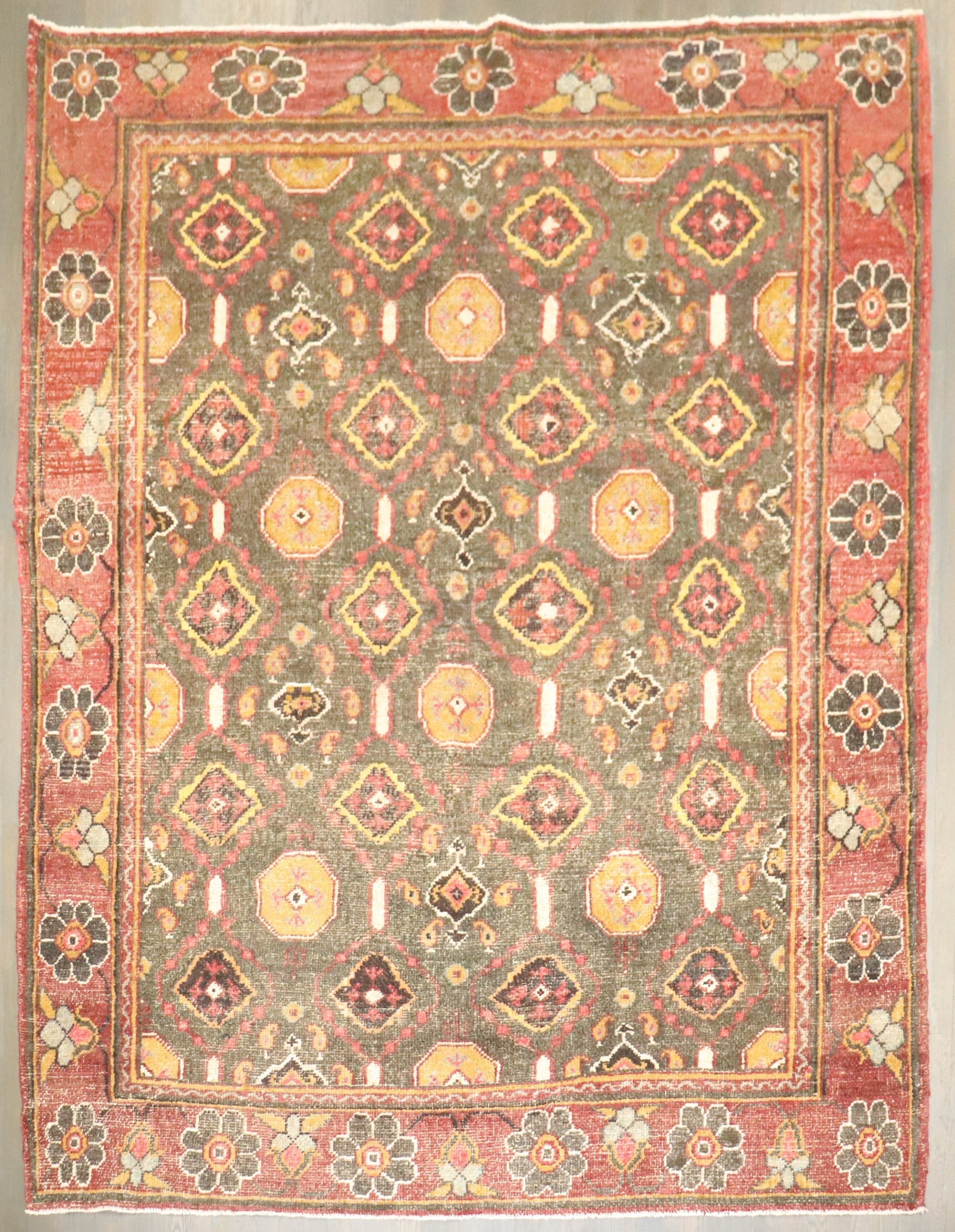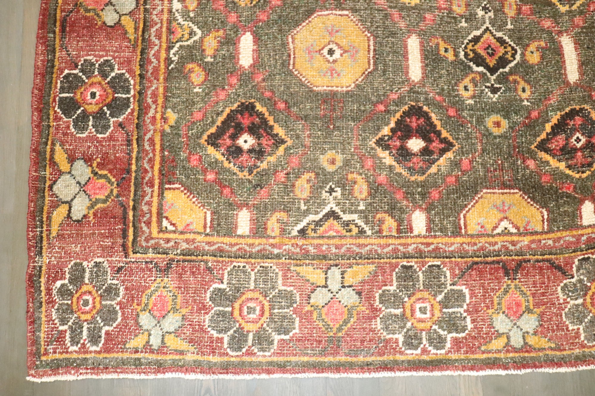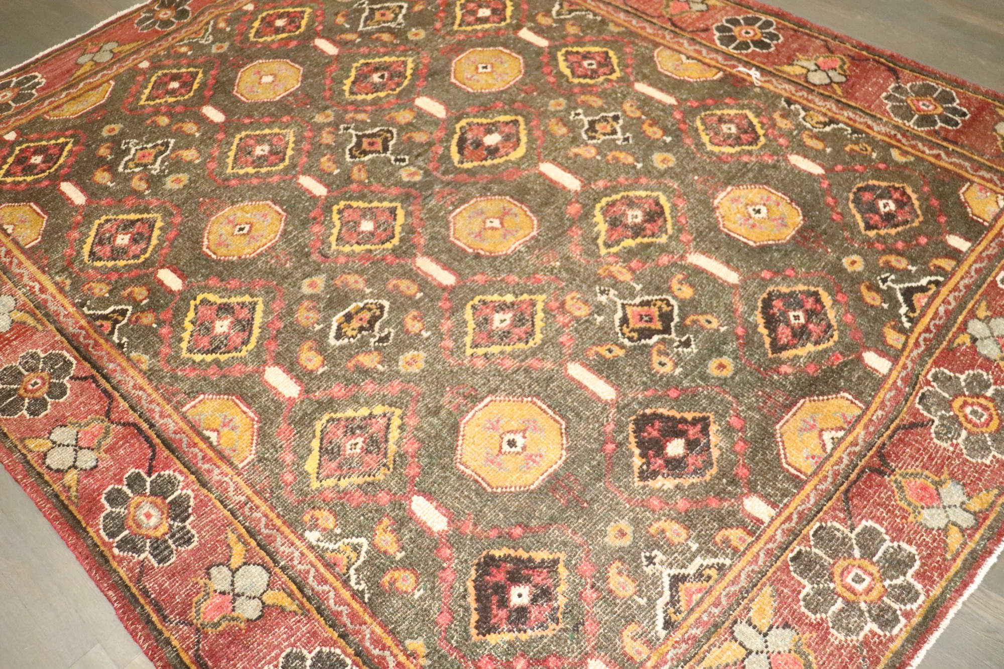 a square intermediate size turkish oushak carpet from the 1st quarter of the 20th century