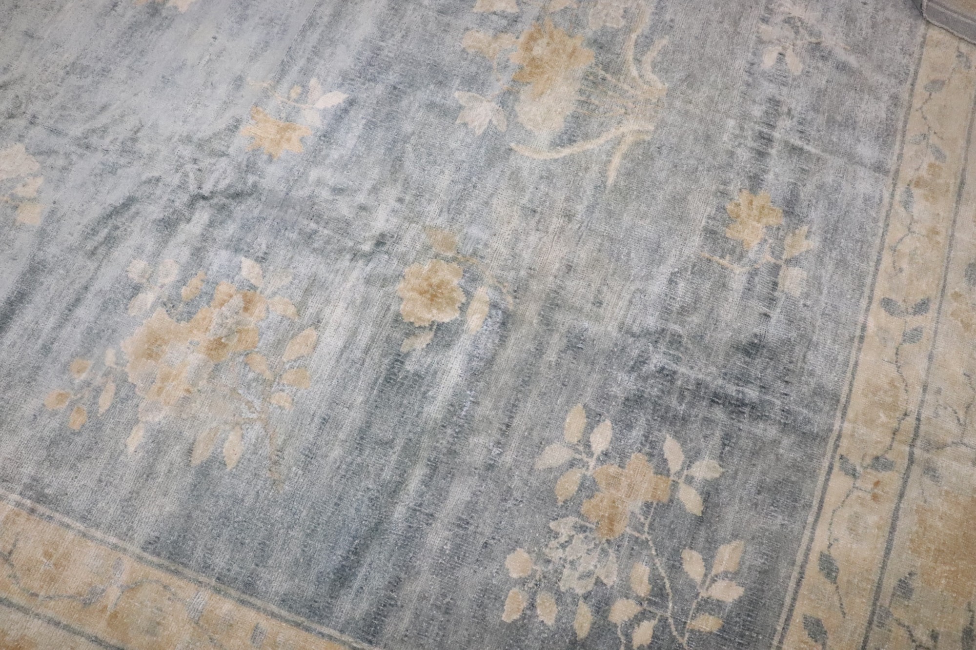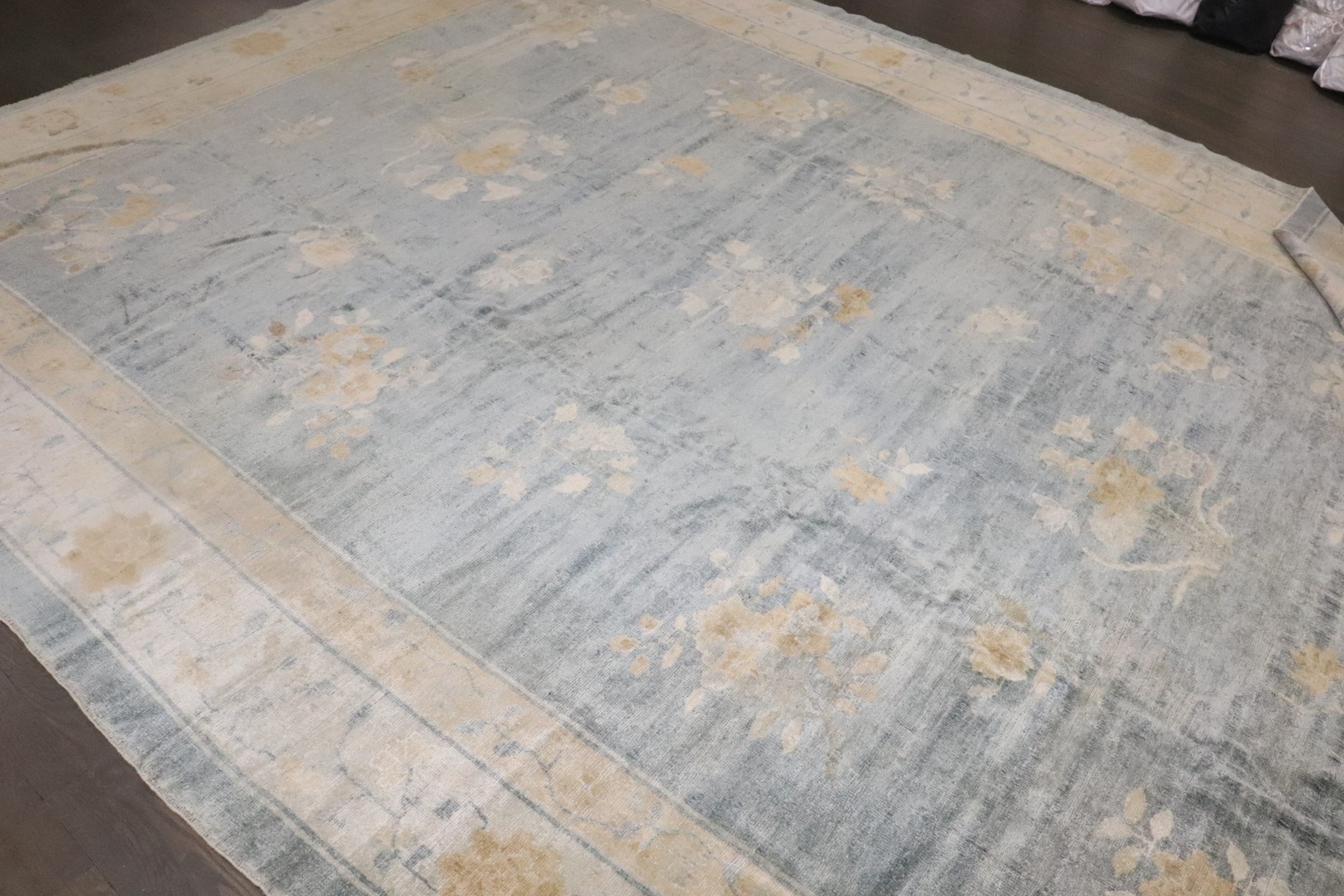 a 1920s Chinese Peking Floral rug in soft blues and cream
