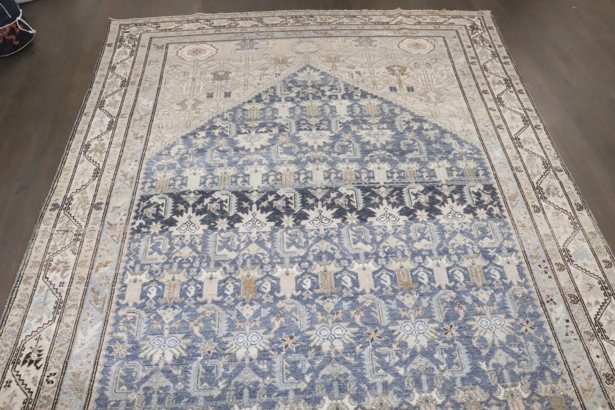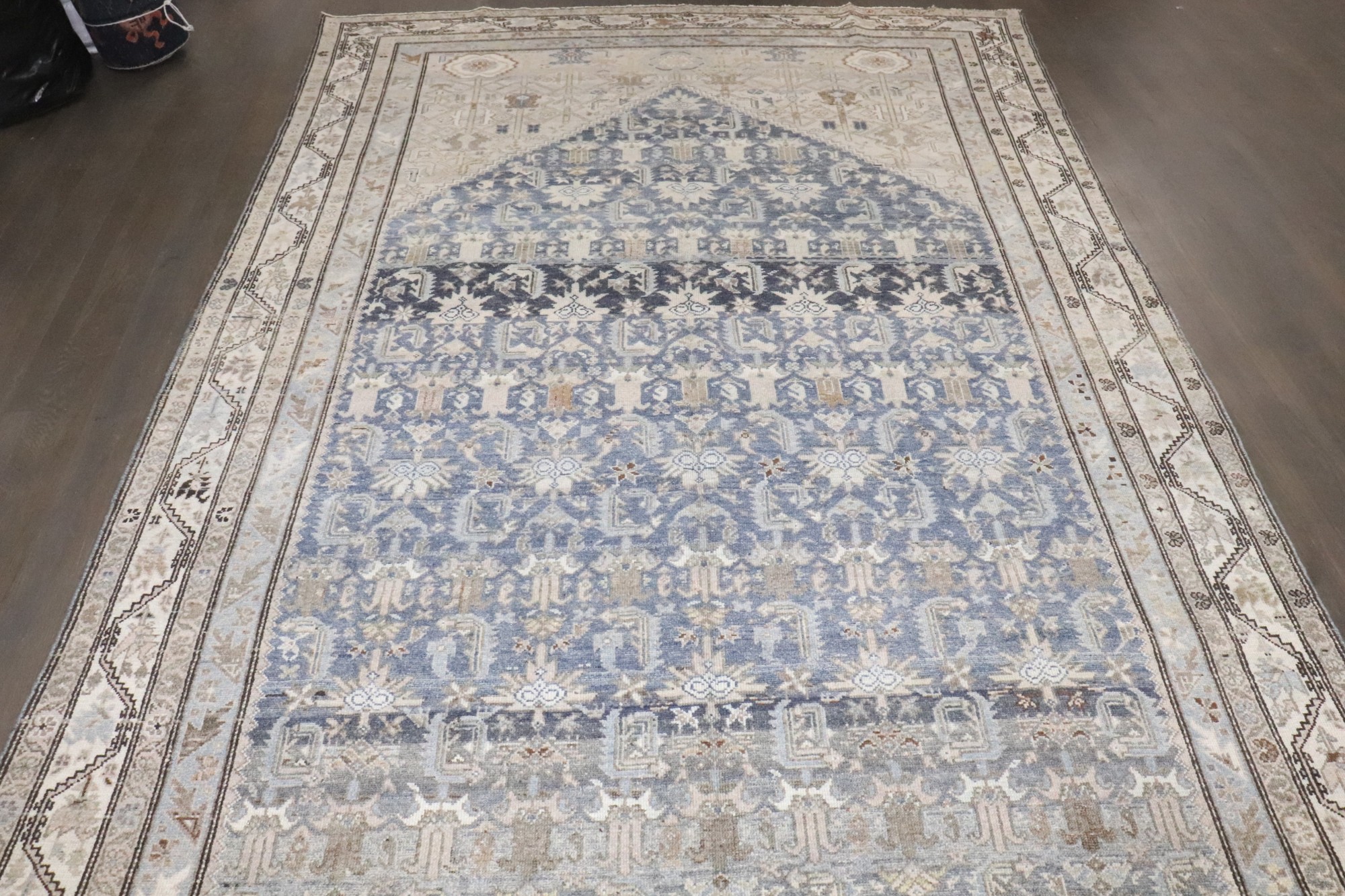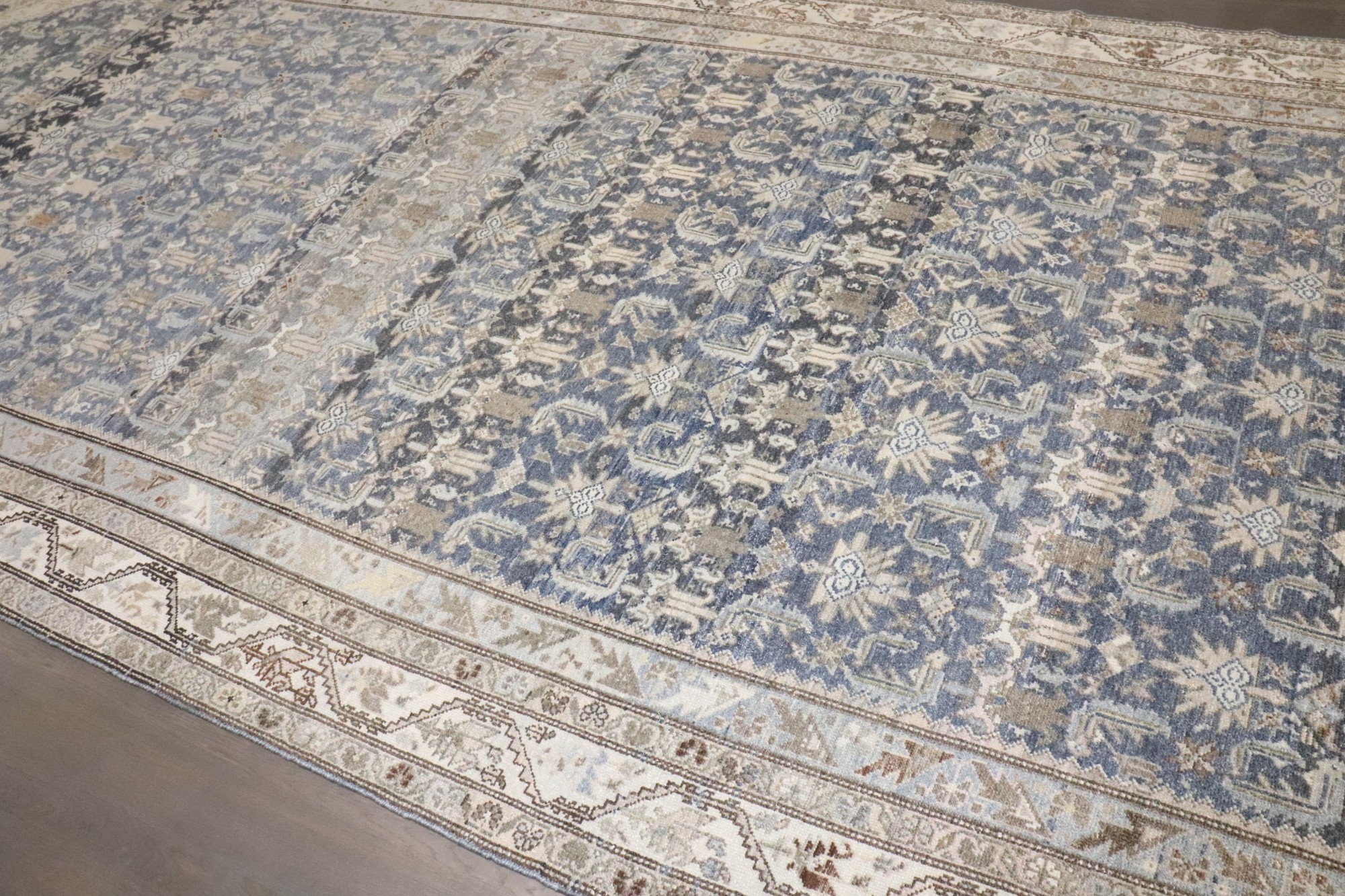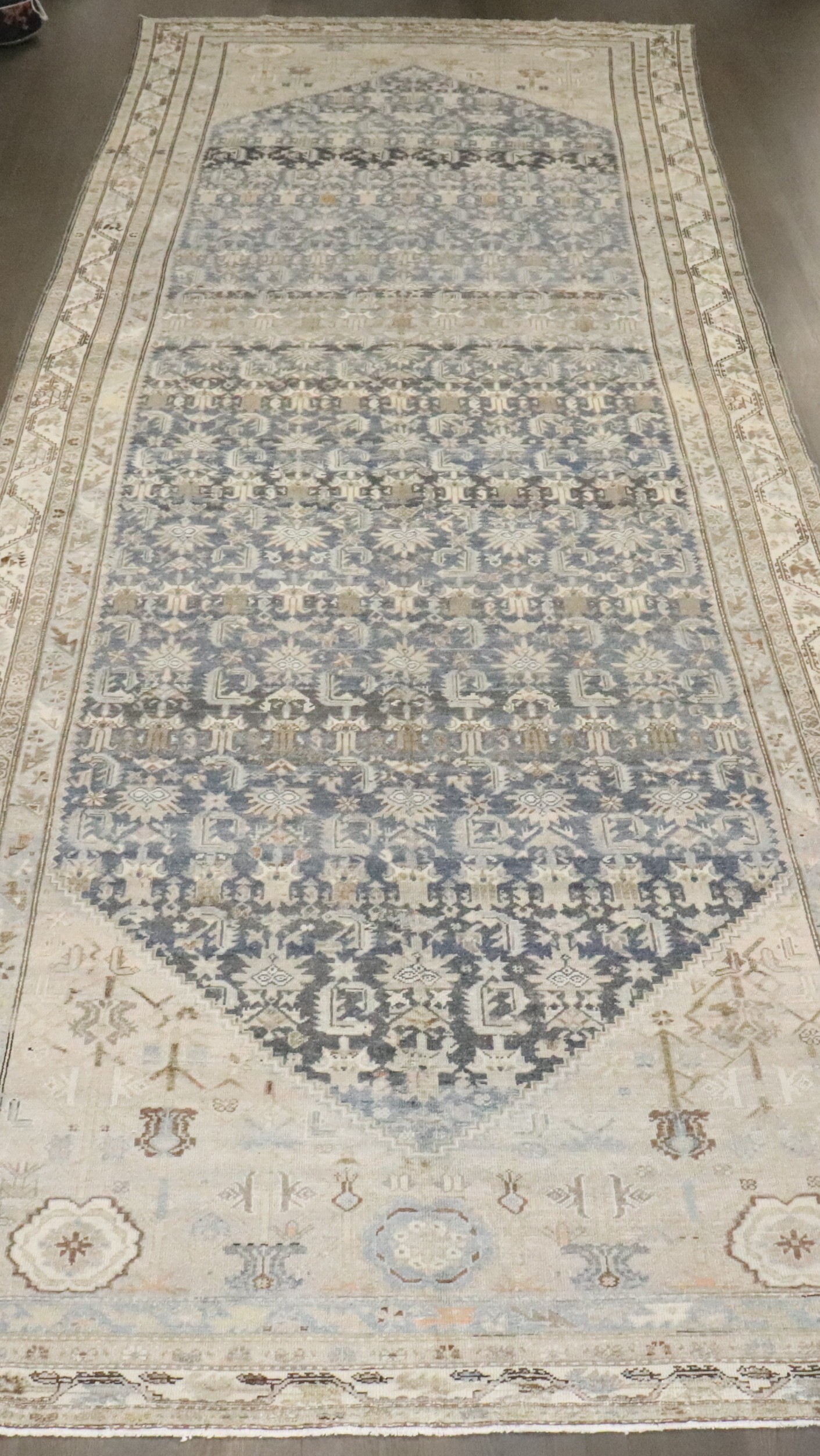 an early 20th Century Persian Malayer blue and cream corridor rug