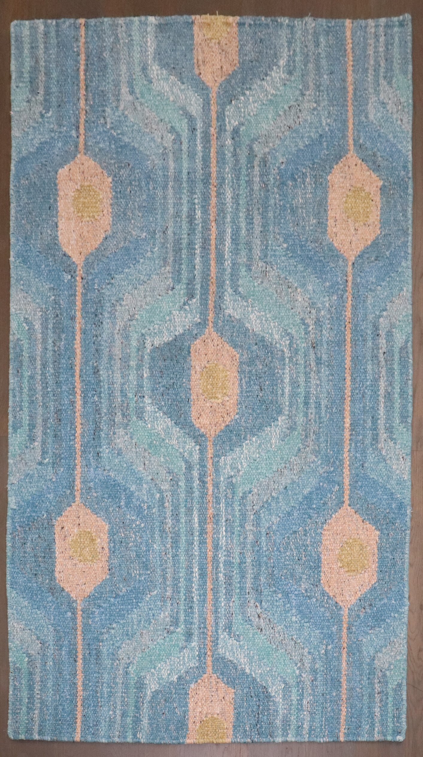 a one of a kind 21st Century Blue Scandinavian Kilim