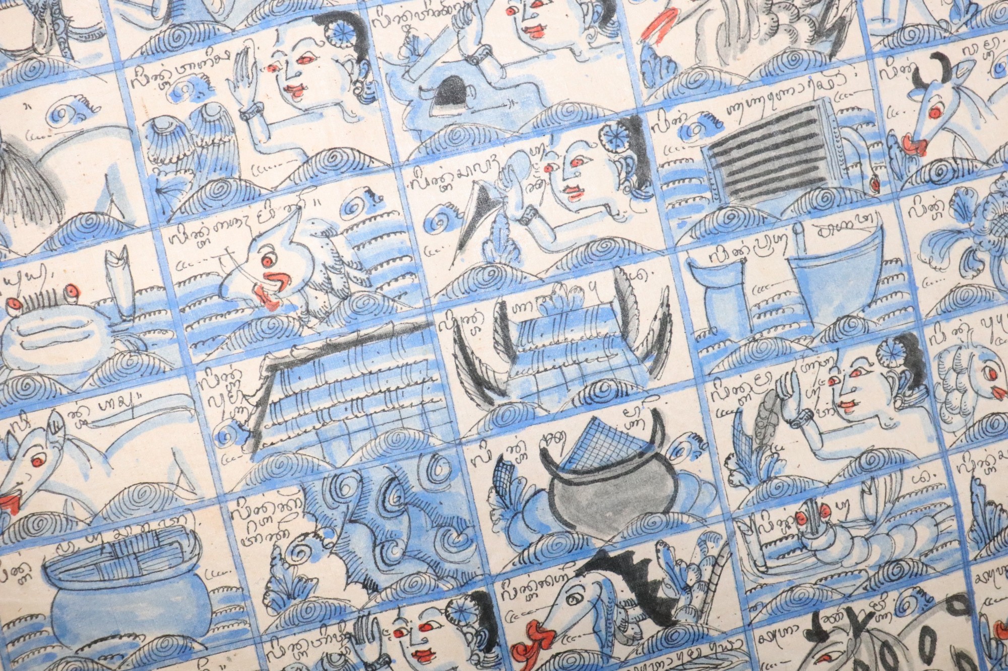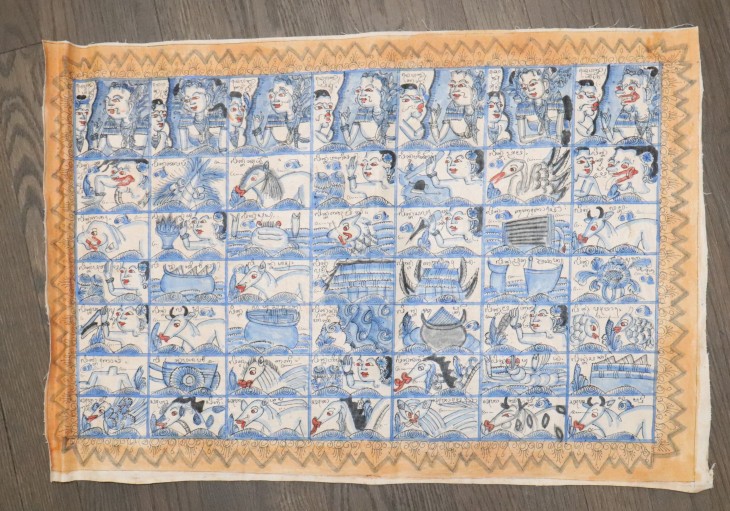 a burmese hand-painted early 20th-century Century Textile