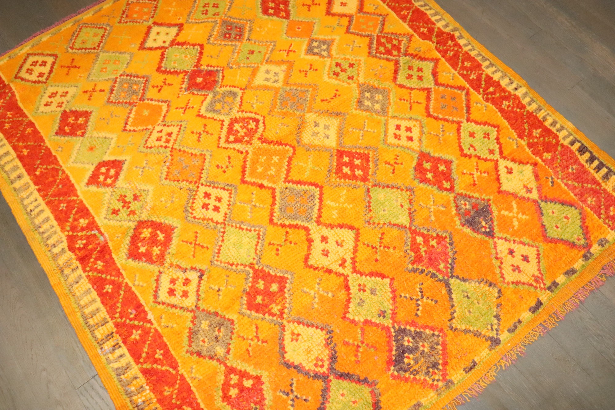 a mid 20th century Bright Color Geometric Moroccan Rug