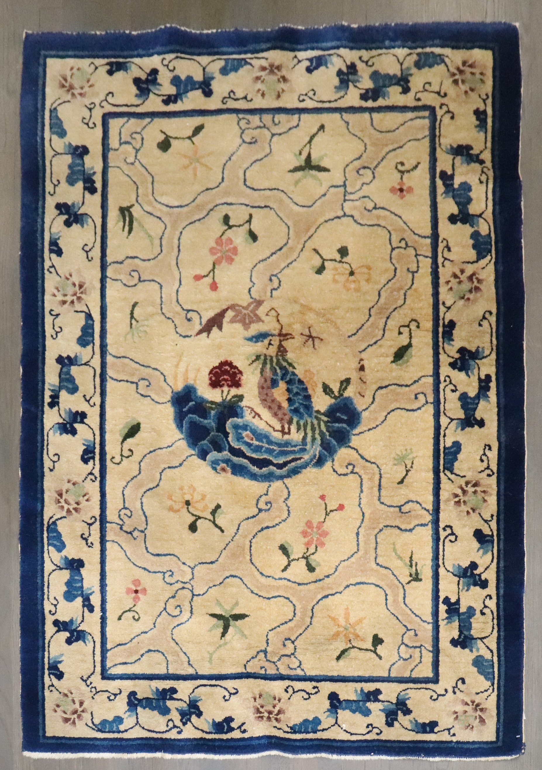 Cream and Blue Chinese Peking Rug rug no. j4857