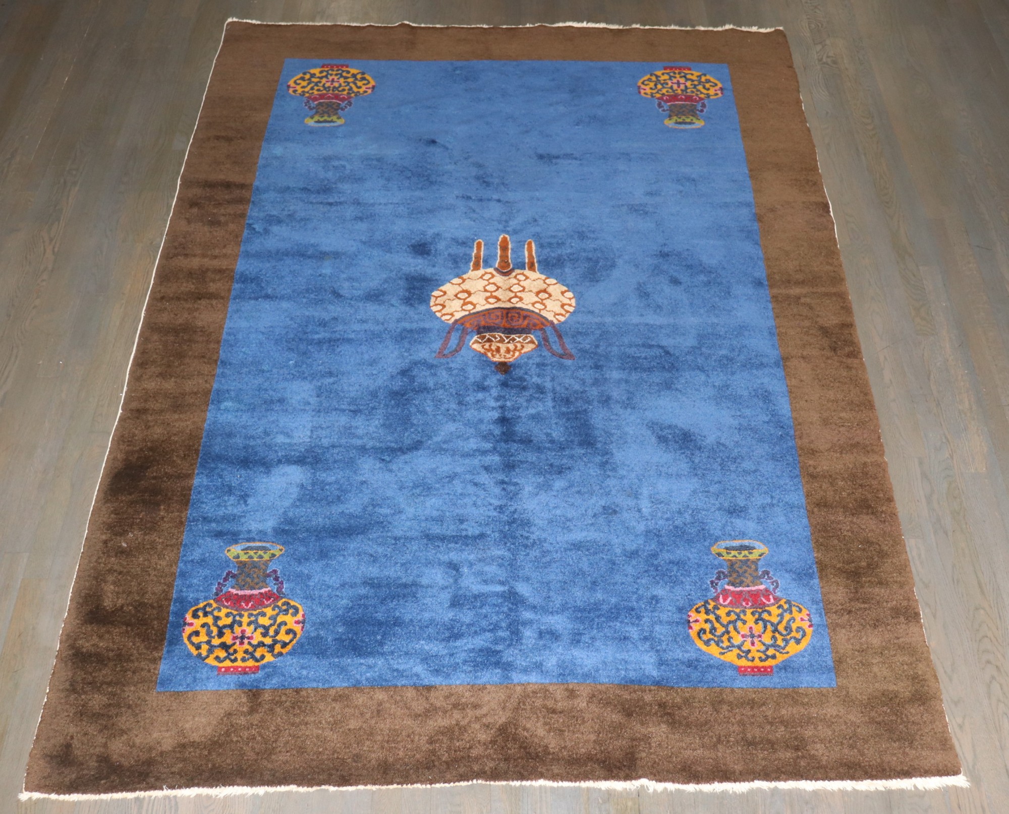 1930s Blue open Field Excellent Condition Chinese Art Deco Rug