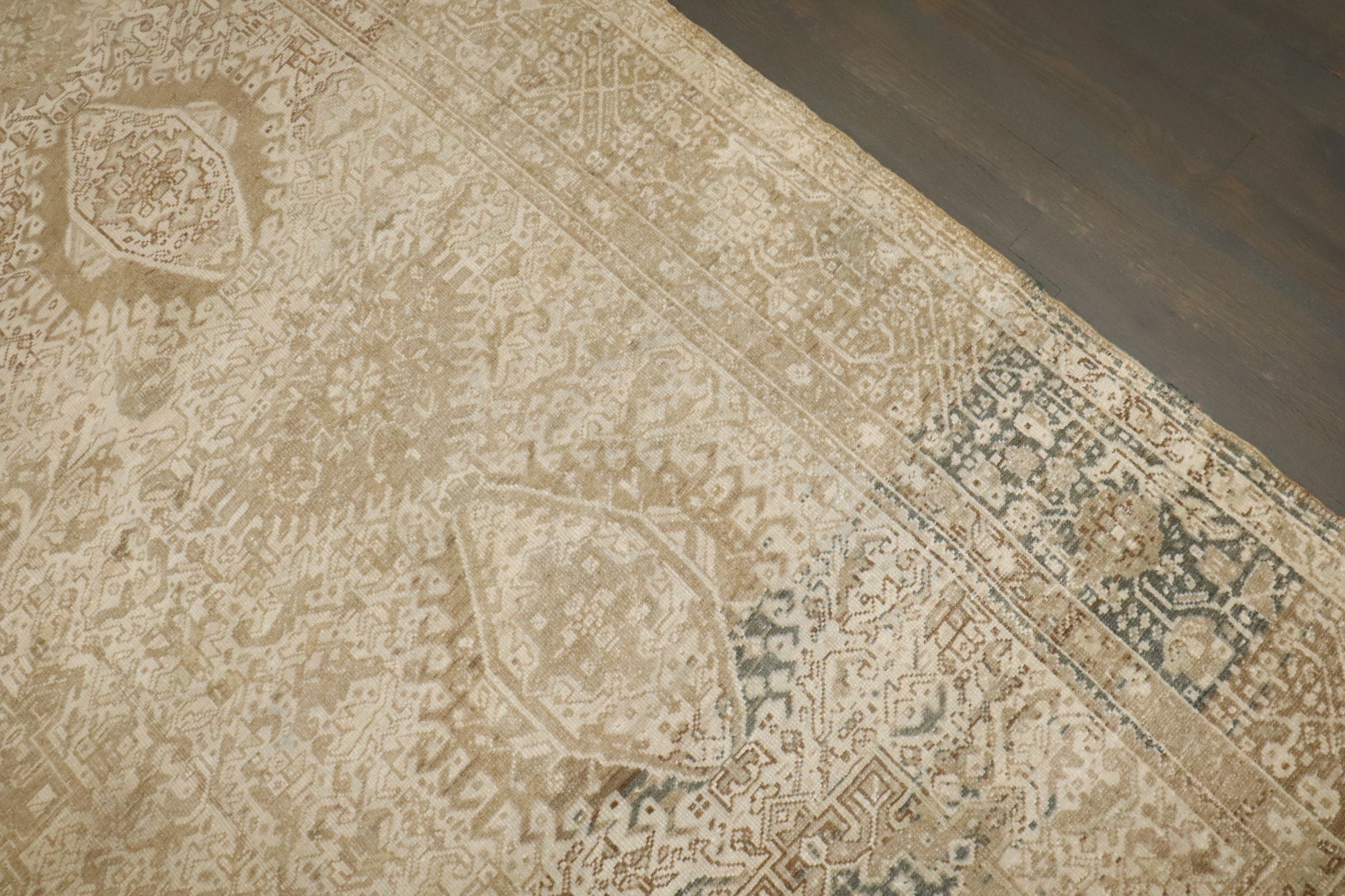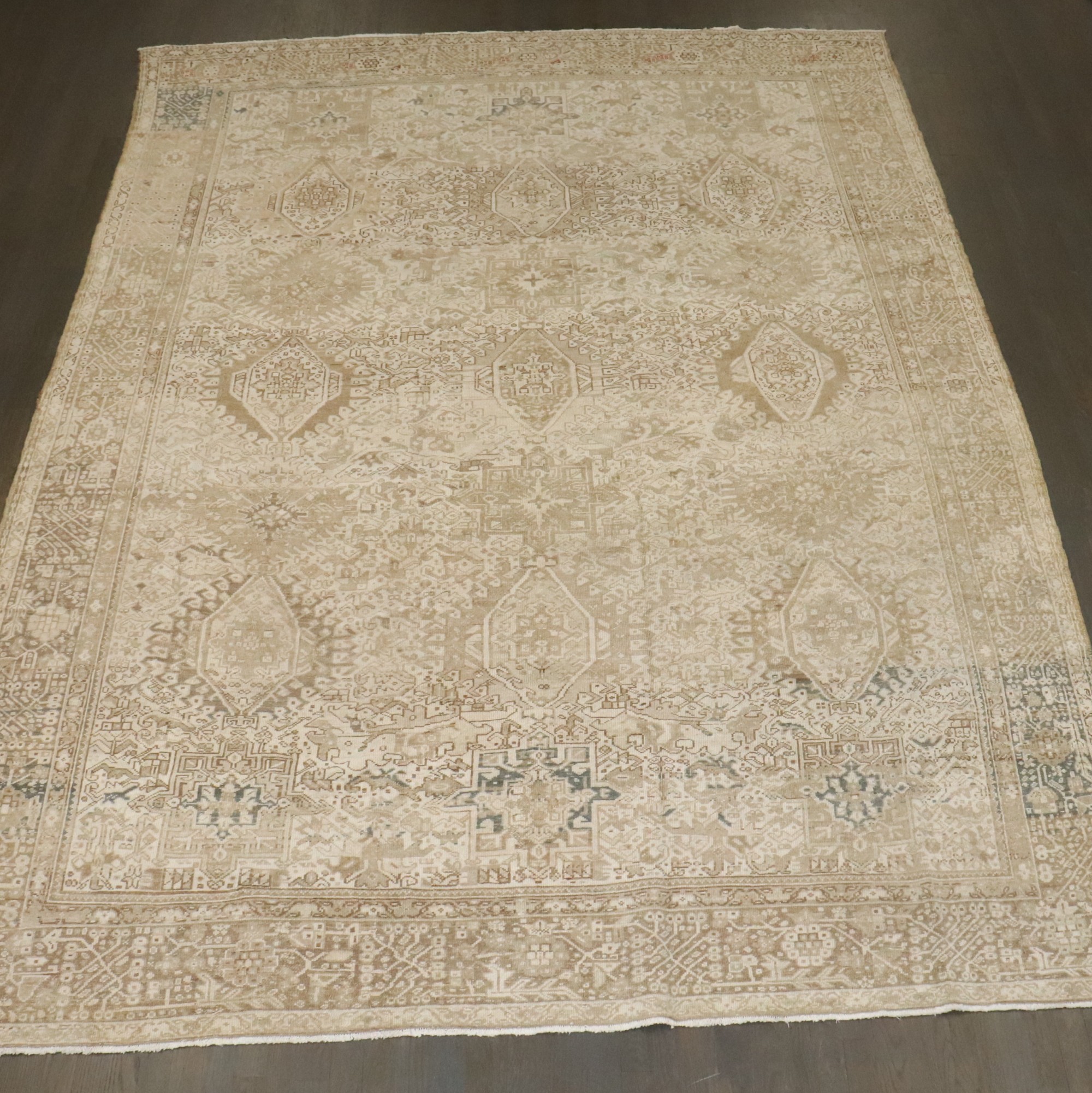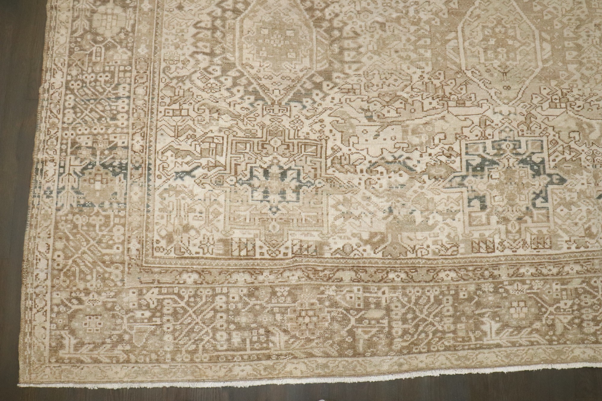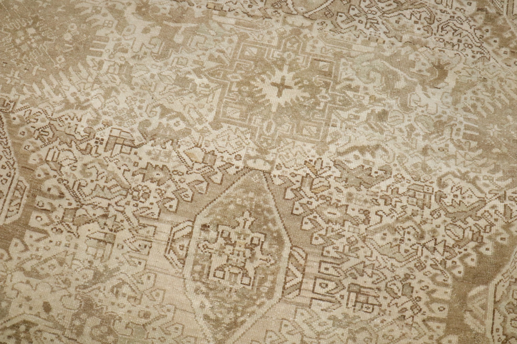 a room size geometric Persian Heriz Rug in neutral colors