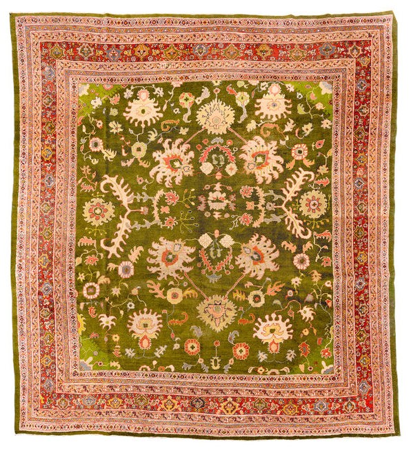 a late 19th-century Green Persian Sultanabad Mahal Rug