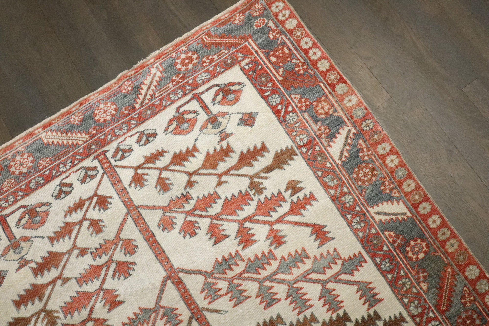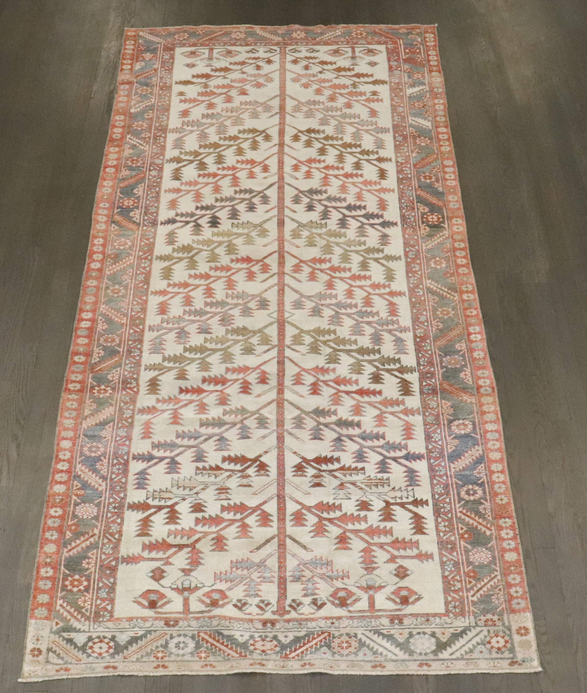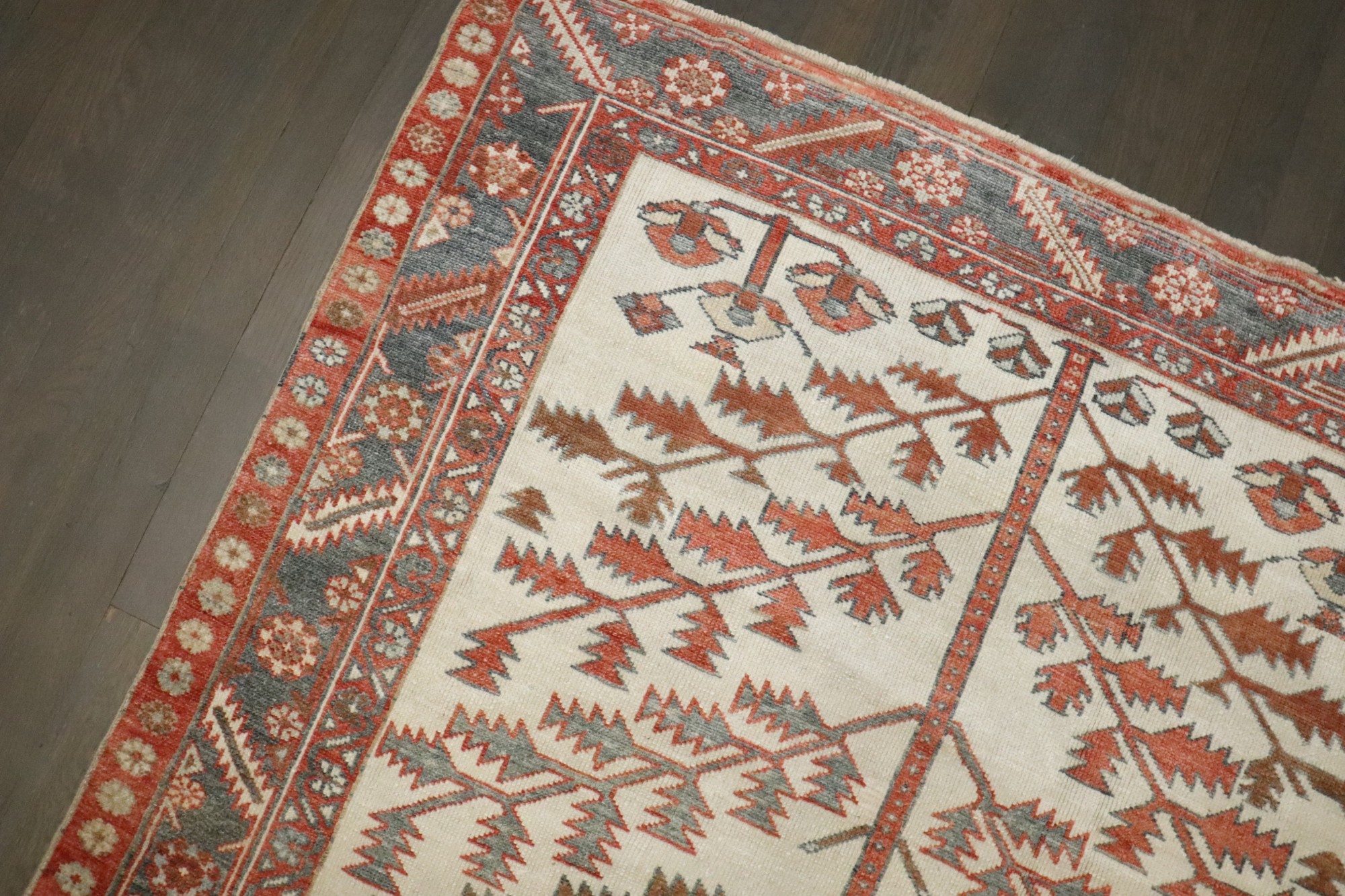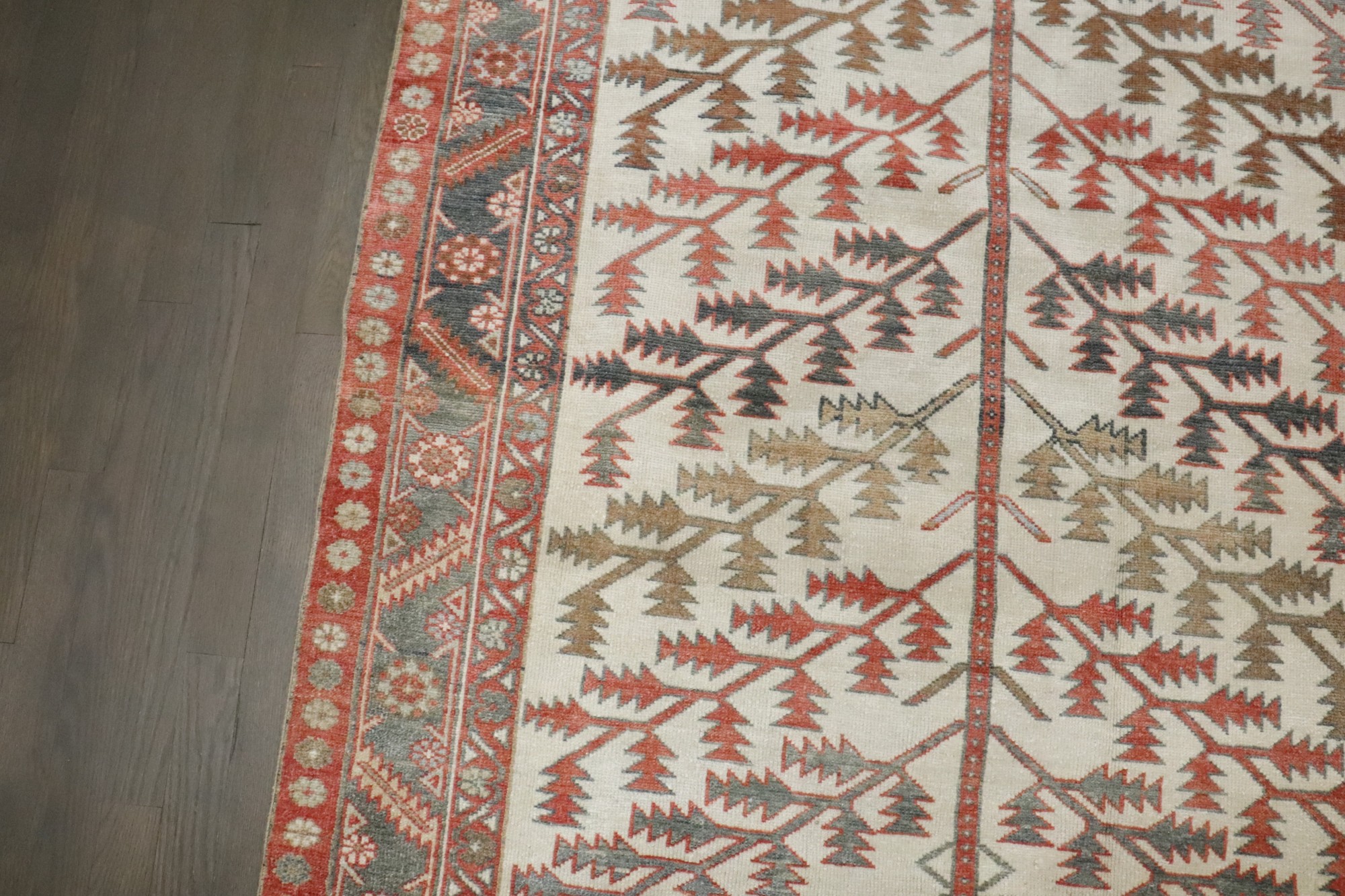 an early 20th century Bakhtiari Rug sporting a tree branch pattern on an ivory field