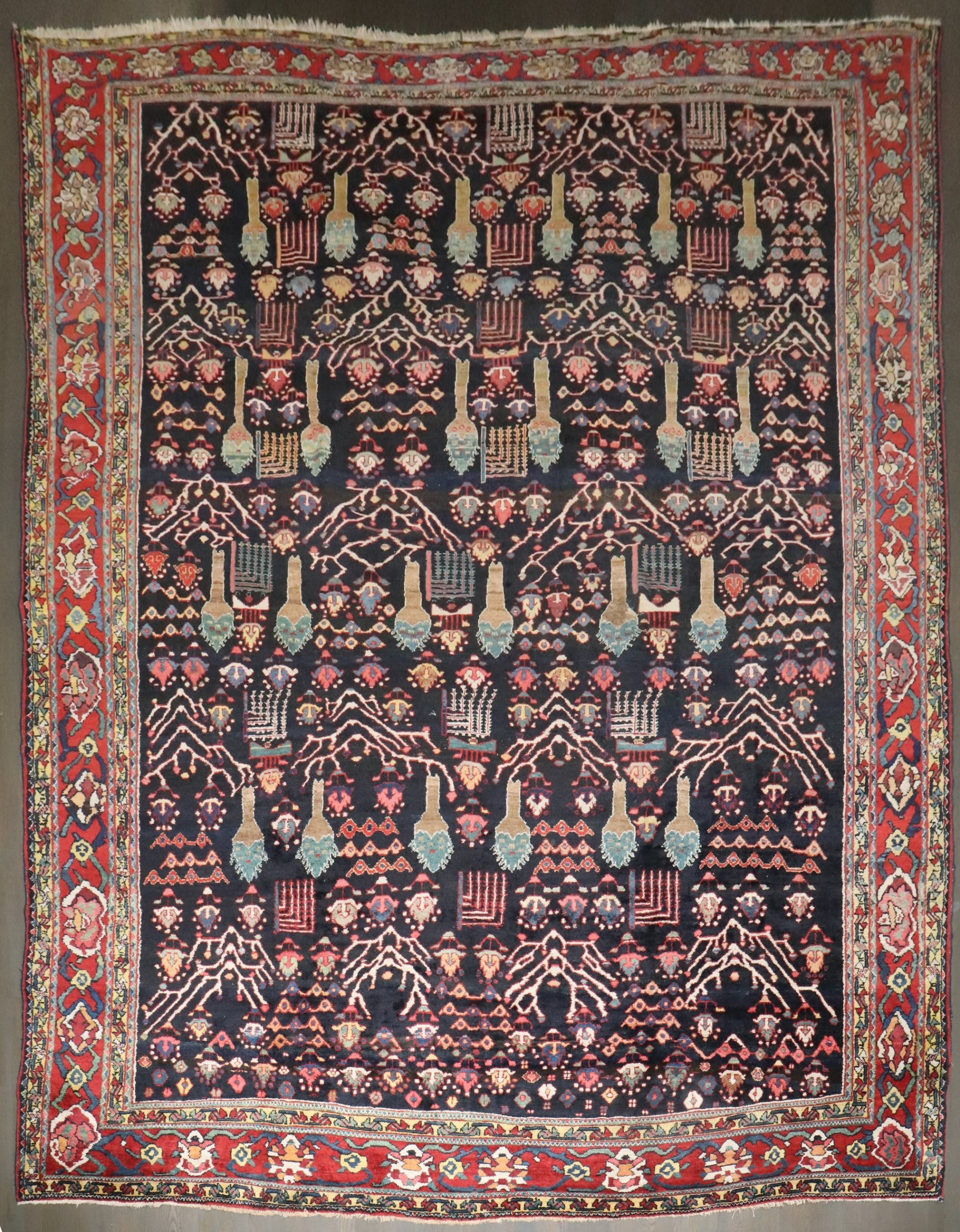 Jewel Toned Persian Willow Tree Antique Bakhtiari Rug rug no. j4539
