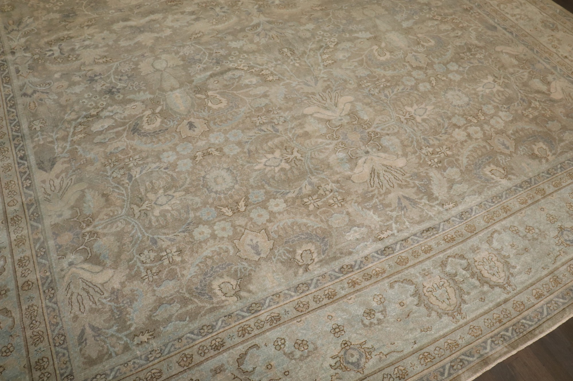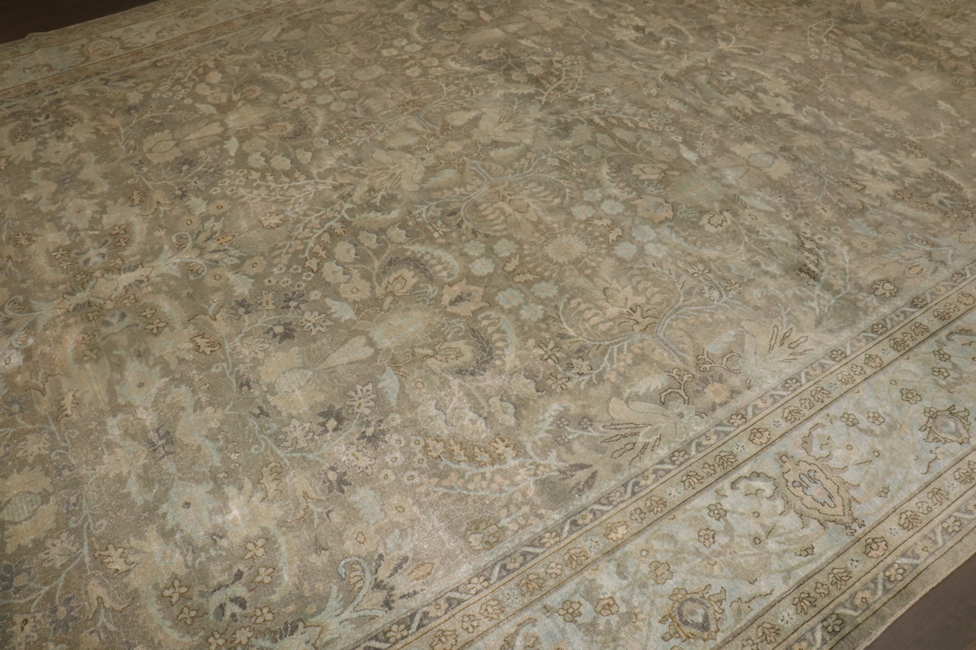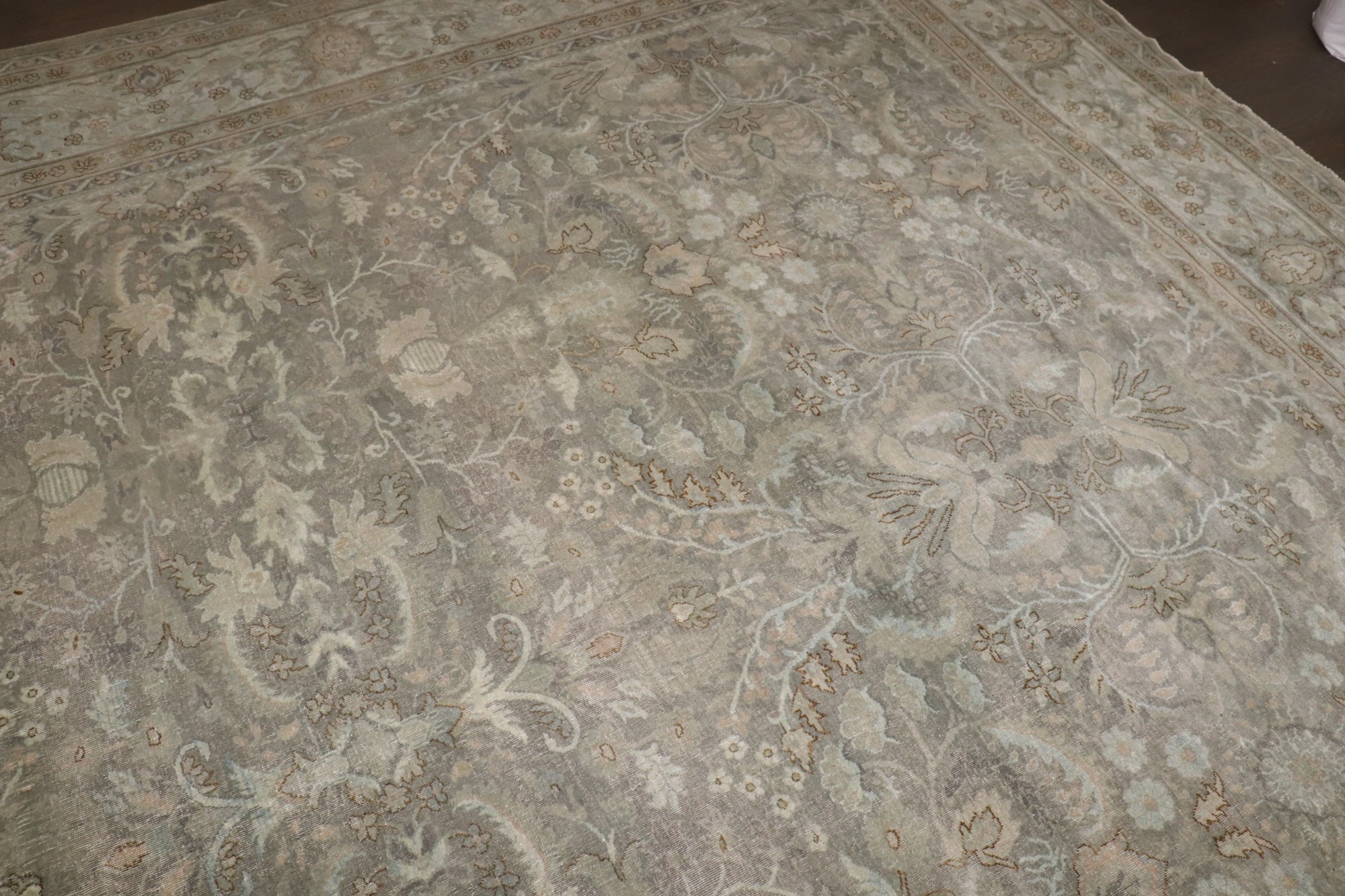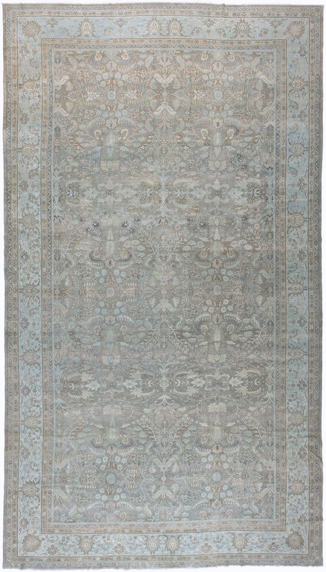 an early 20th century North Indian Larestan rug with an all-over design in grays and greens