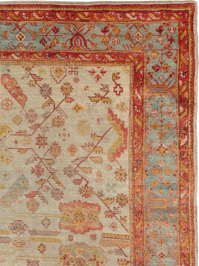 a late 19th century ivory ground antique Turkish Oushak rug