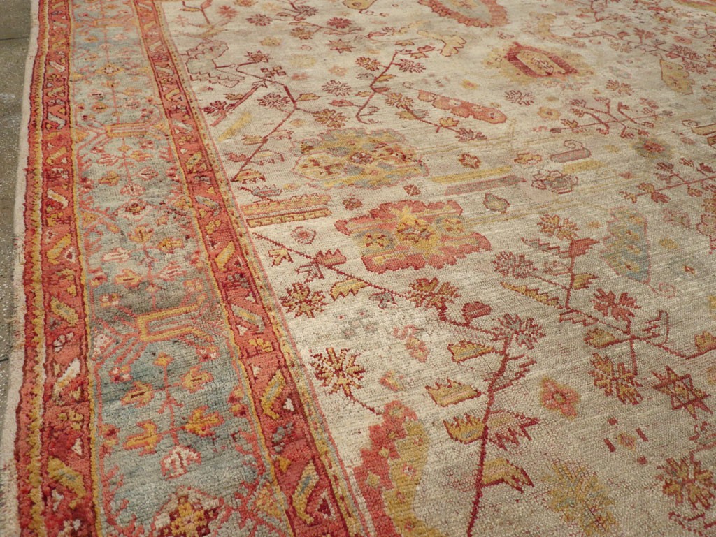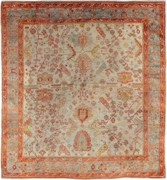 Large Square Ivory Antique Oushak Rug rug no. 10865