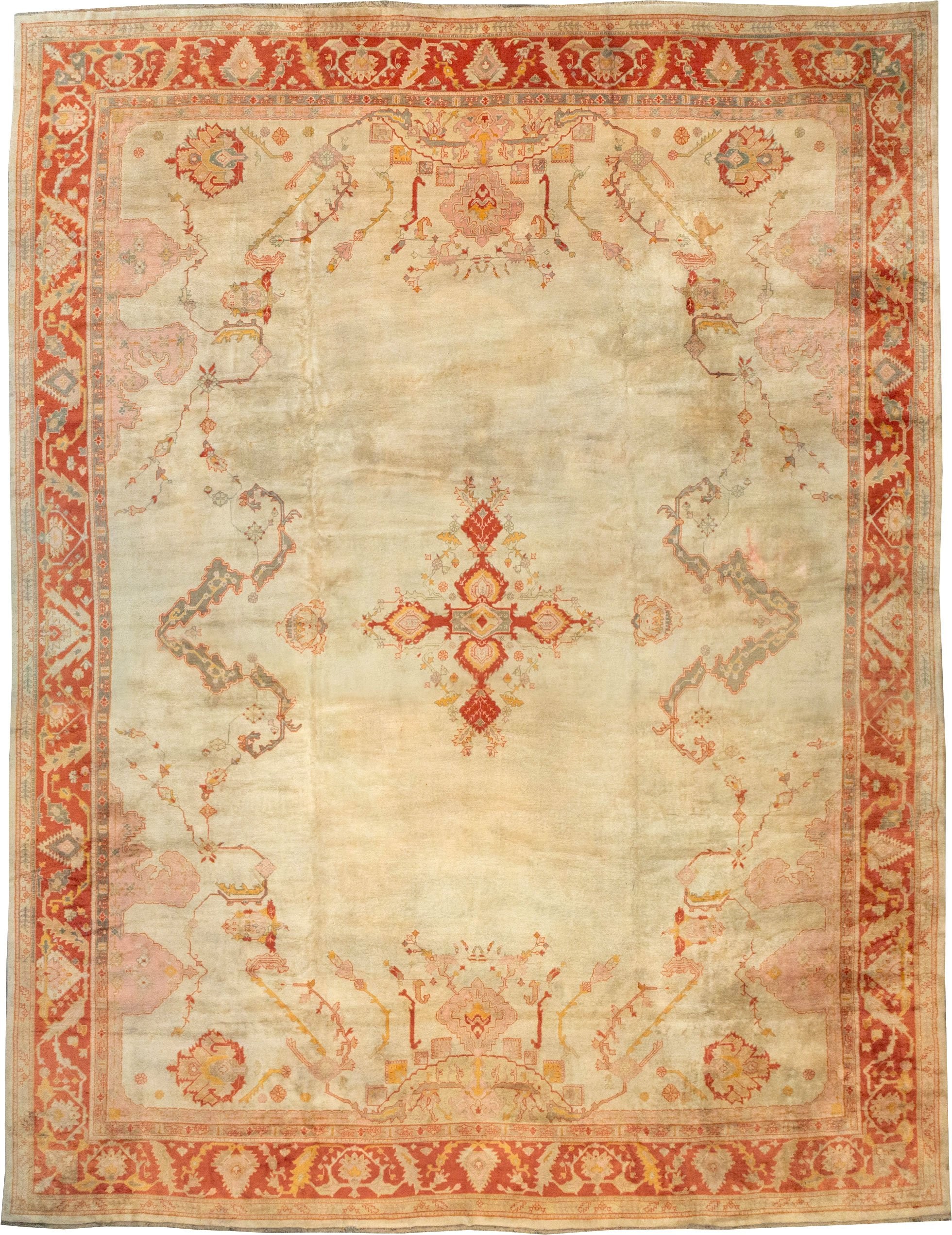 an early 20th century Ivory Field Mansion Size Antique Oushak Carpet