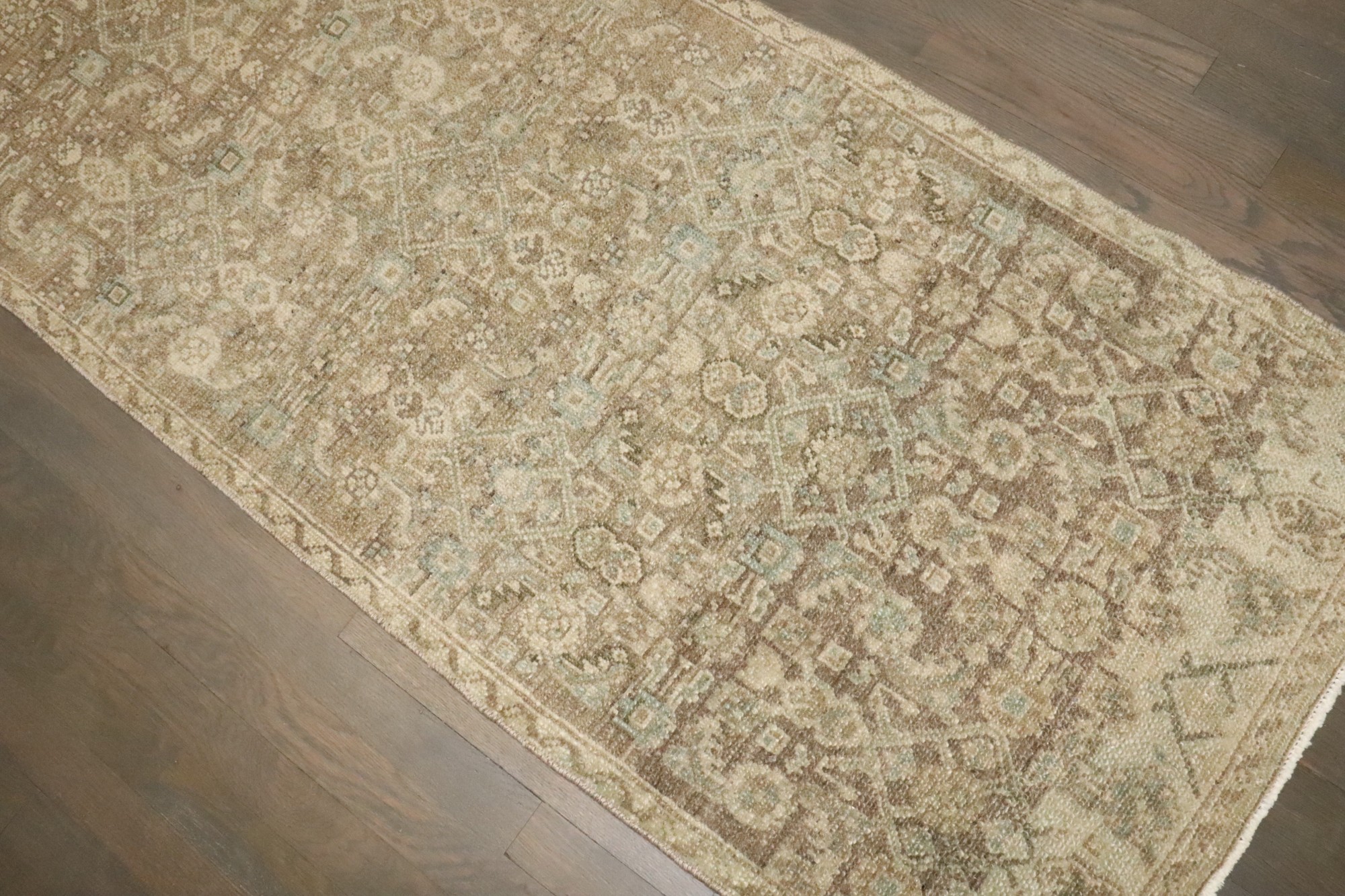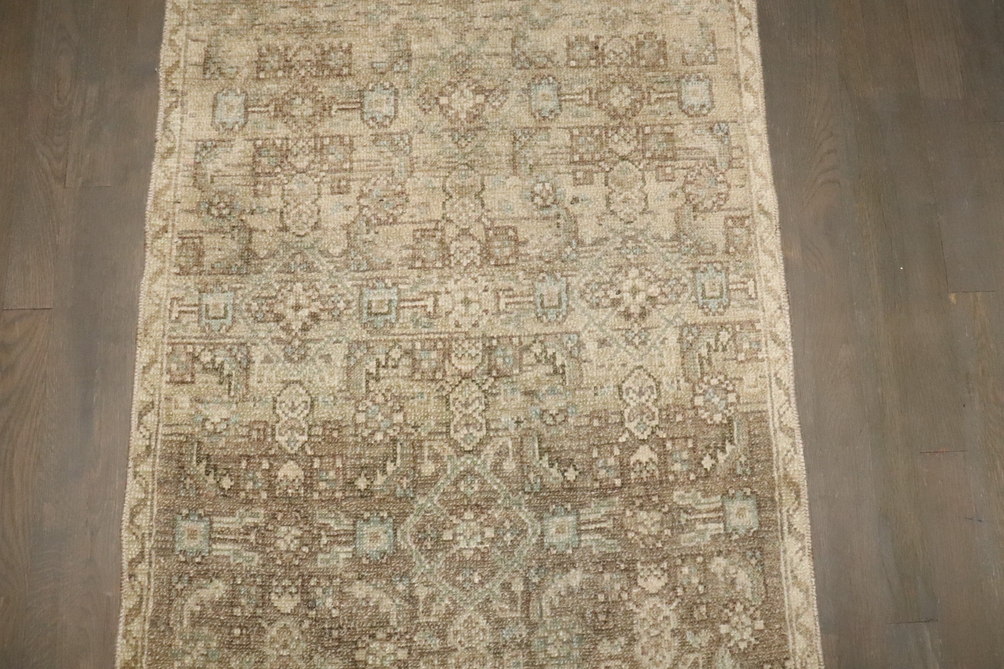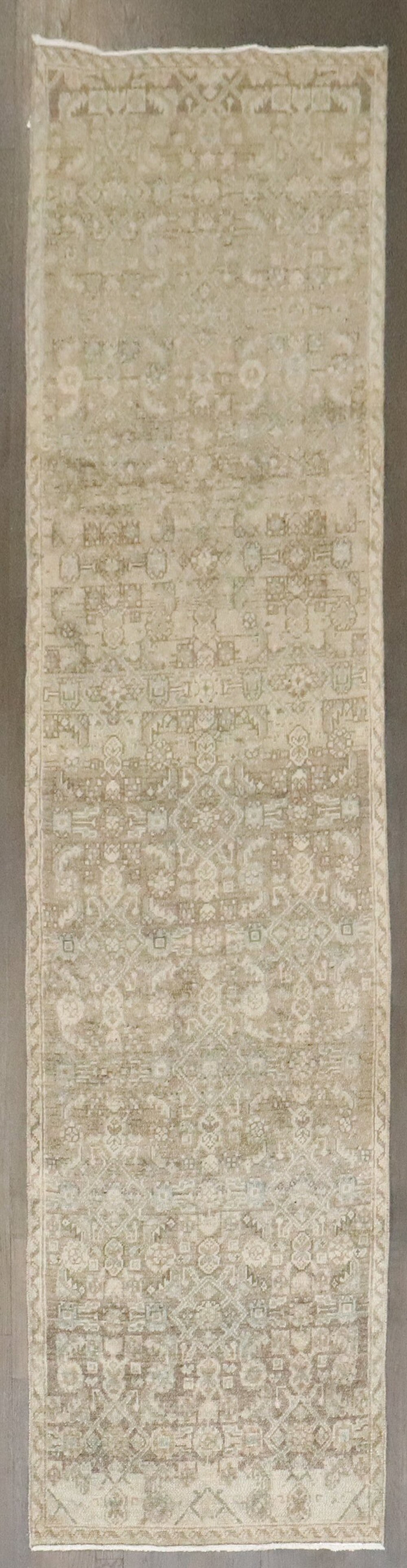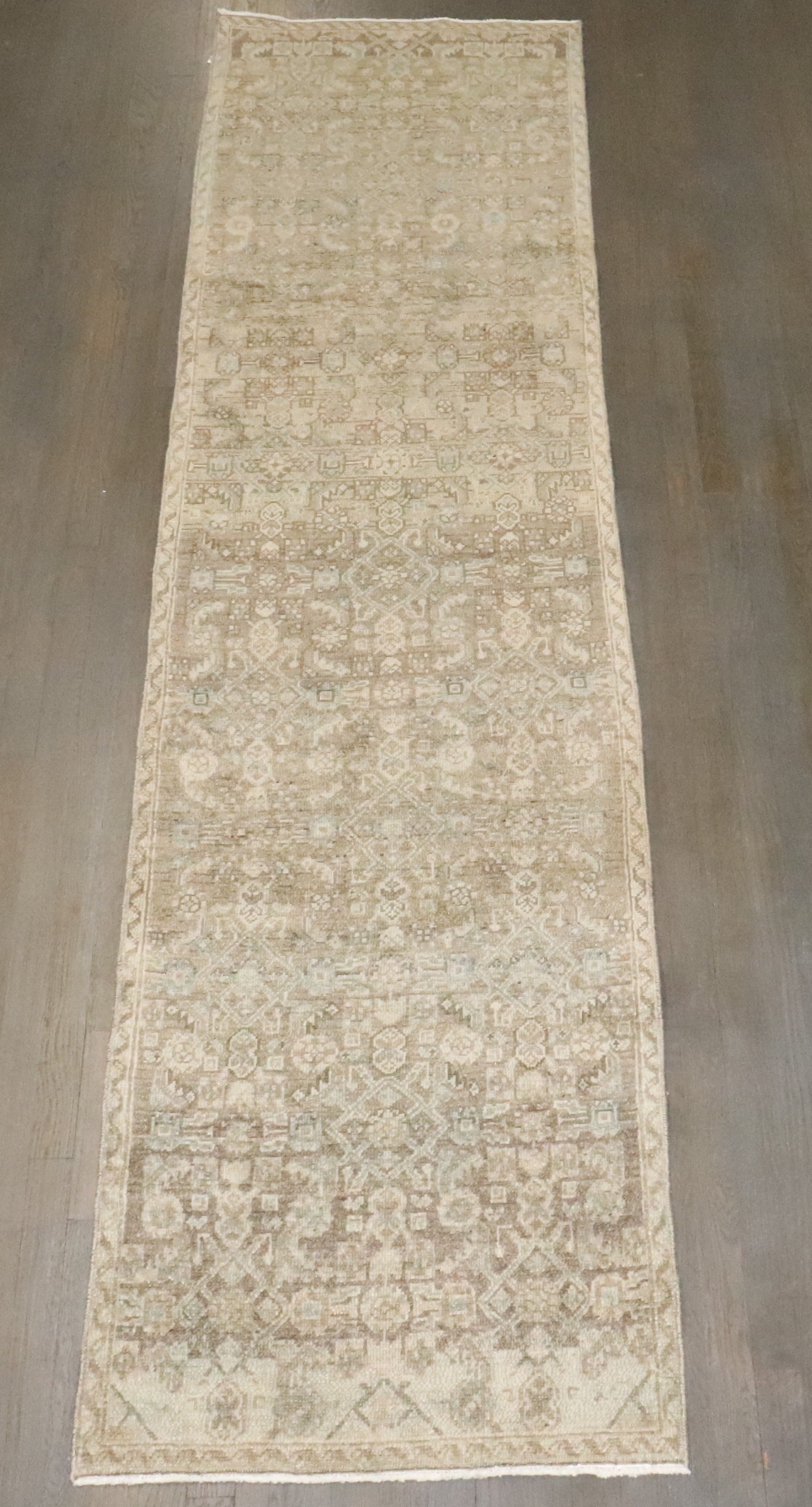 a neutral colored narrow persian malayer runner from the 2nd quarter of the 20th century