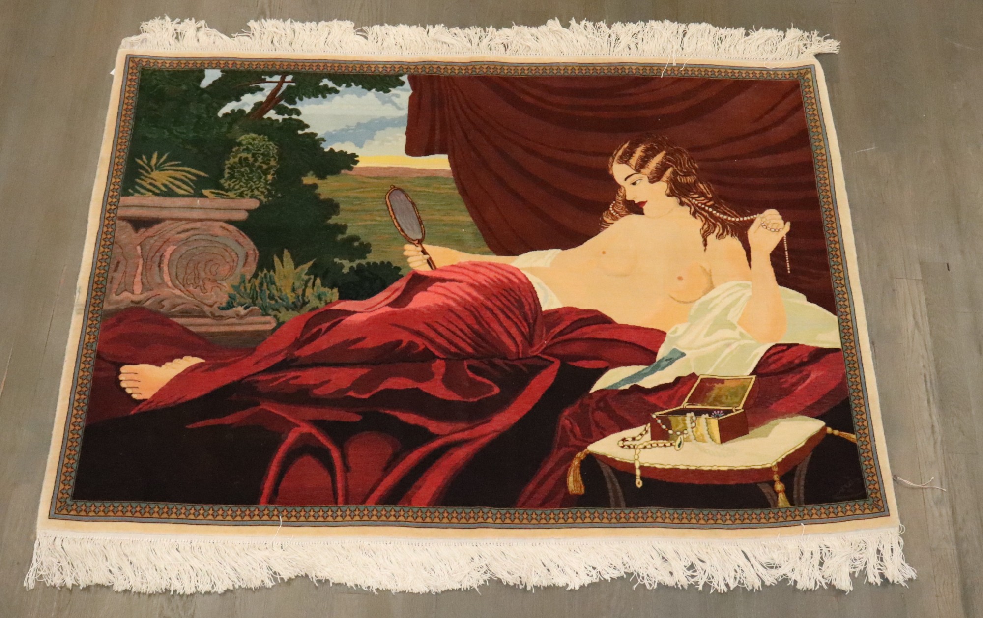a mid 20th century very finely woven Persian Kashan Depicting a nude woman