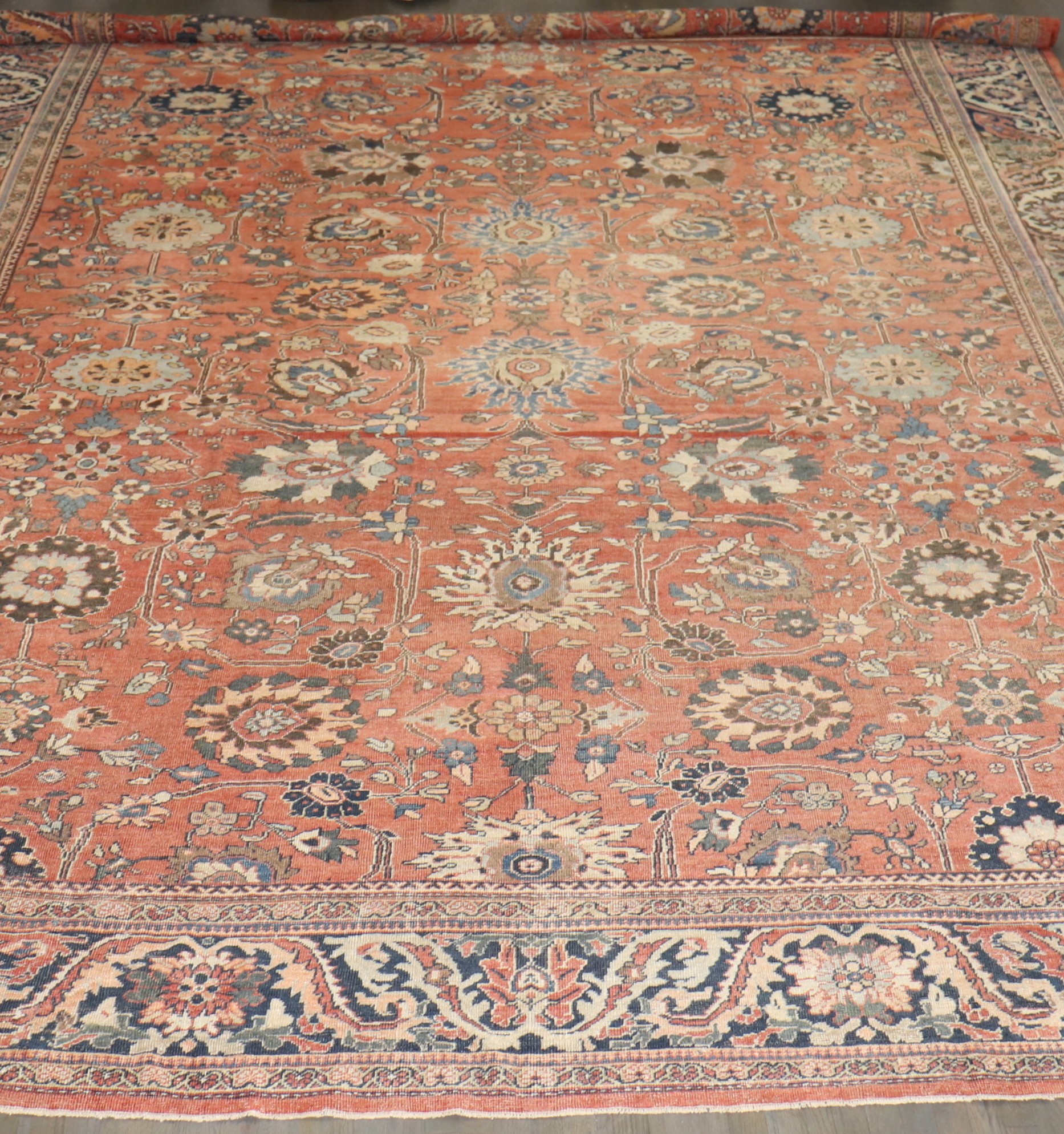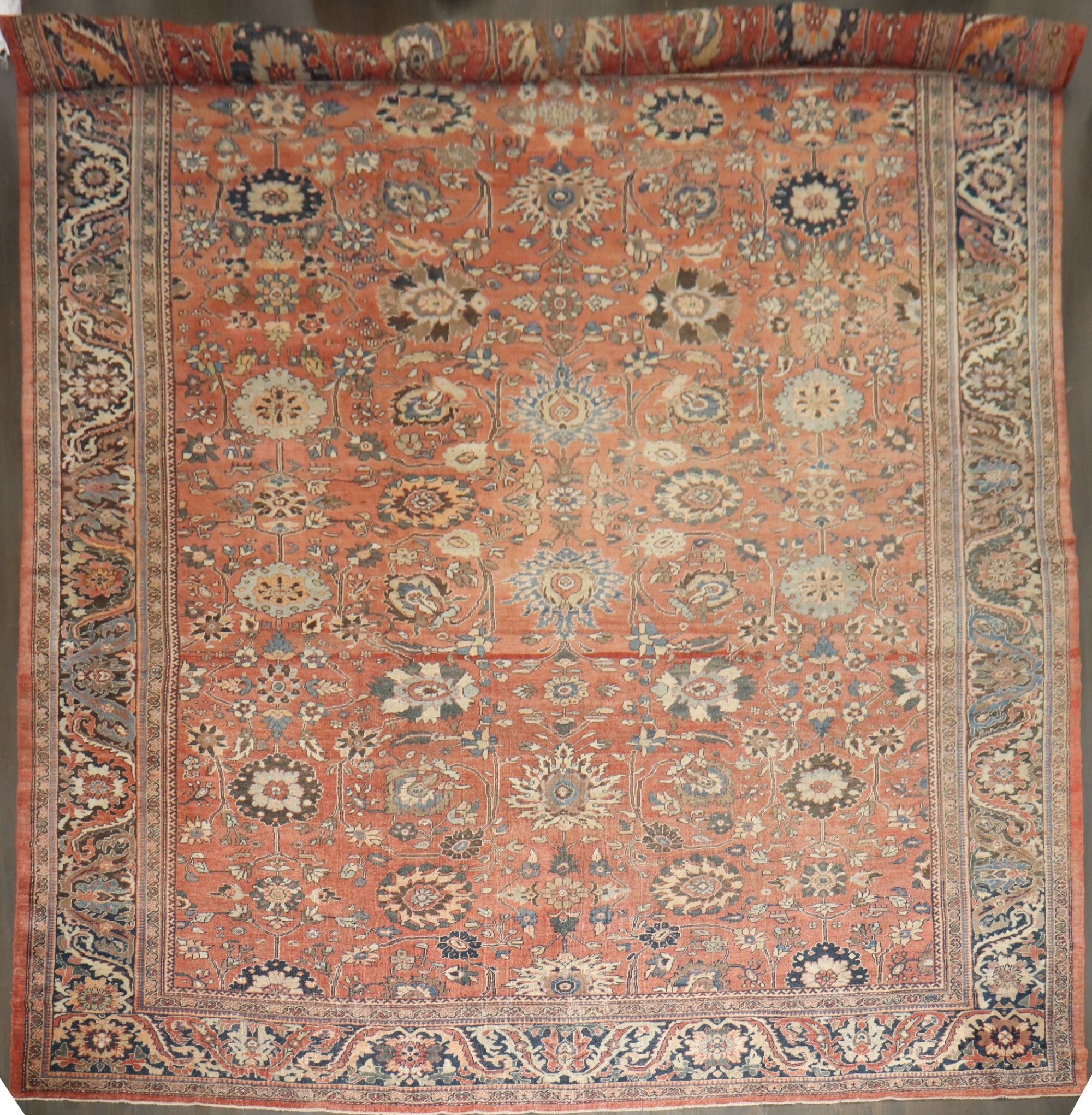 a 1900s Oversized Persian Mahal Rug with a large-scale overall pattern on a rust field