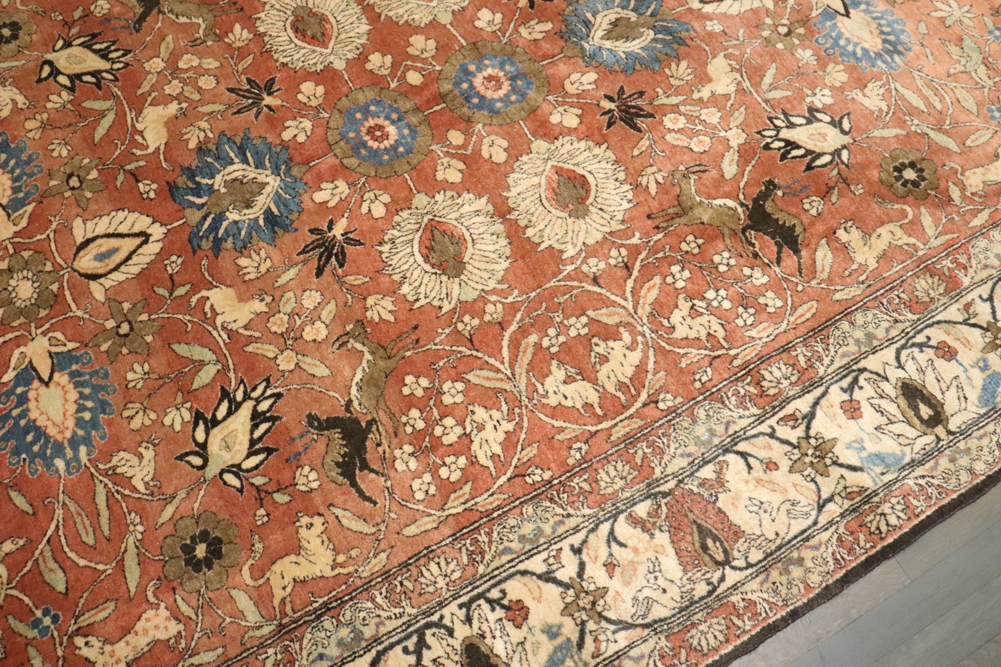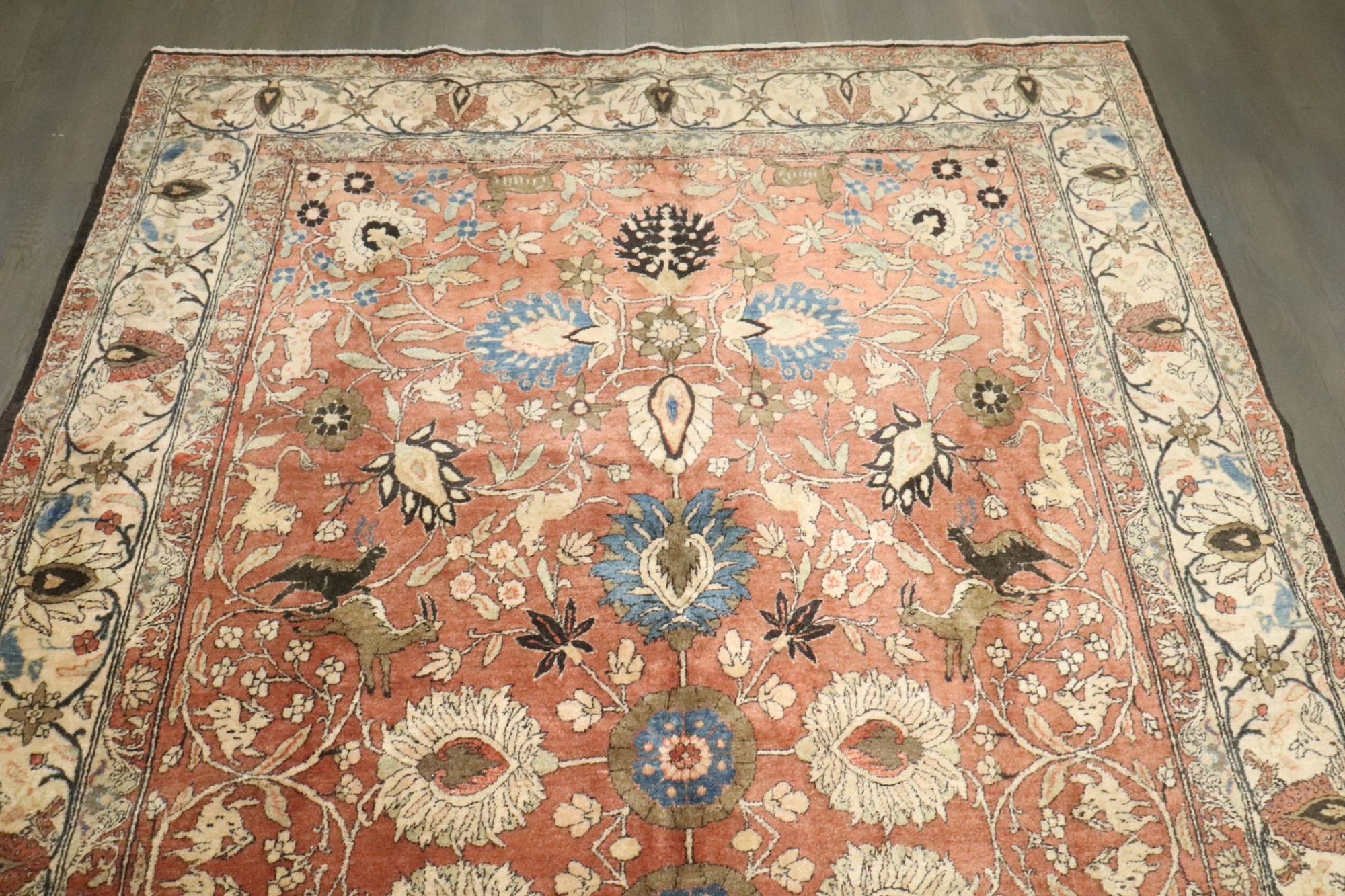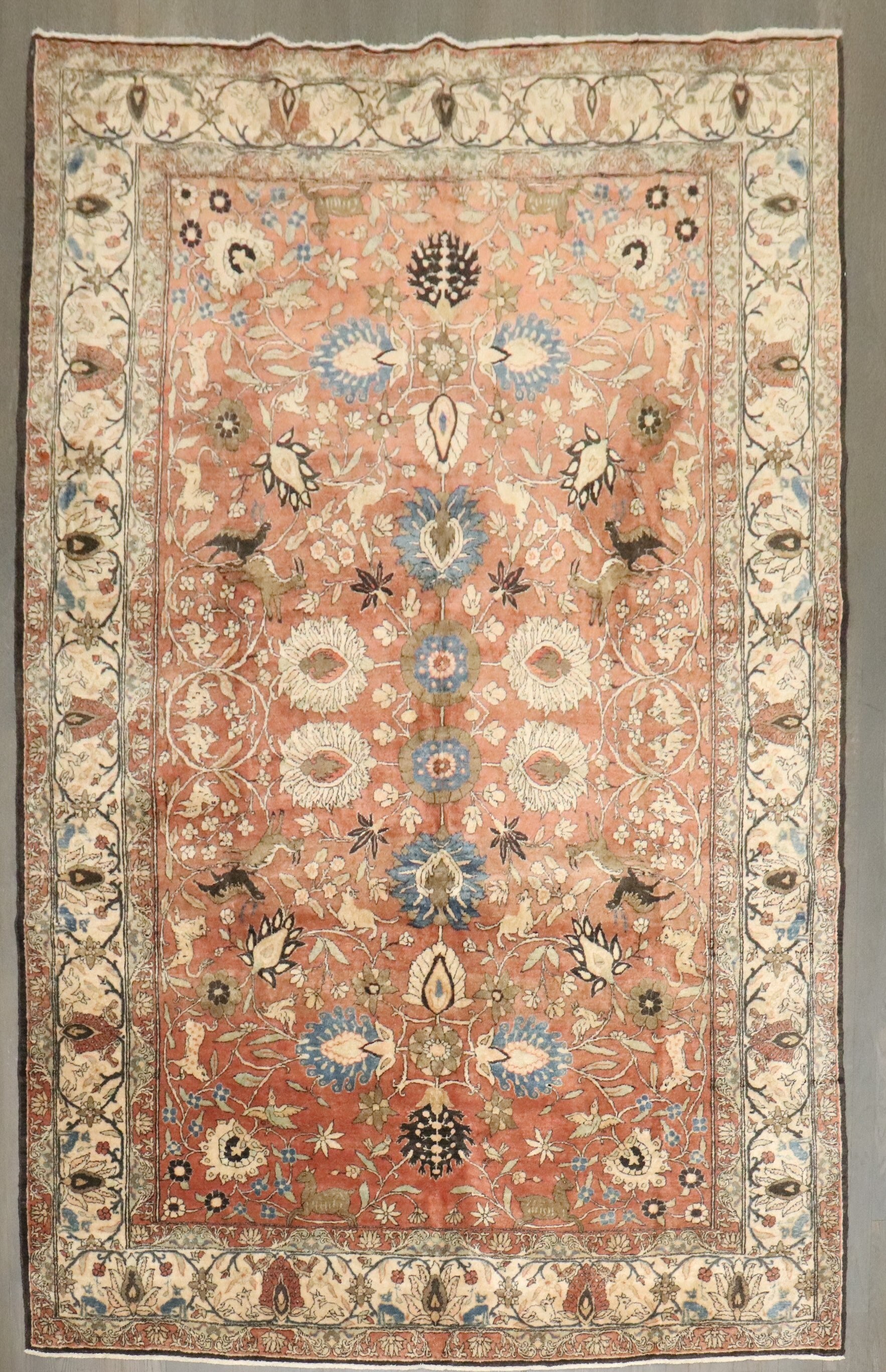 an early 20th Century Persian Teheran Hunting Animal scene rug in predominantly brown
