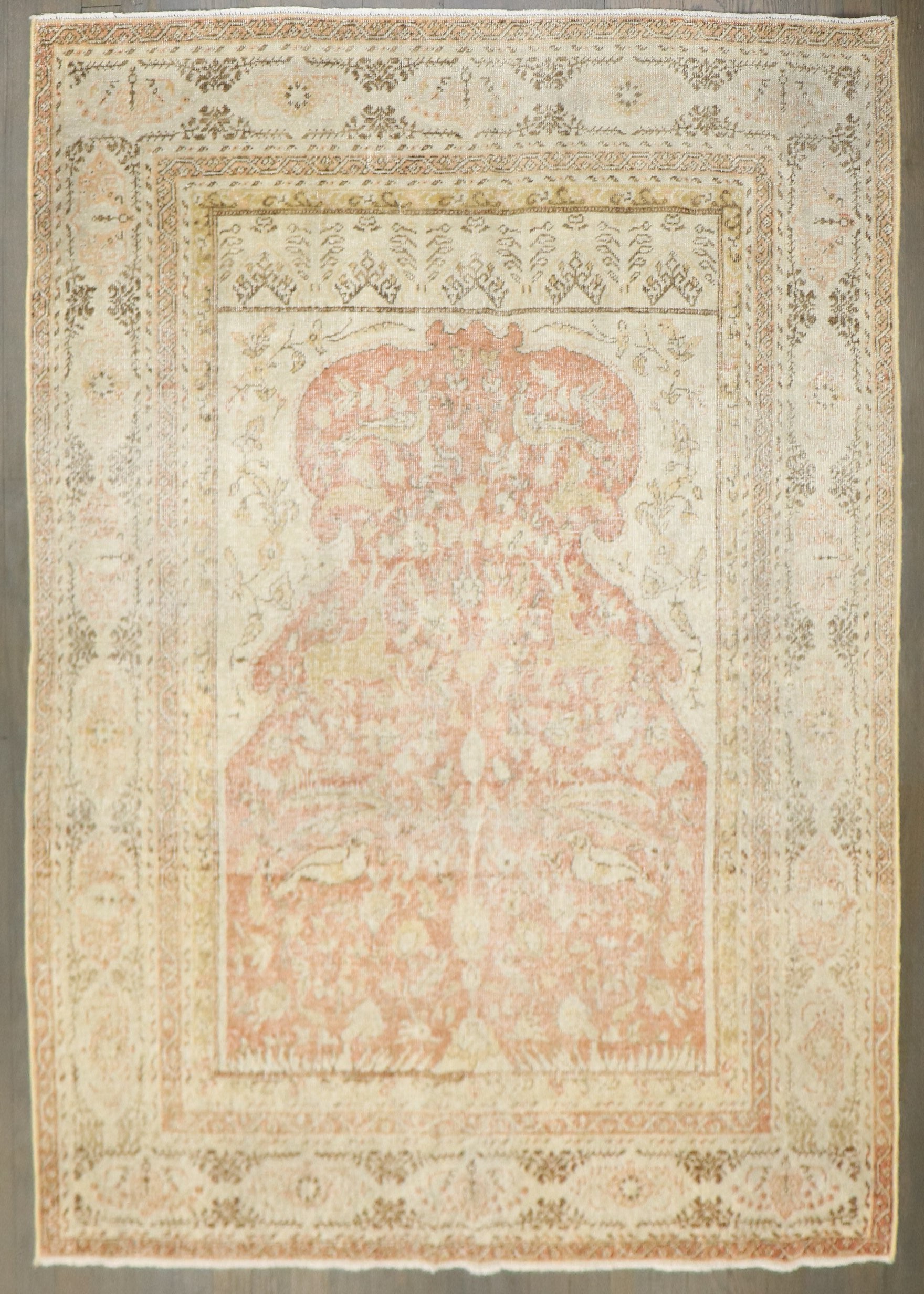a late 19th century worn Turkish Sivas Prayer Niche Animal Motif Rug
