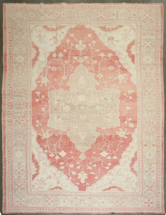 Red Ivory Medallion Oversize Antique Turkish Oushak Carpet rug no. j4565