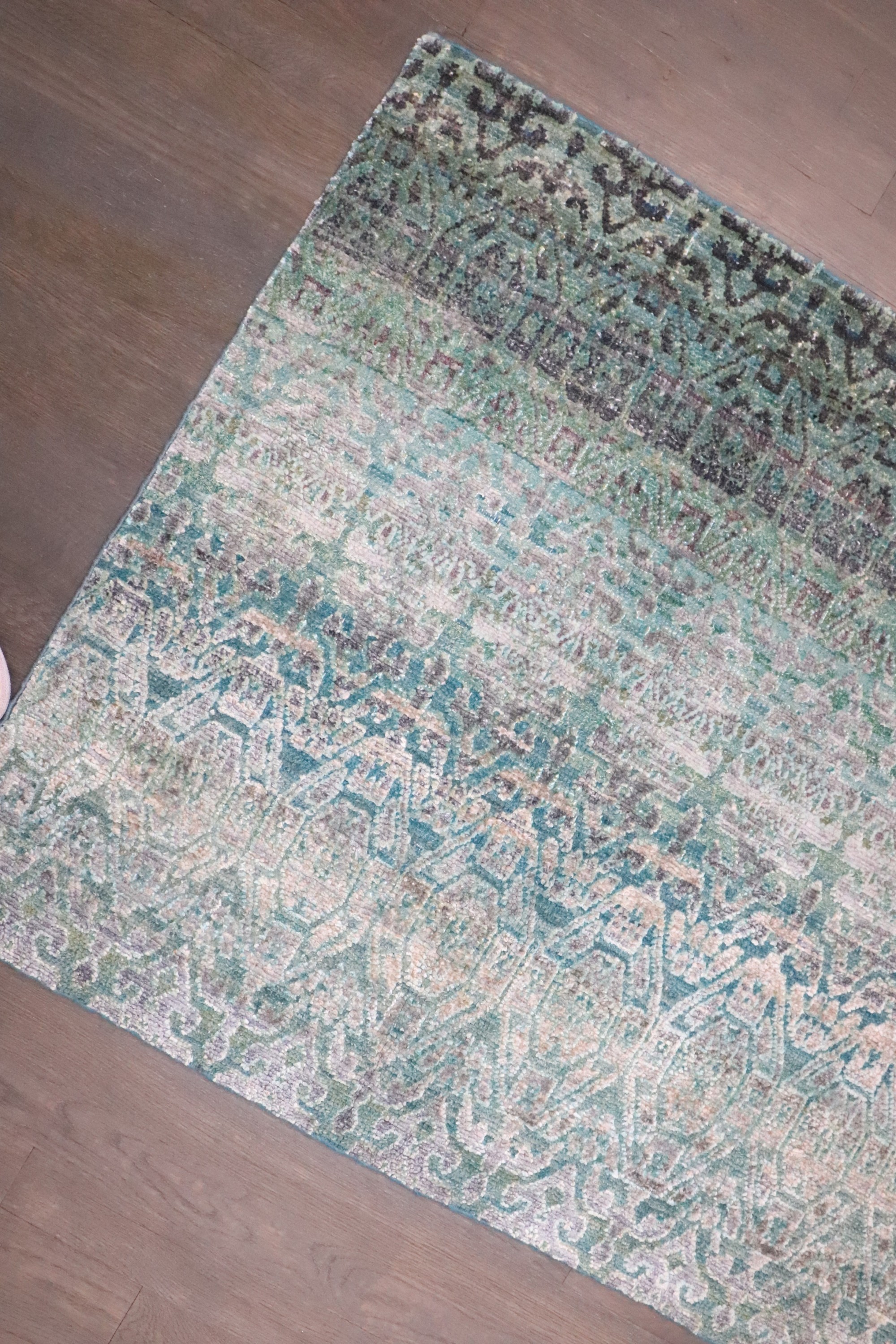 Silk Wool Sari Turquoise Fragment Rug rug no. j4511
