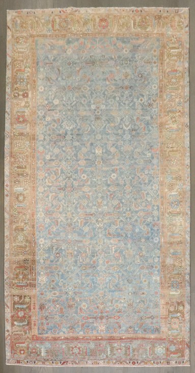 an early 20th century gallery size Persian Malayer carpet feauting a sky blue field