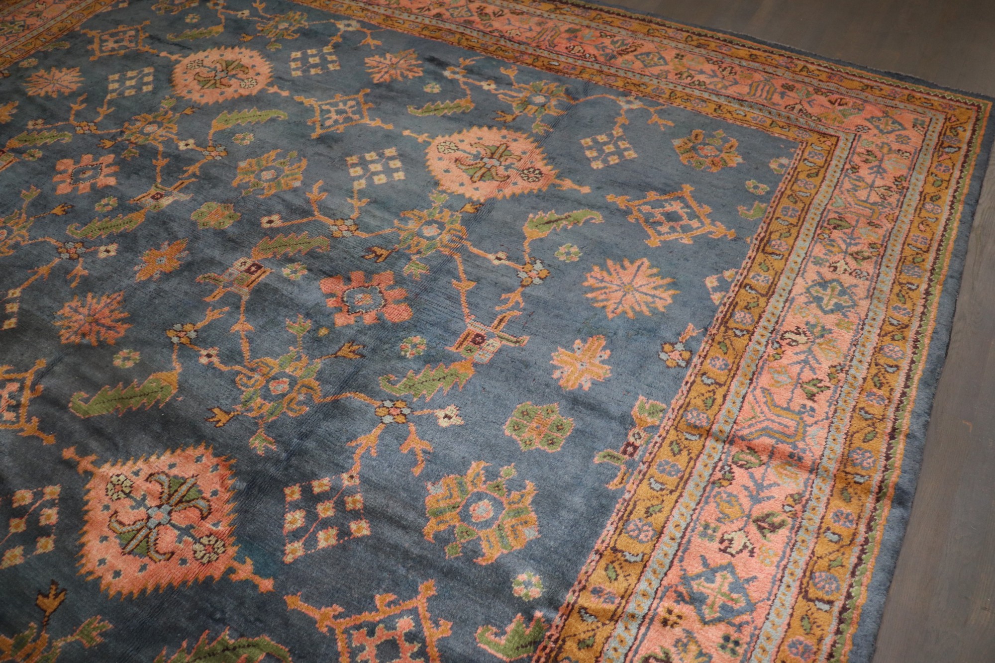 a 1900s Square Size Antique Turkish Oushak Room size rug