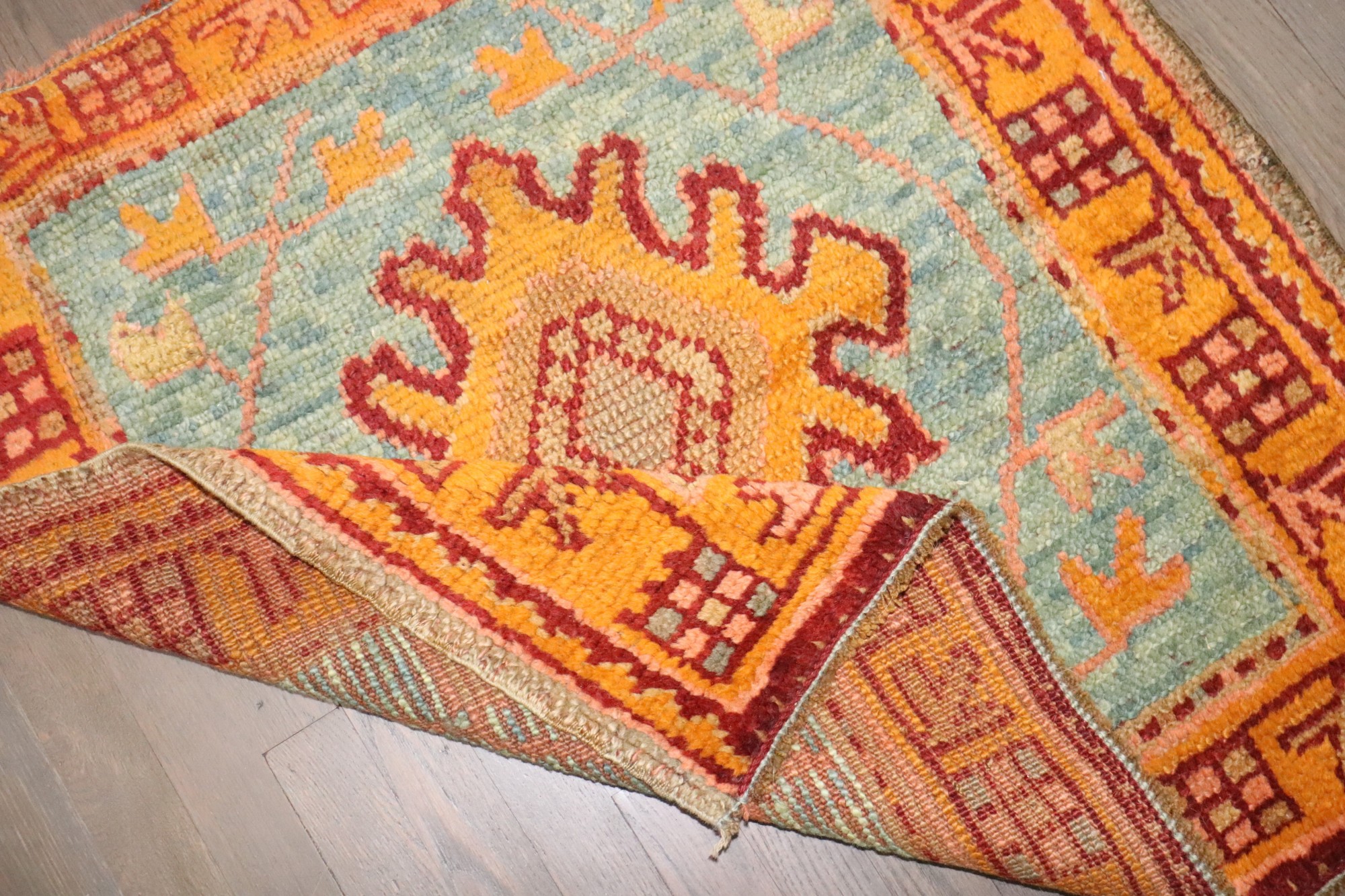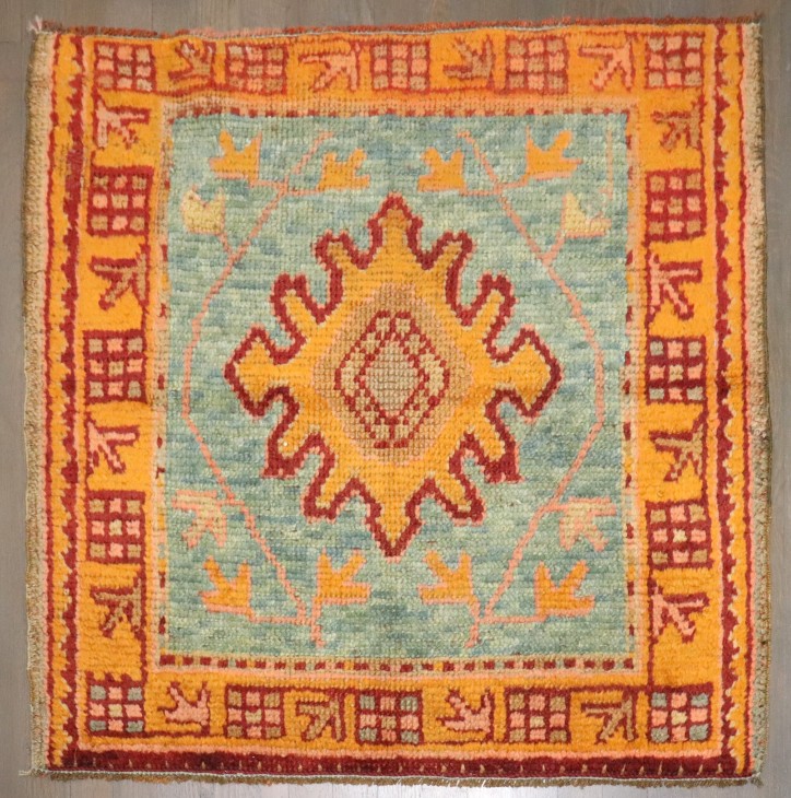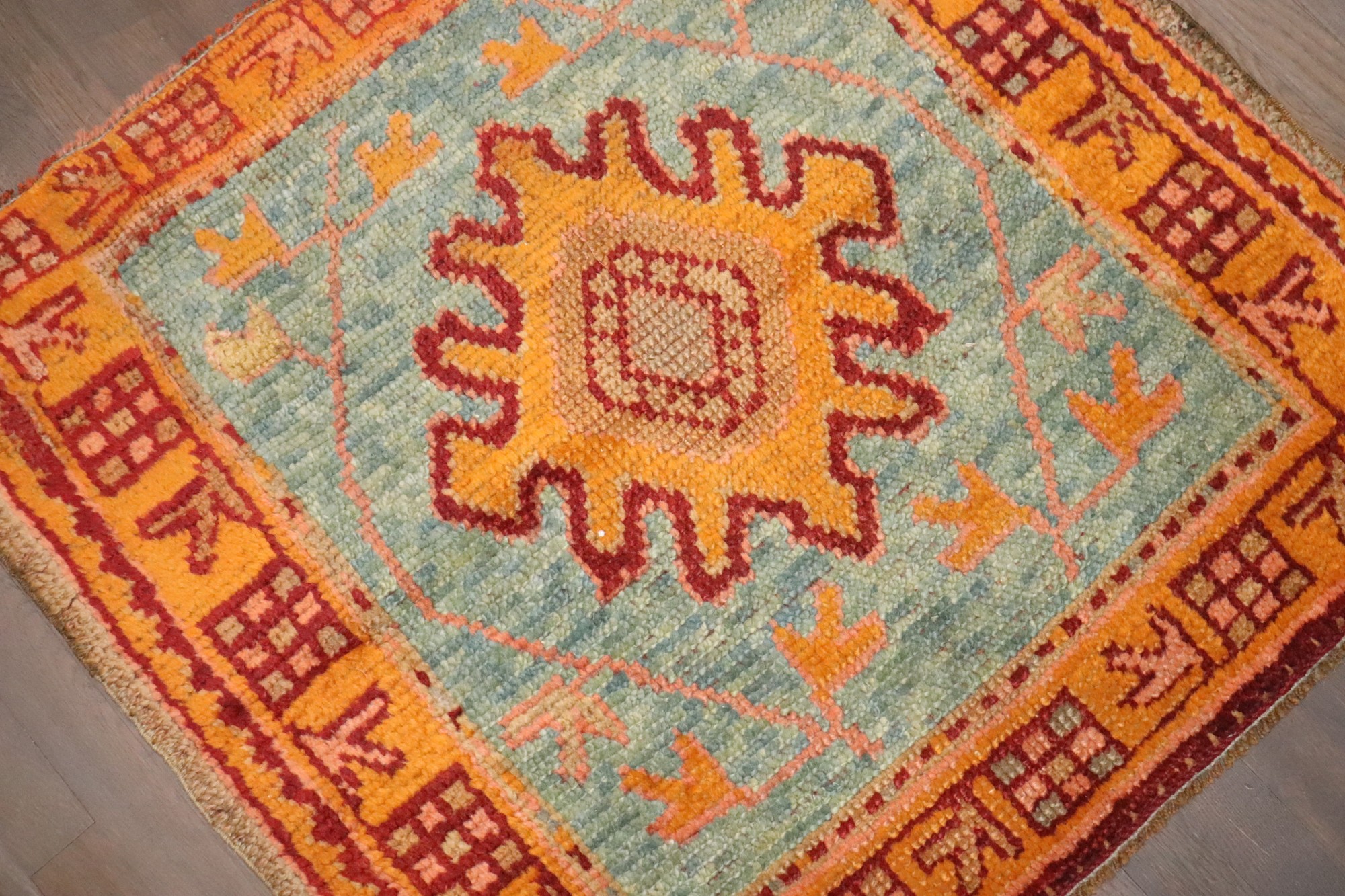 A vibrant color square size antique oushak carpet from the early 20th Century