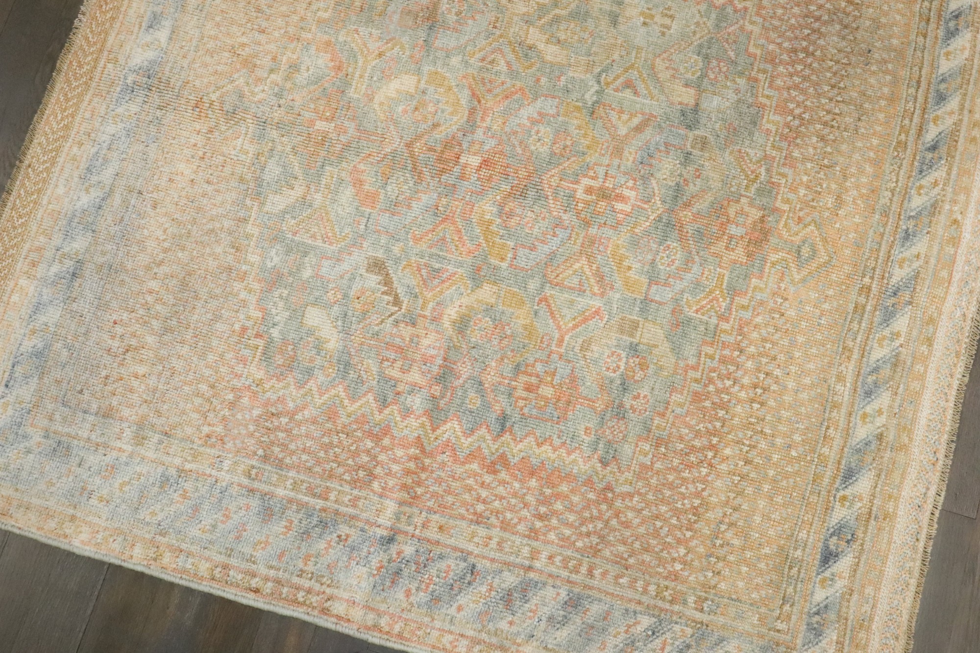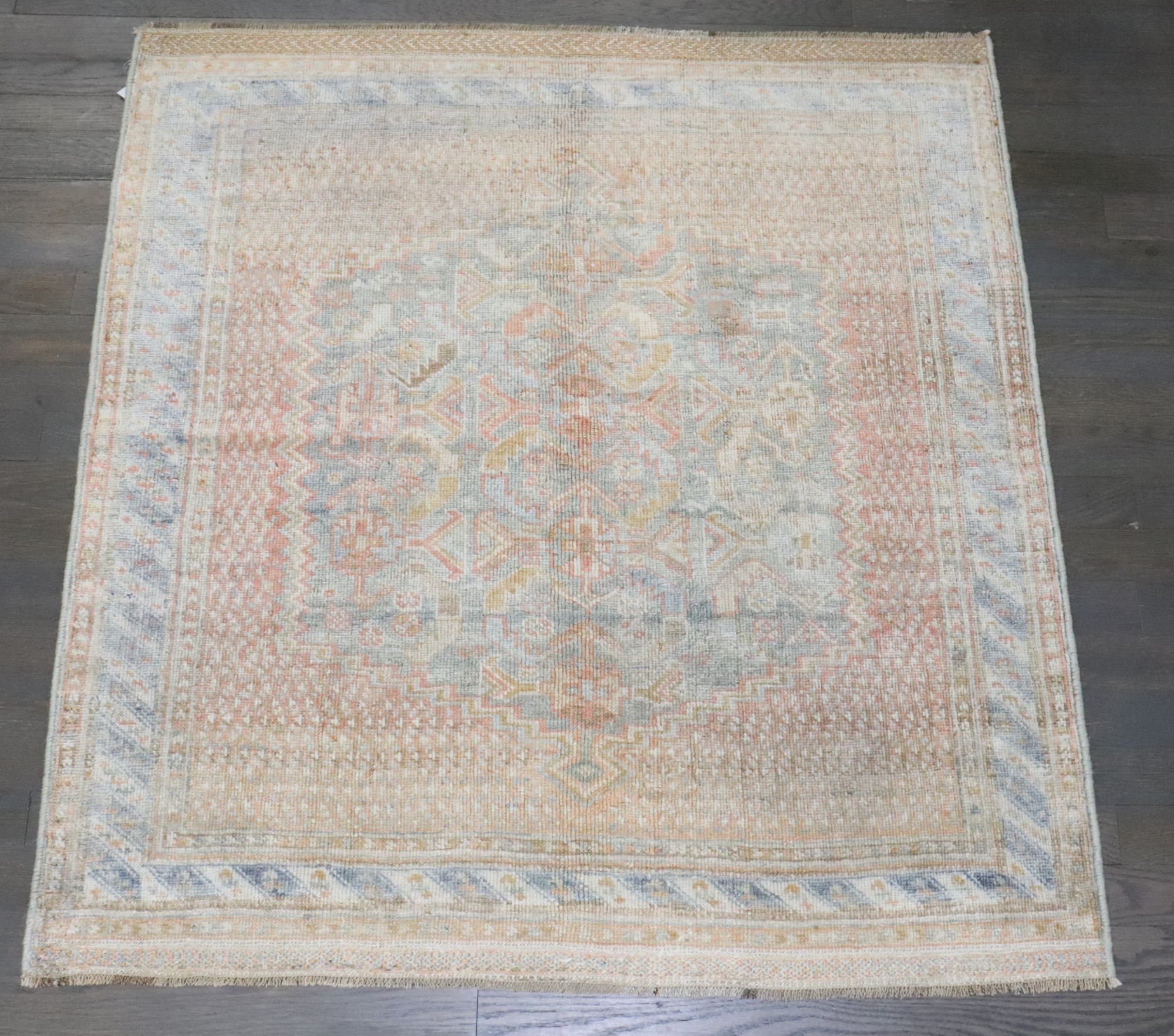 a pale soft peach Persian Afshar small square rug from the early 20th century