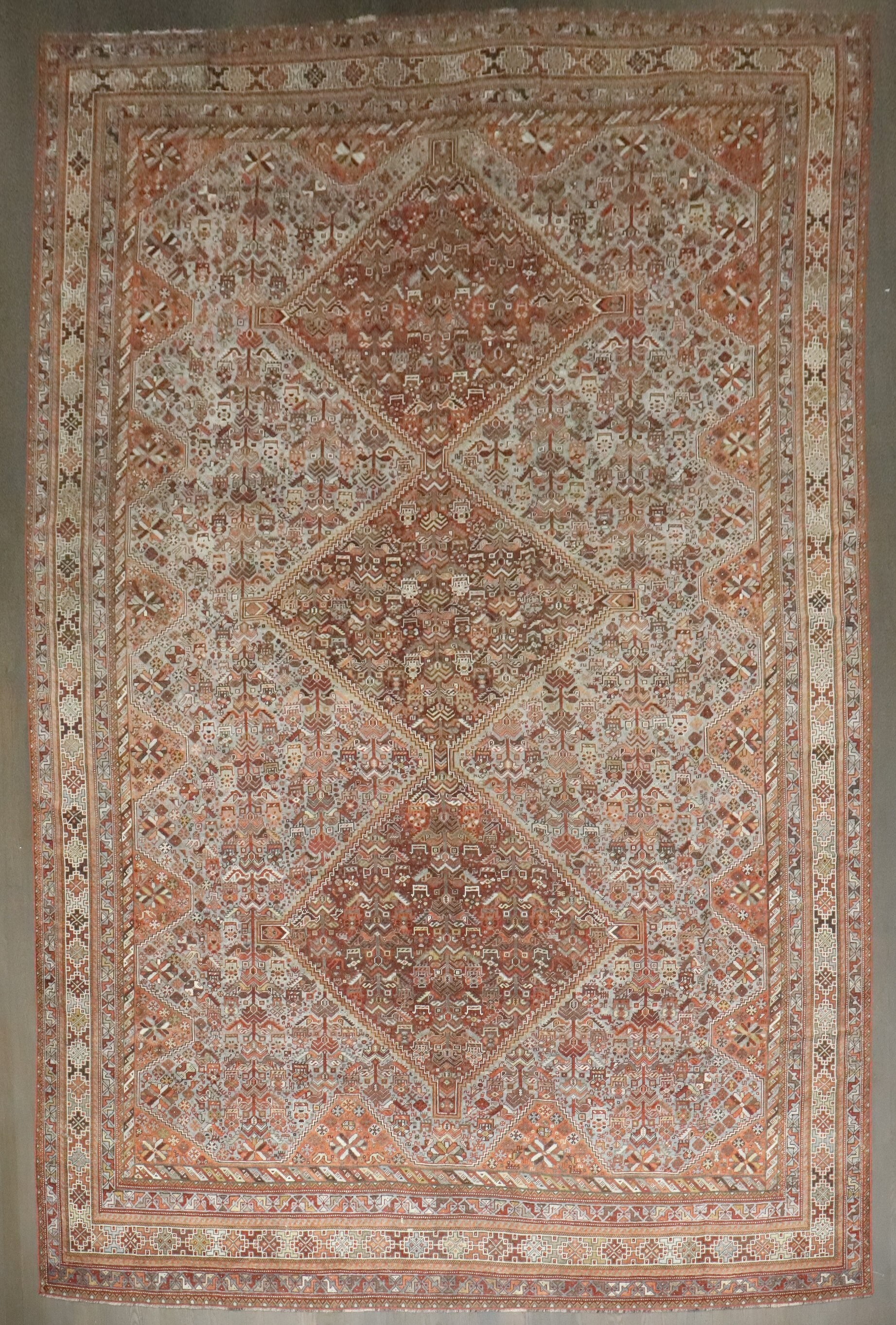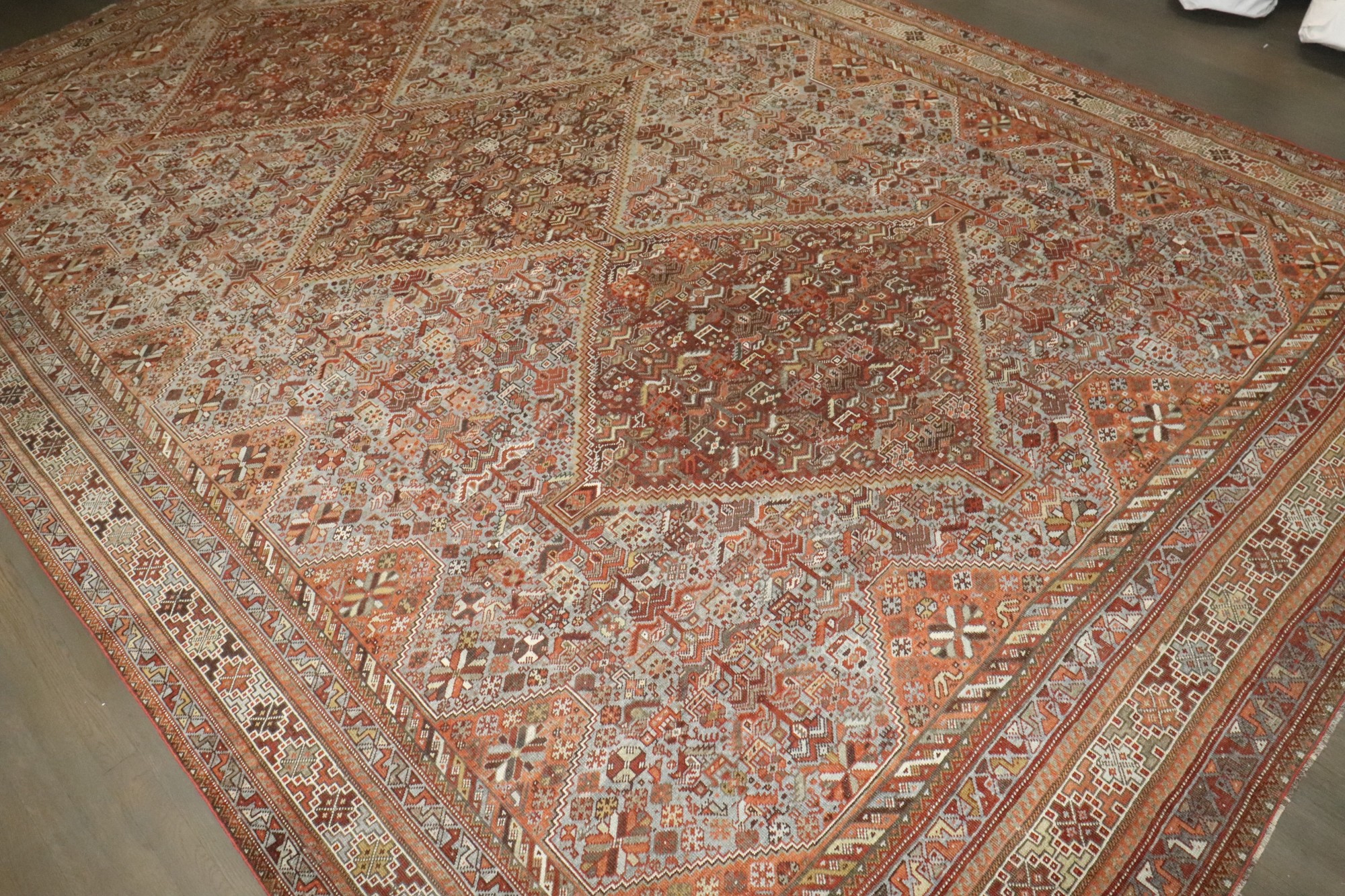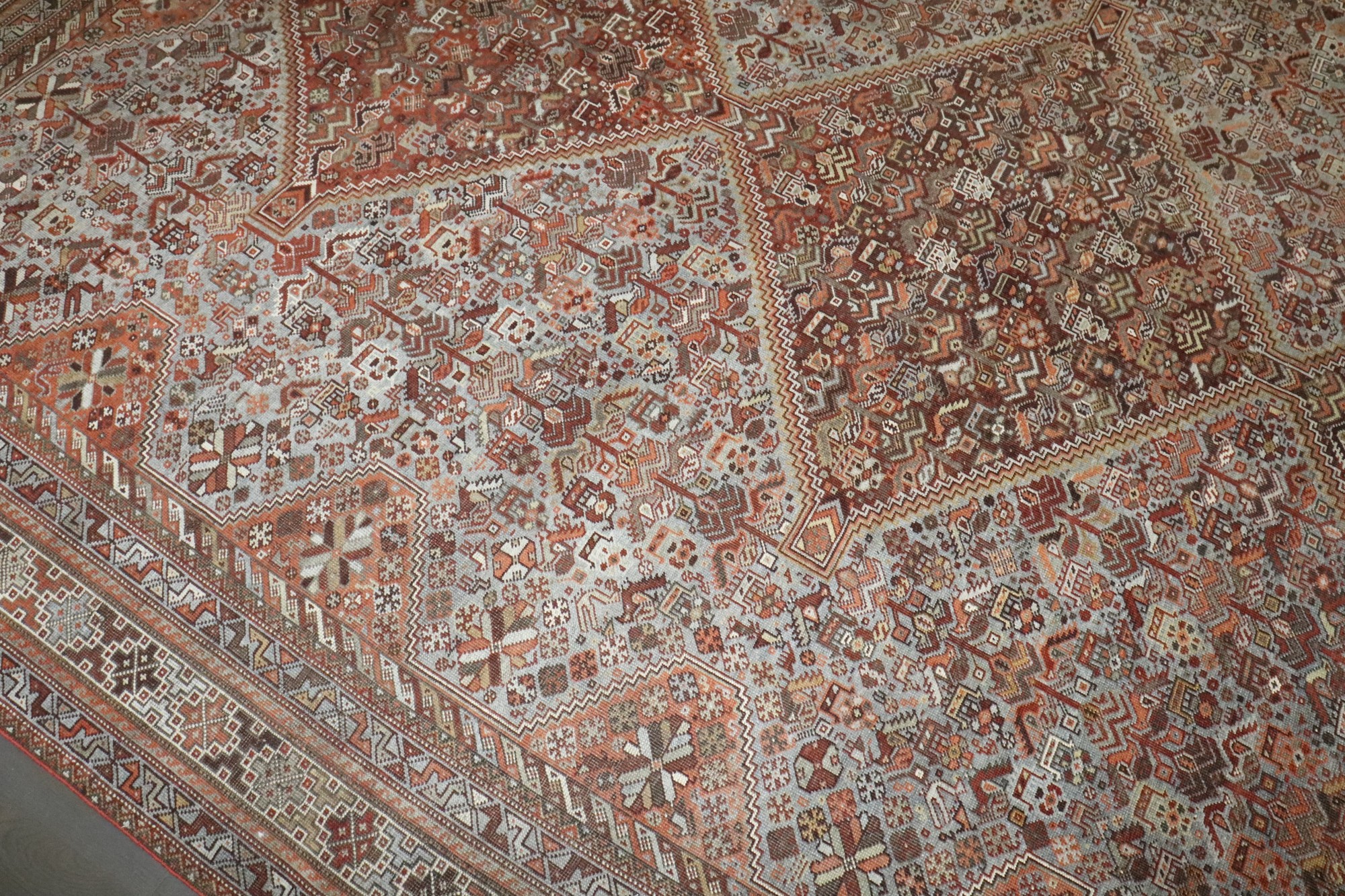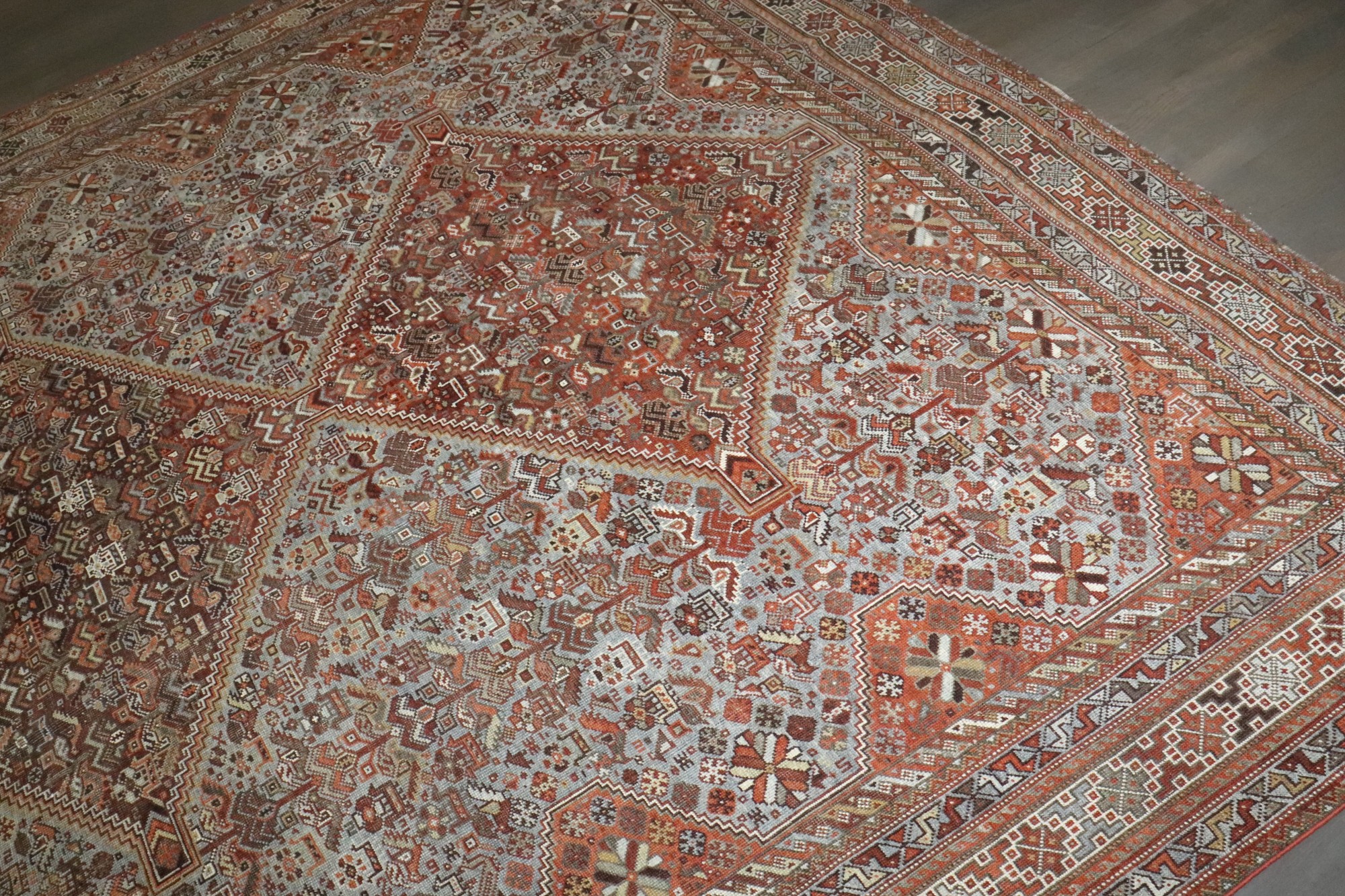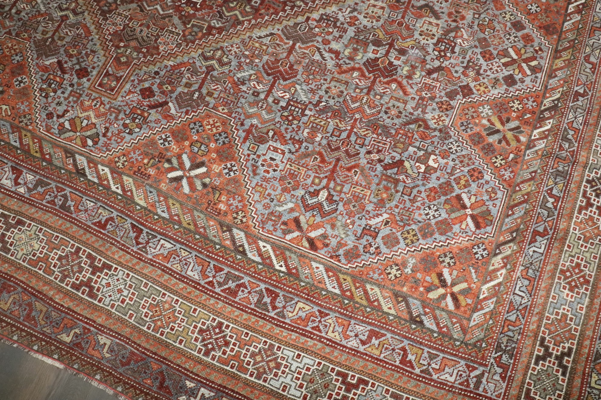 a tribal room-size Persian Shiraz rug from the early 20th century