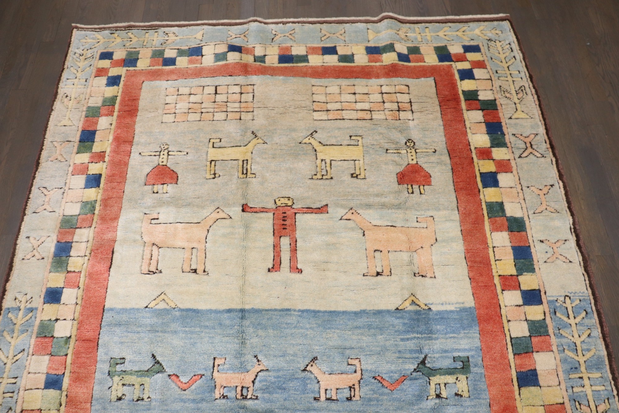a 3rd quarter of the 20th century, Folk Art Turkish Azari Pictorial rug