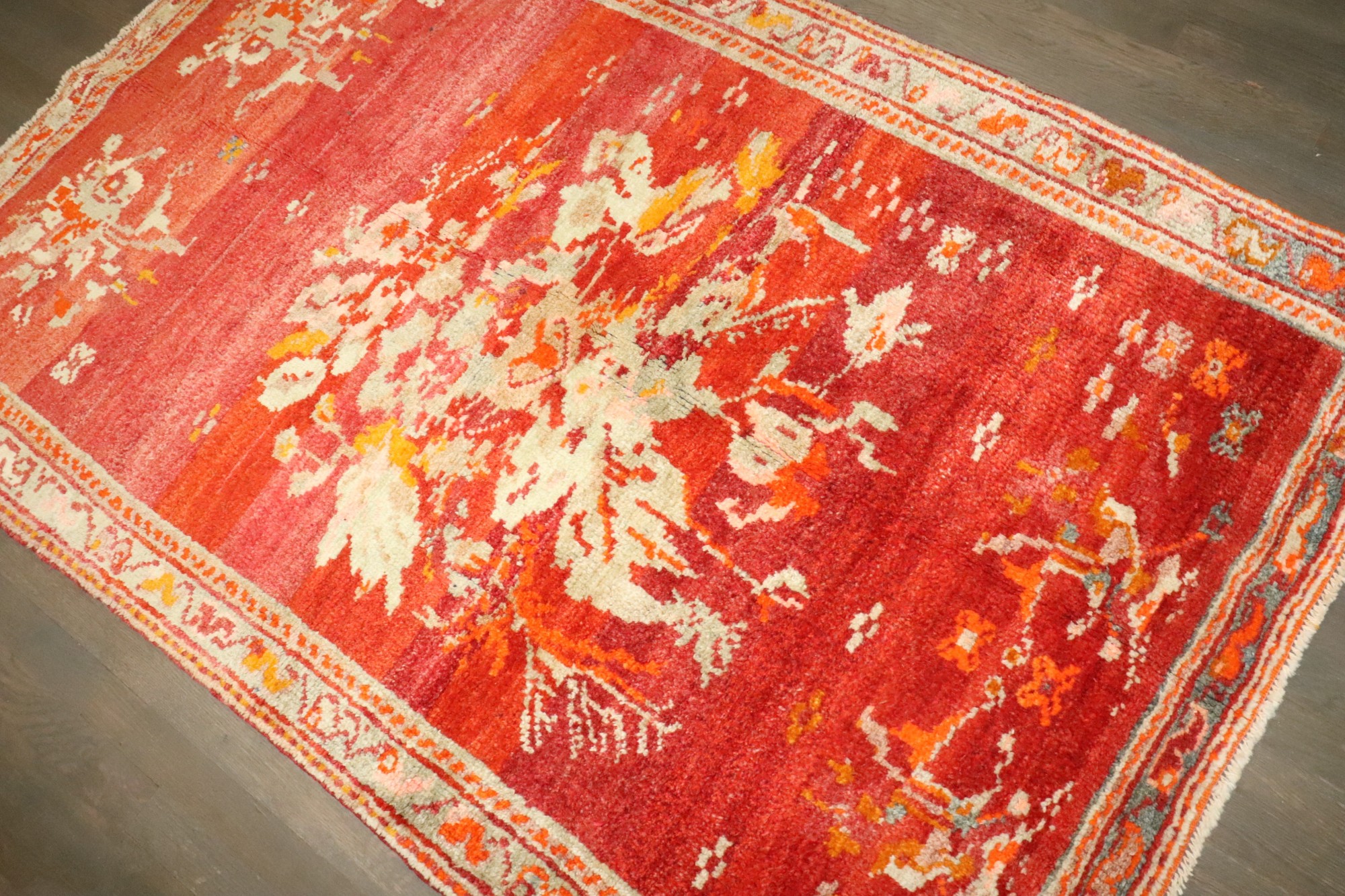 a mid 20th century Turkish Anatolian Floral bright red rug