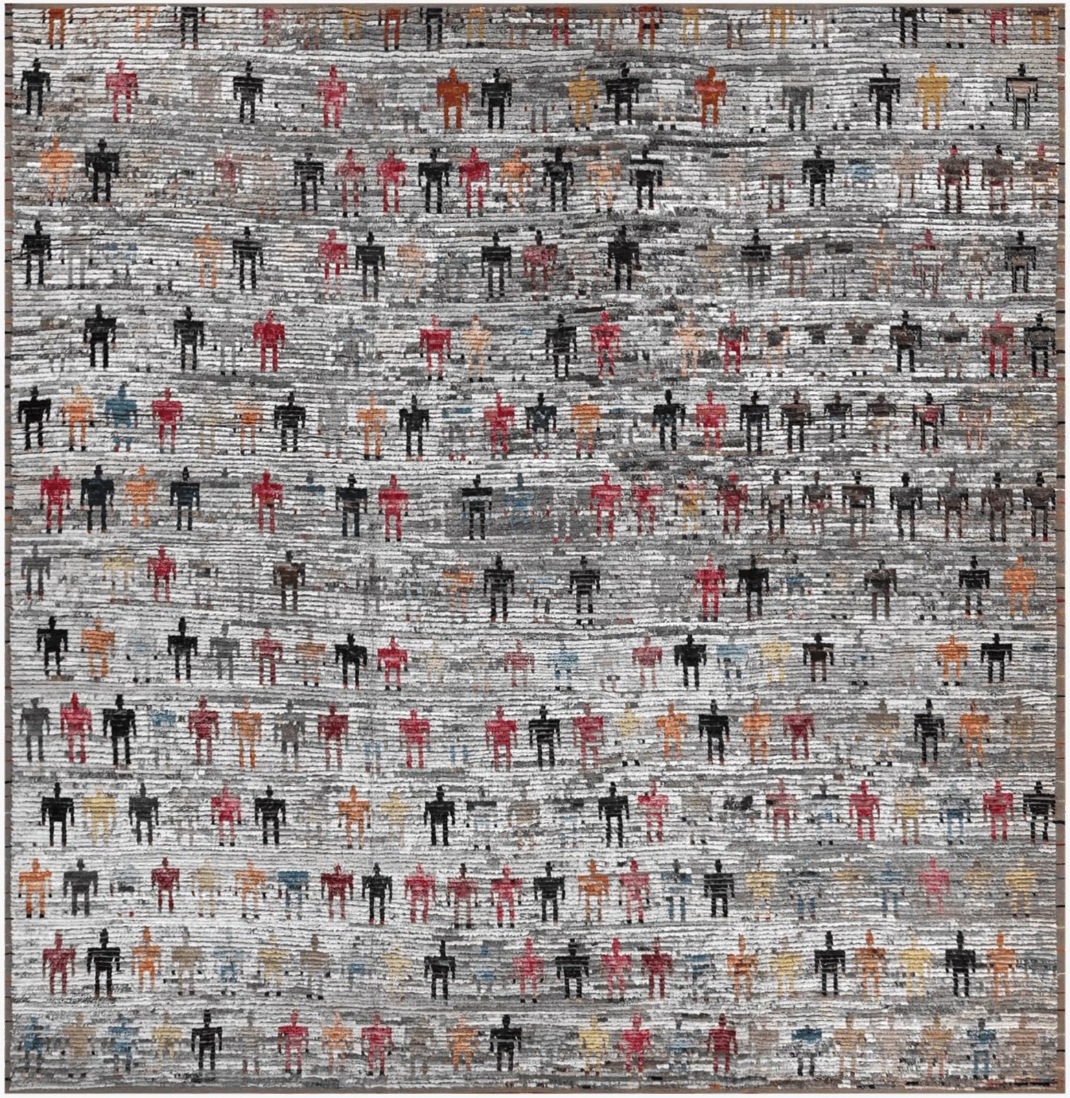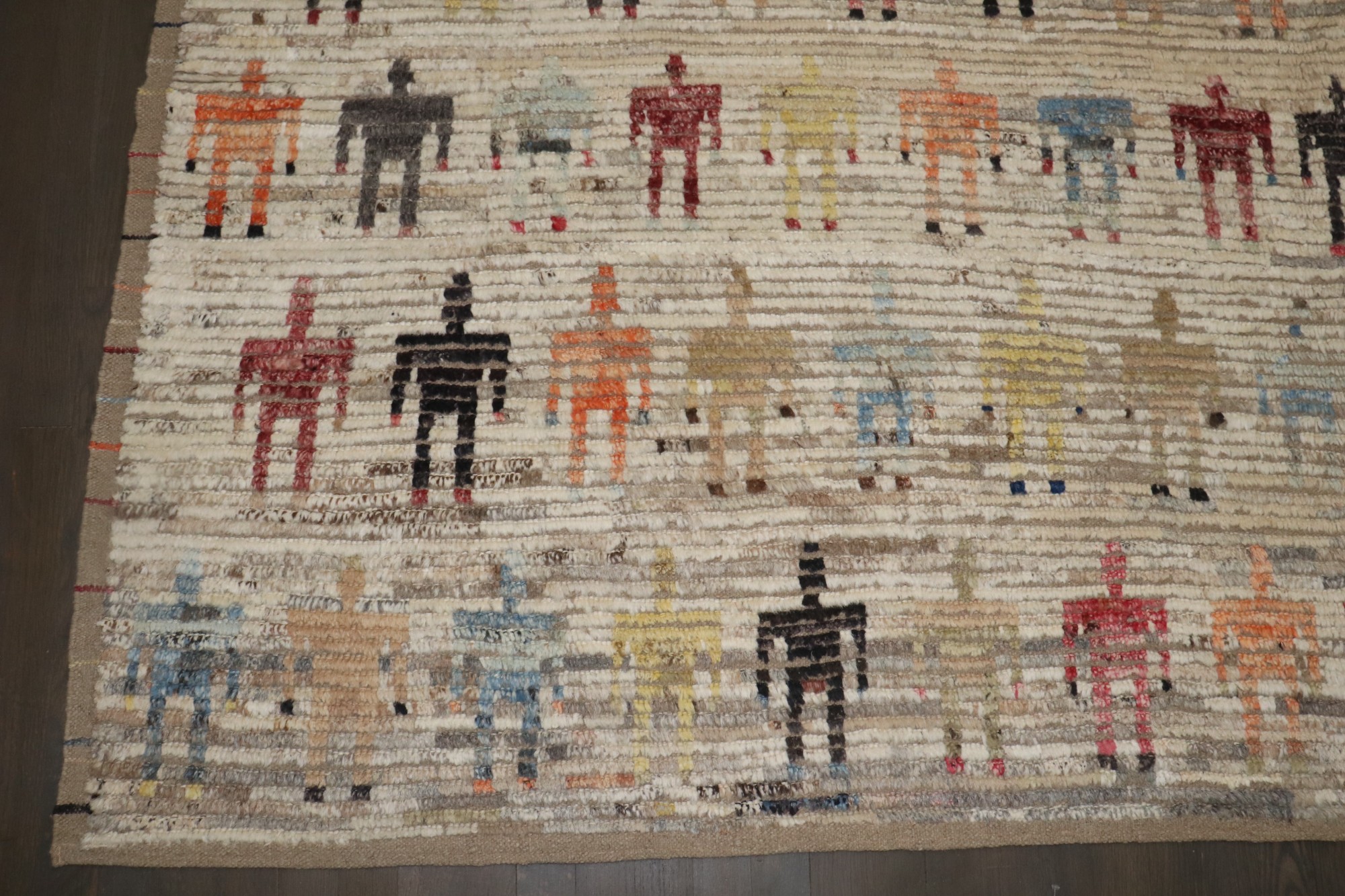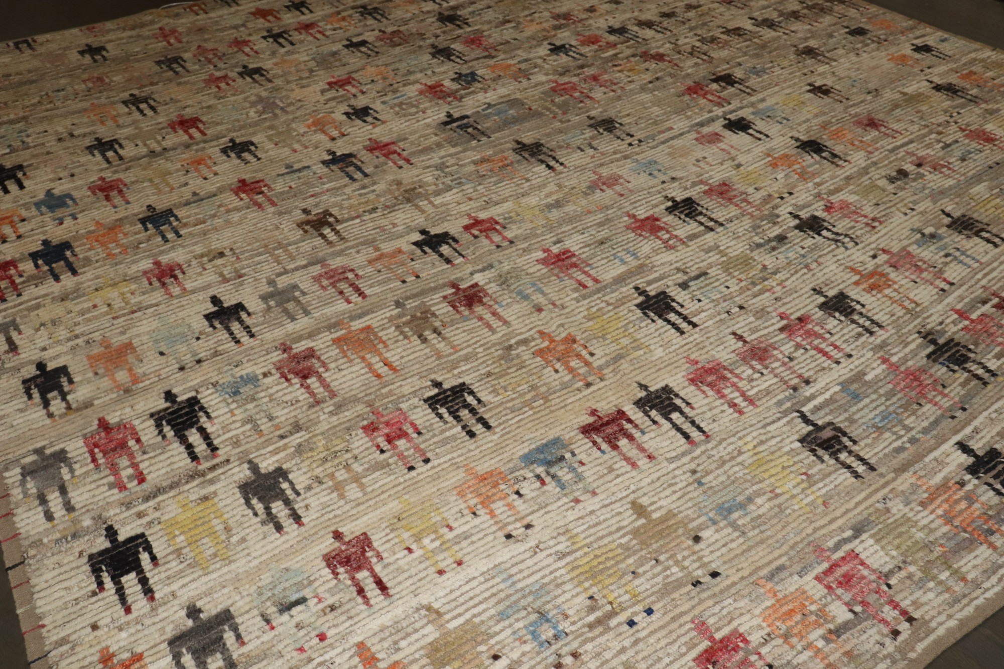 A large square size human pictorial ground Tulu Rug
