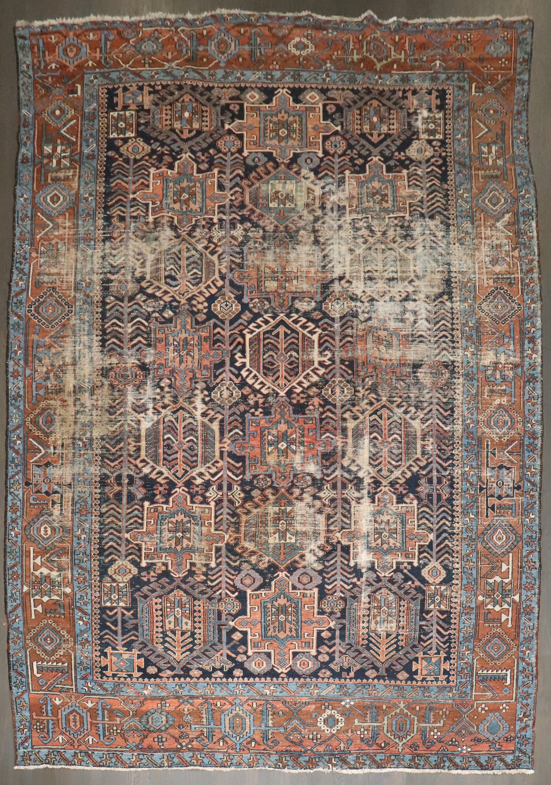 An early 20th Century Worn Heriz Karadja Rug