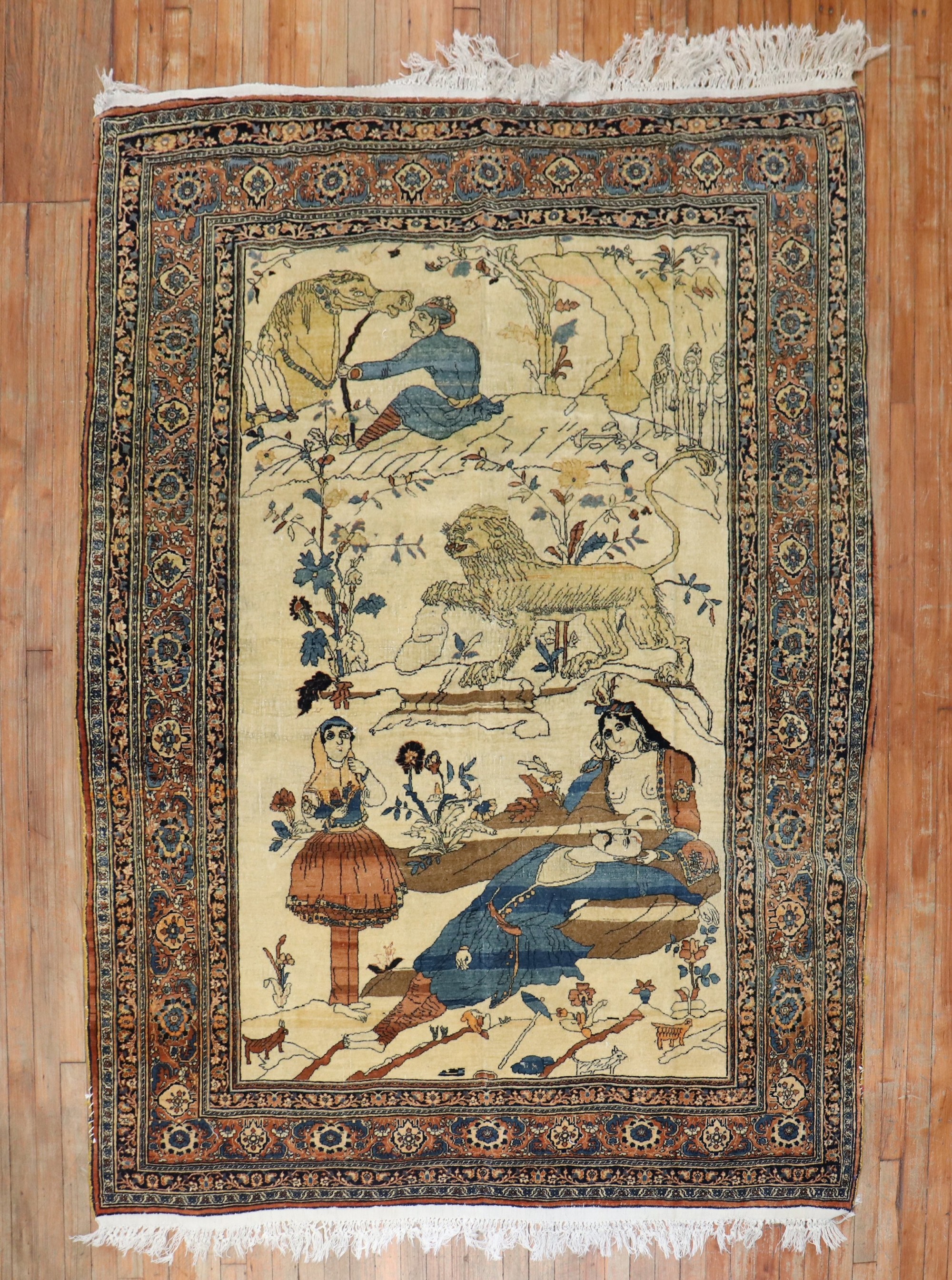 19th Century Hadji Jali Li Pictorial Lion Rug rug no. j2218