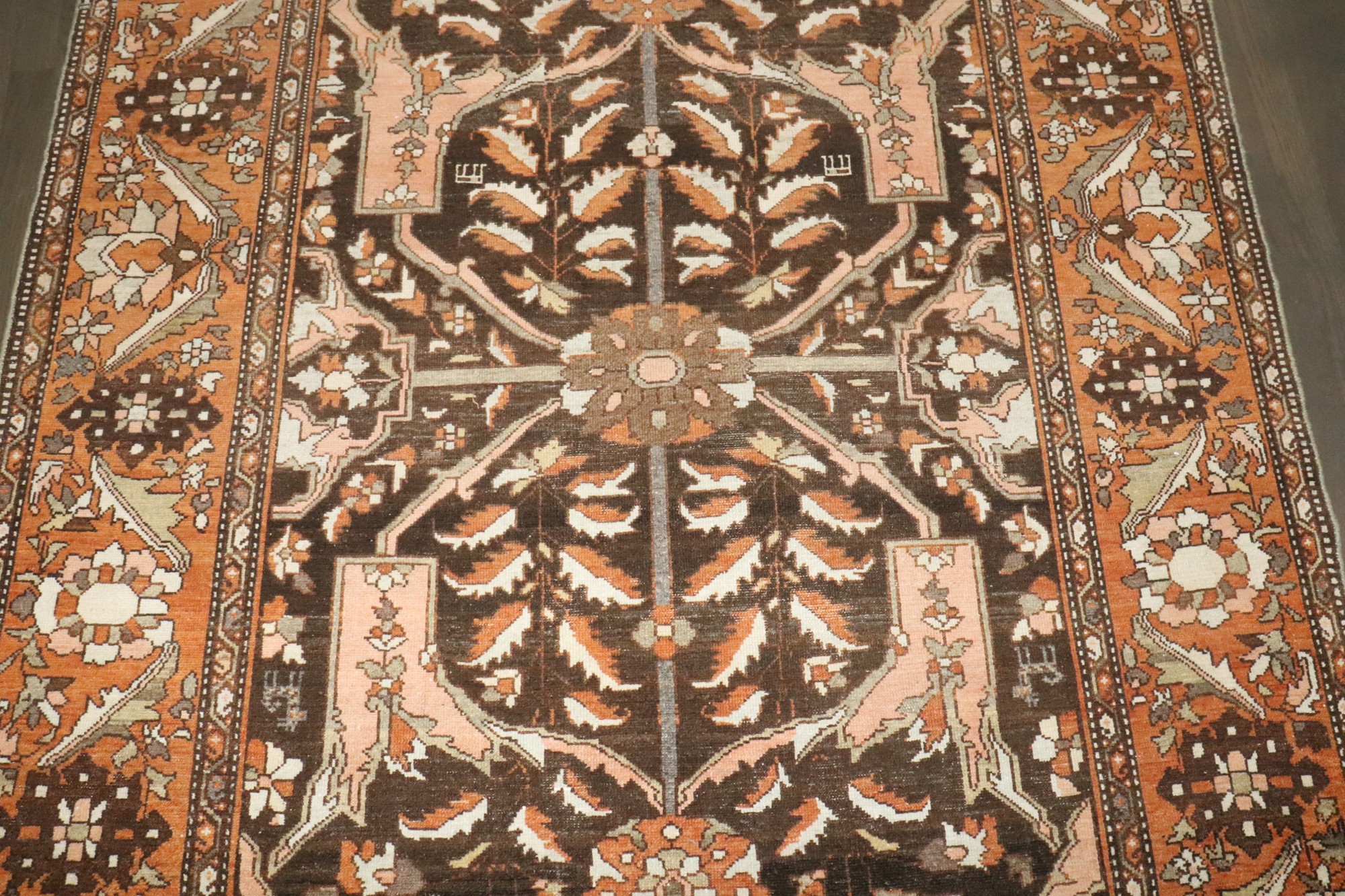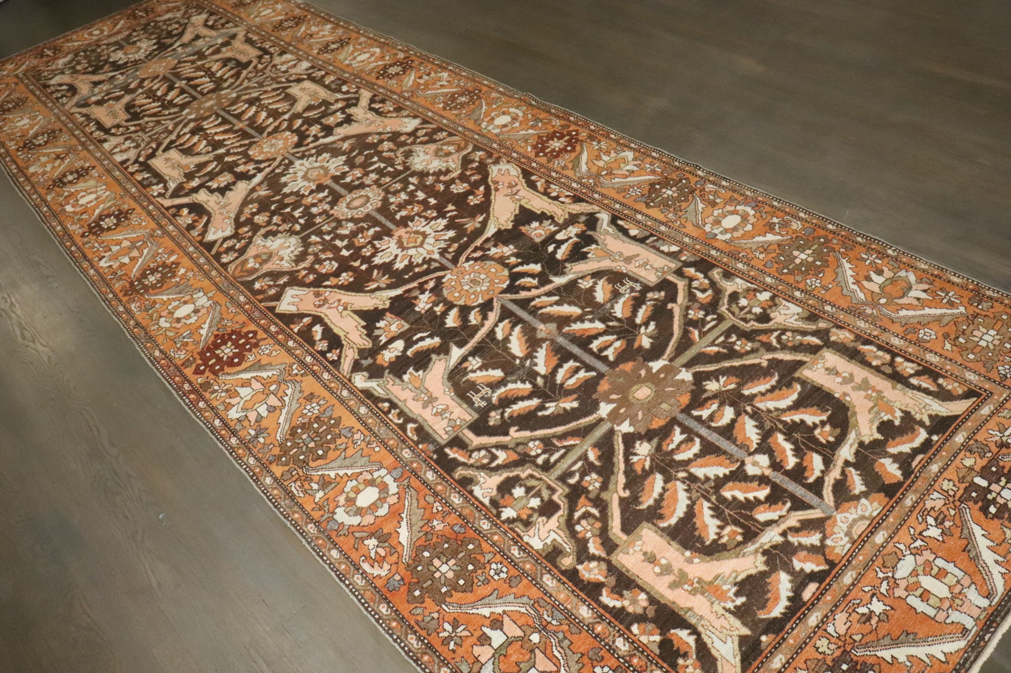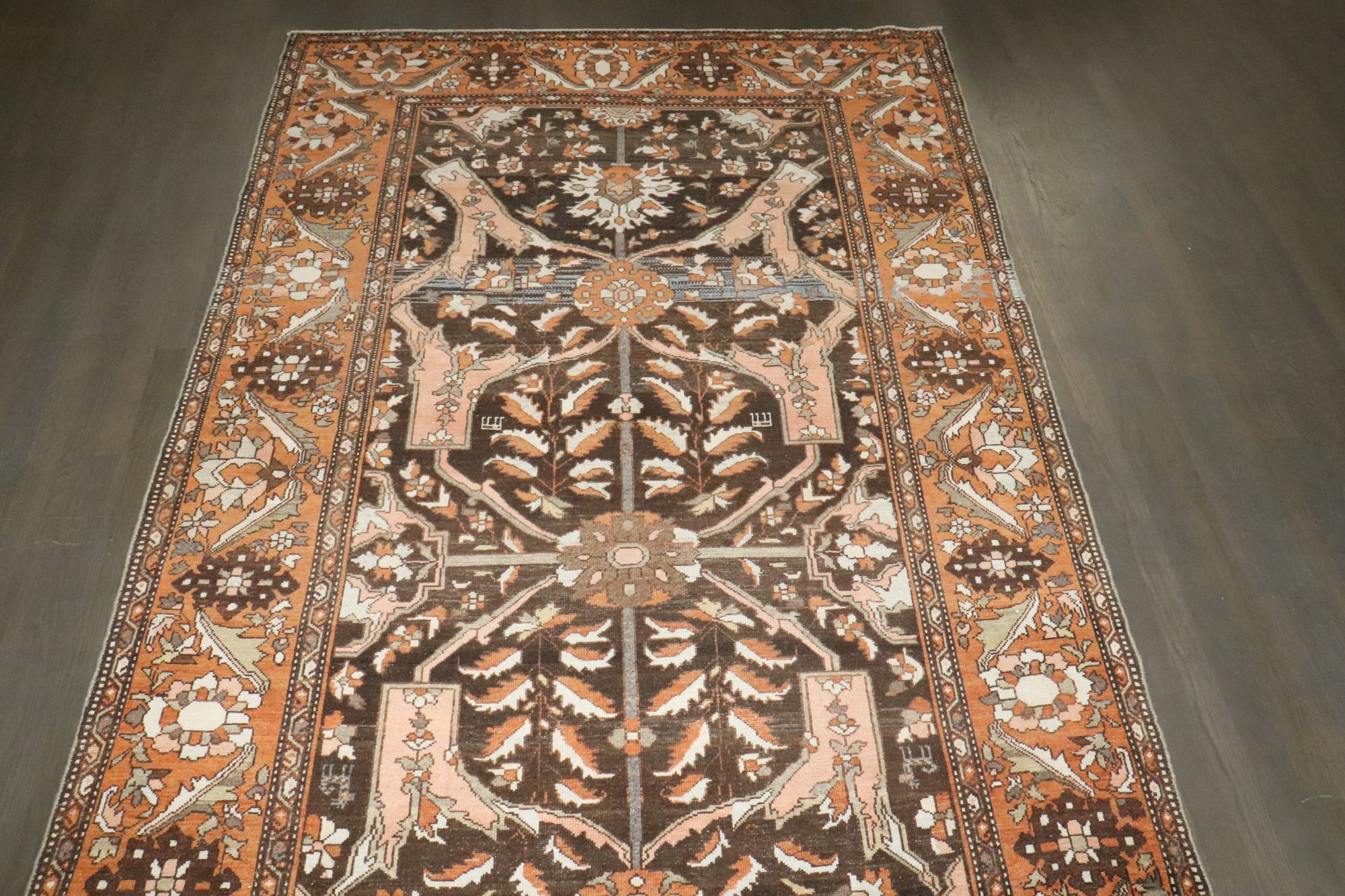 An early 20th-century brown Persian Bakhtiari corridor size rug