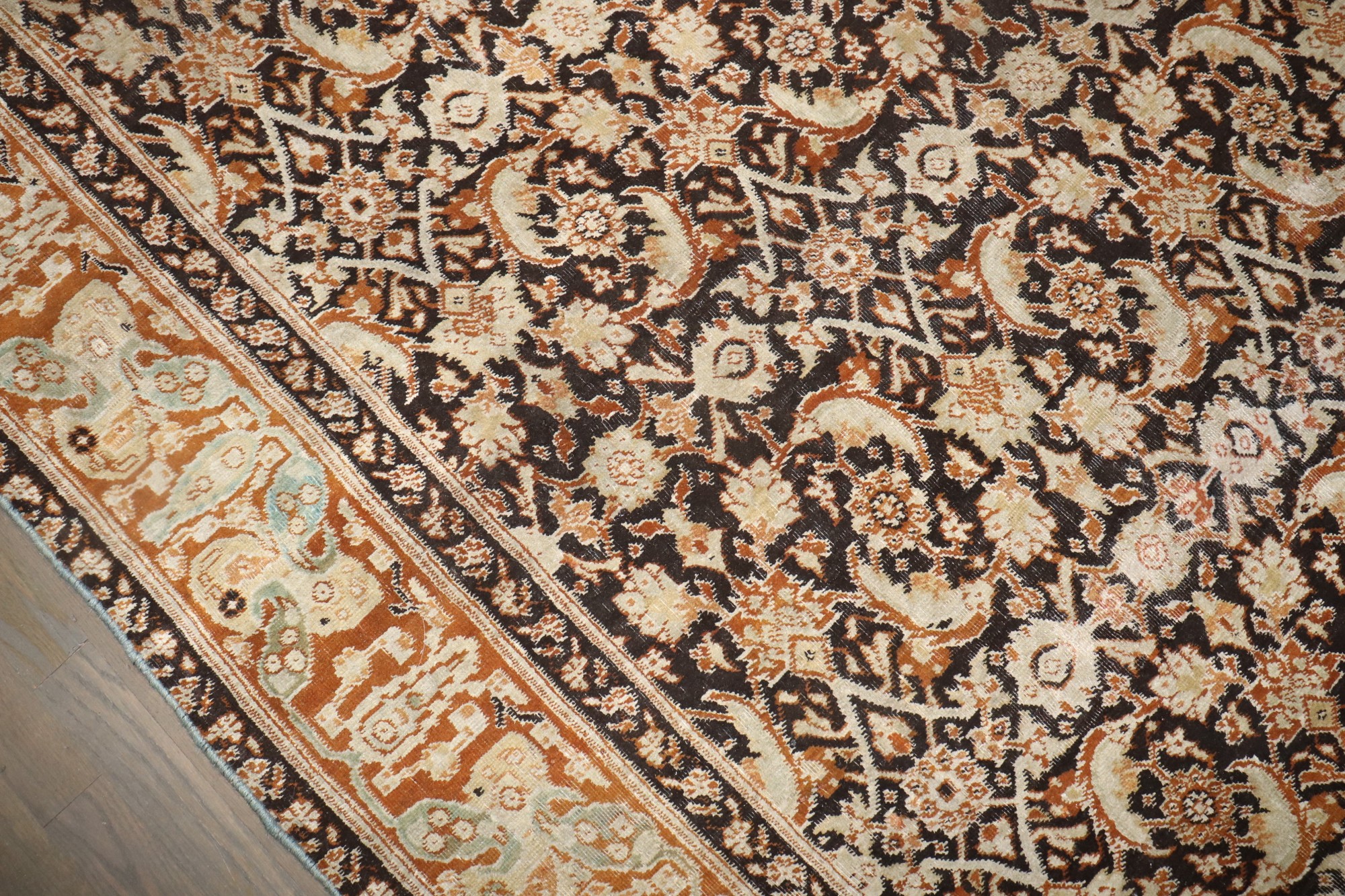 An early 20th-century Indian Agra Rug with an all-over herati design on a dark brown ground