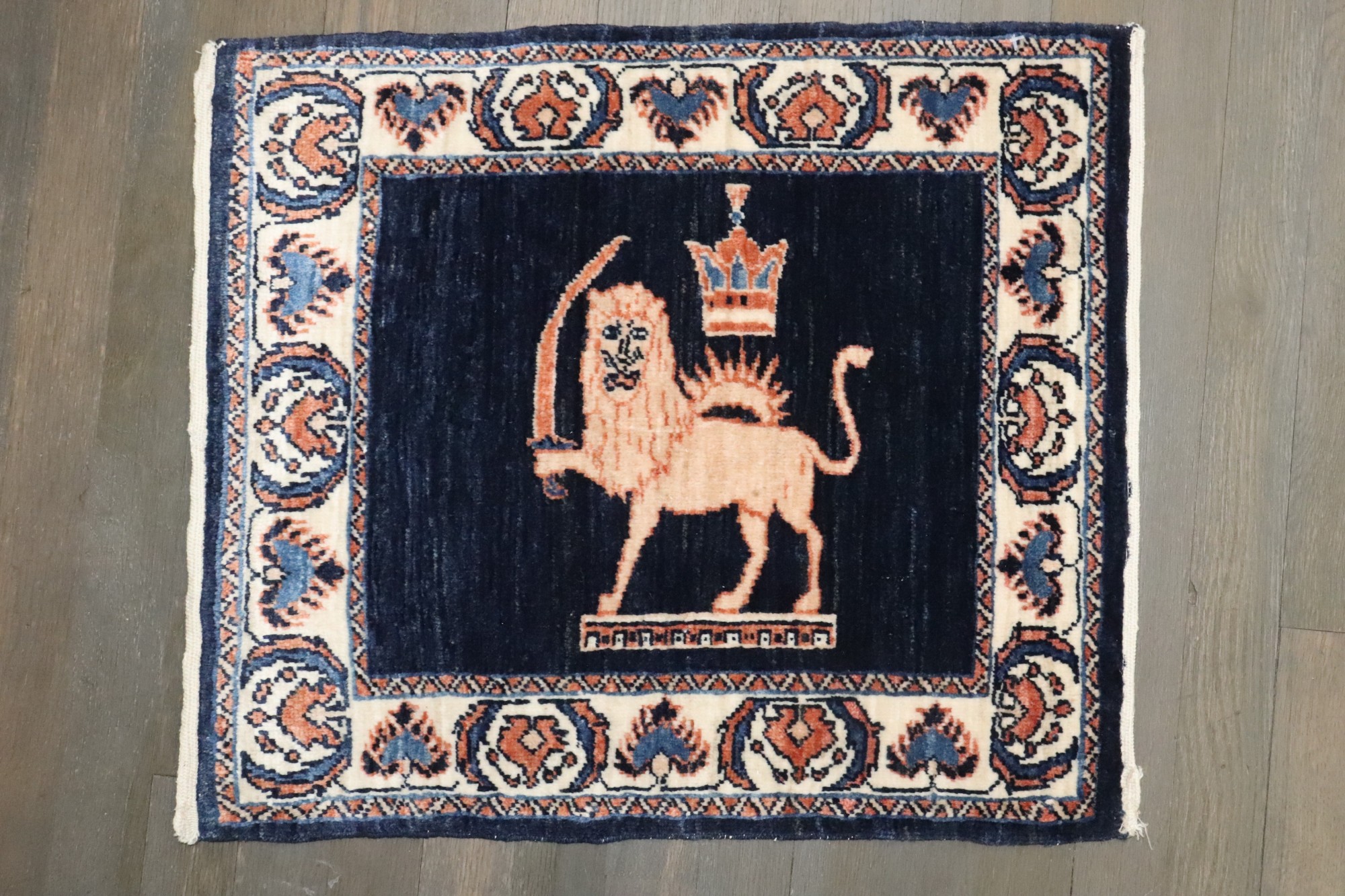 Blue Animal Pictorial Vintage Persian Lion King Rug rug no. j4987