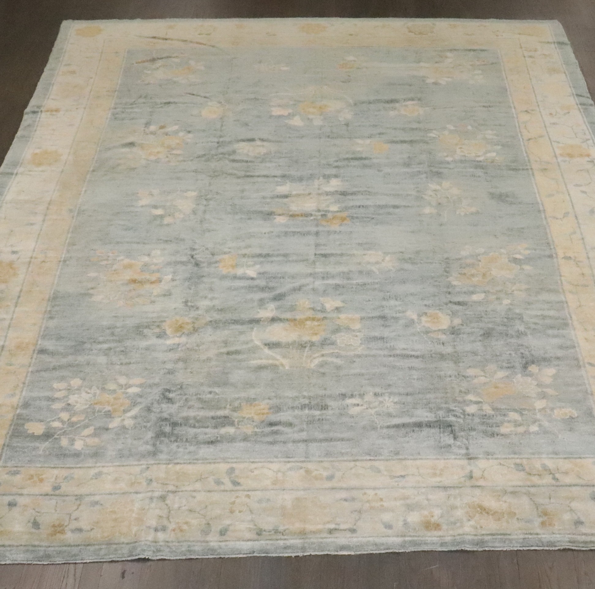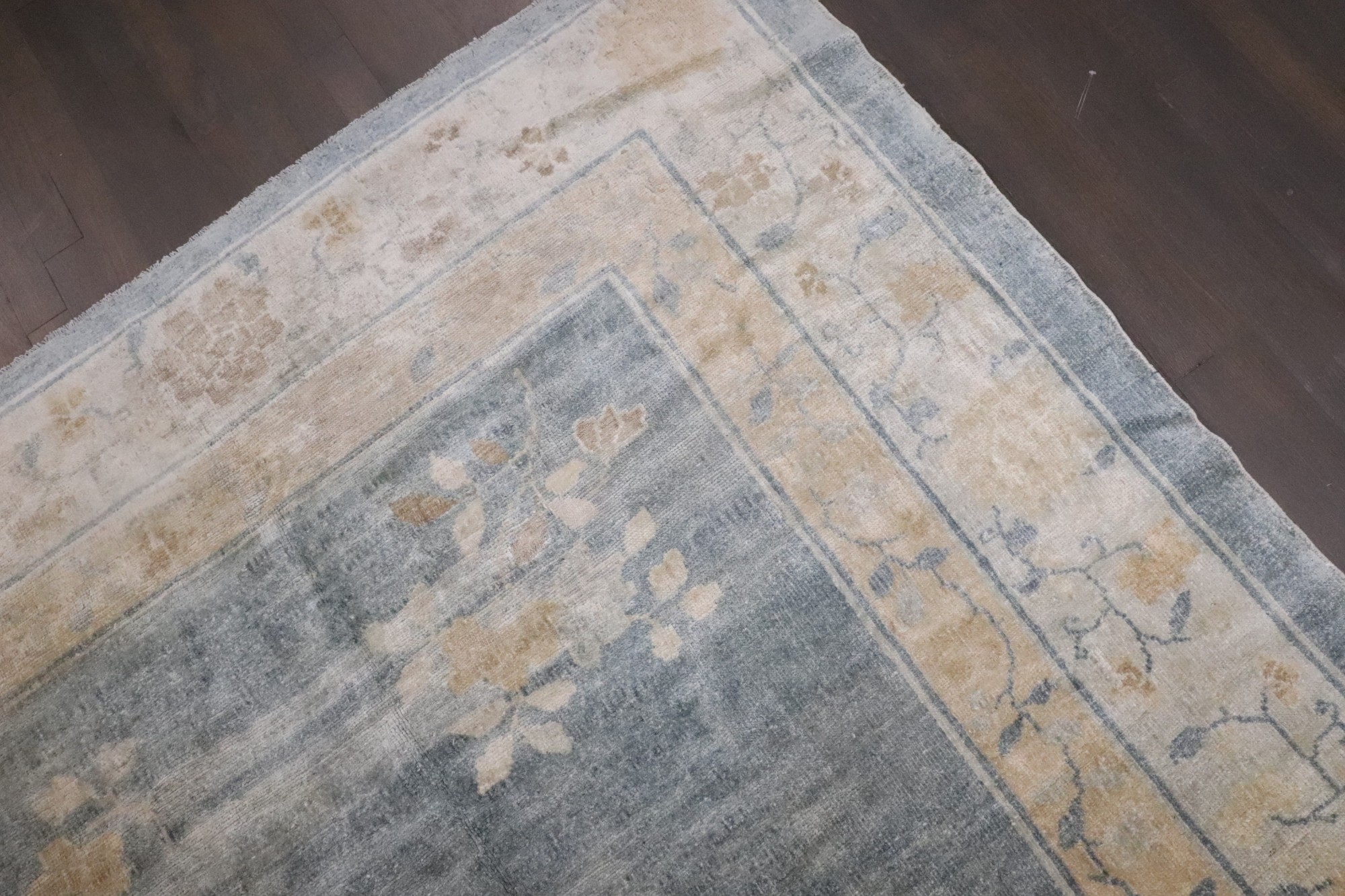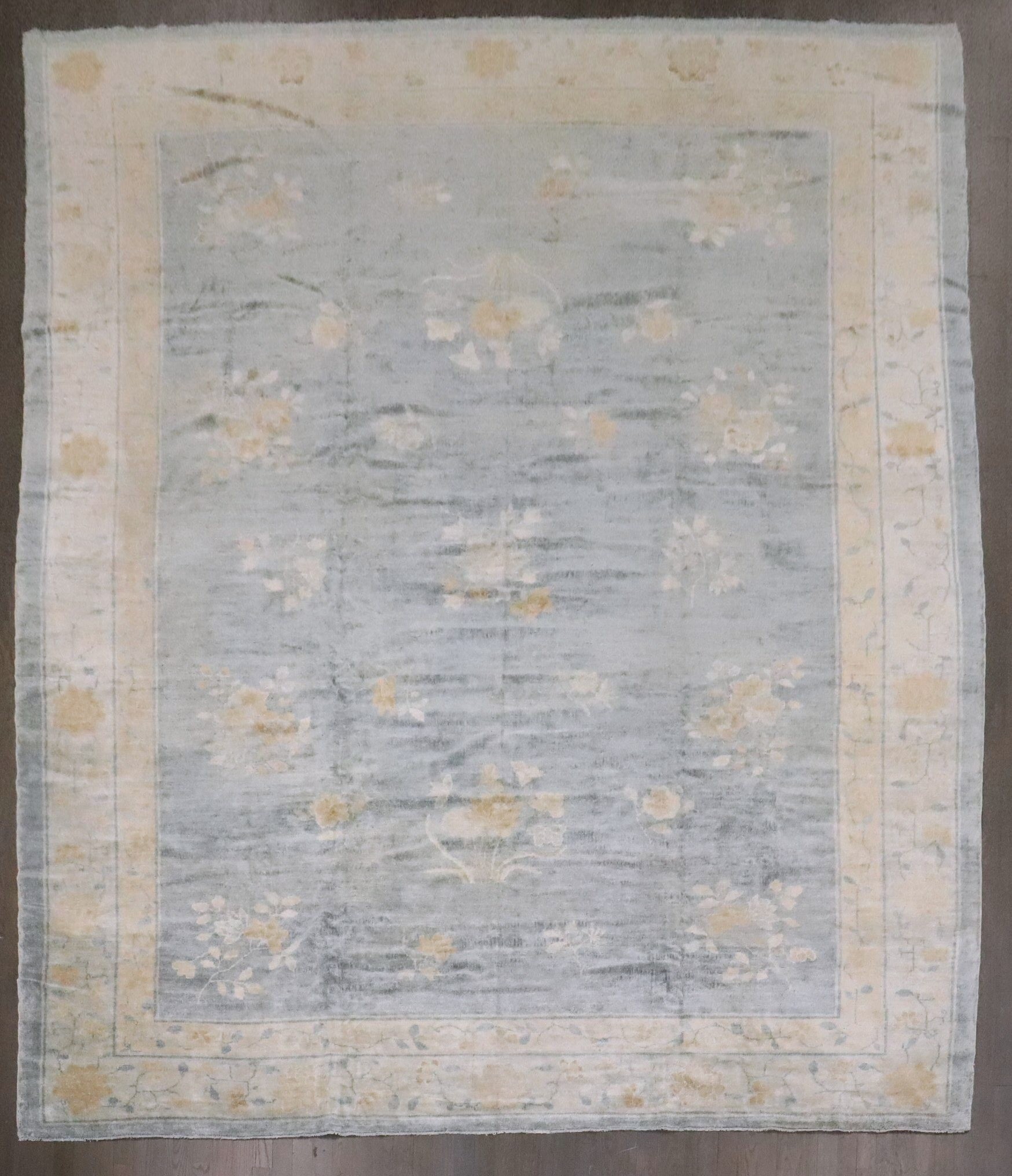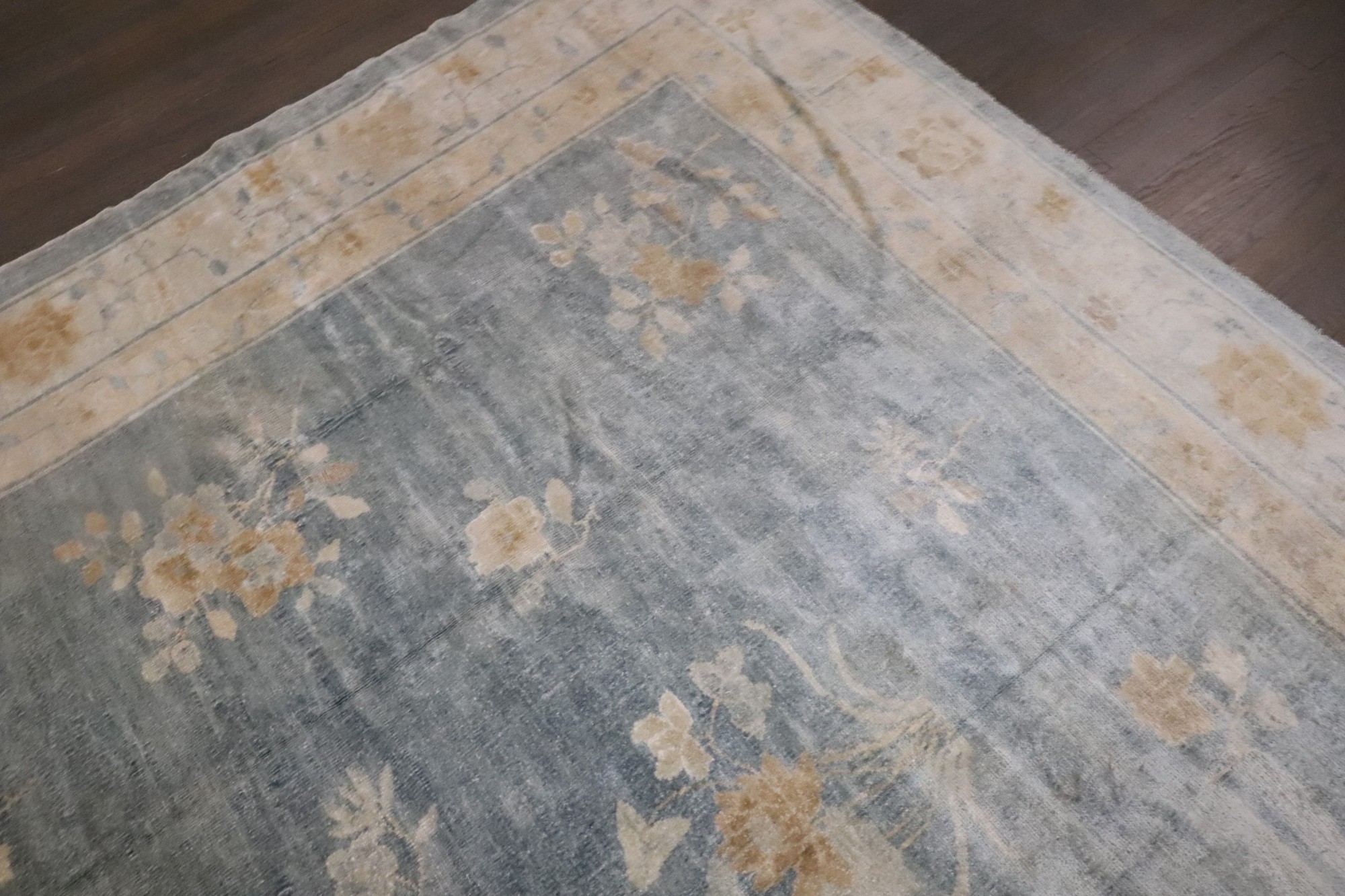 a 1920s Chinese Peking Floral rug in soft blues and cream