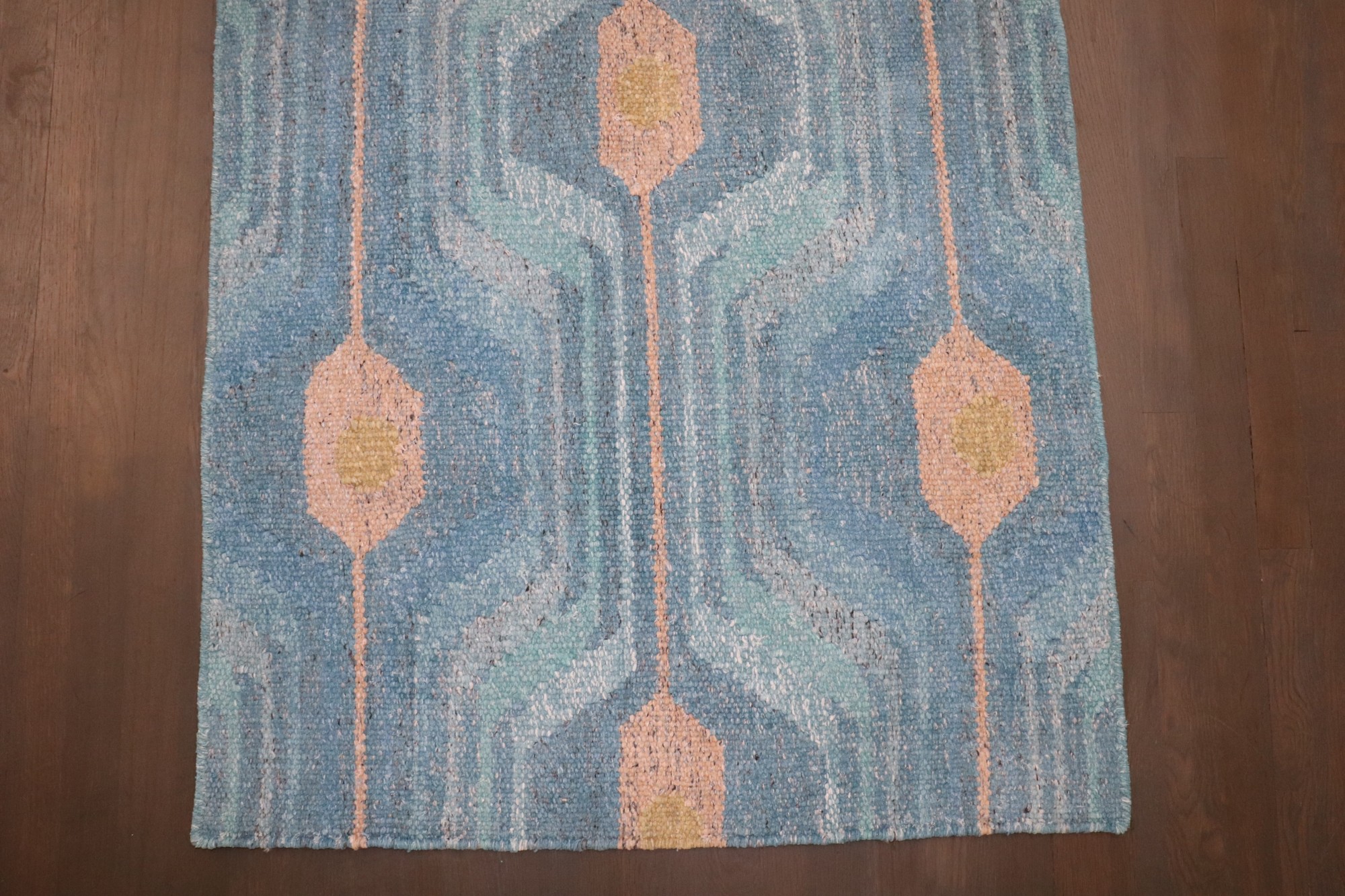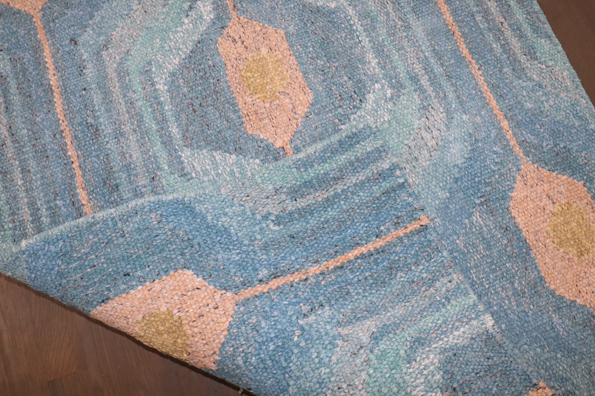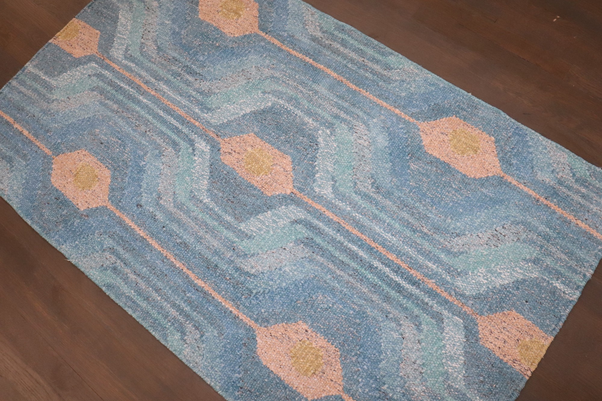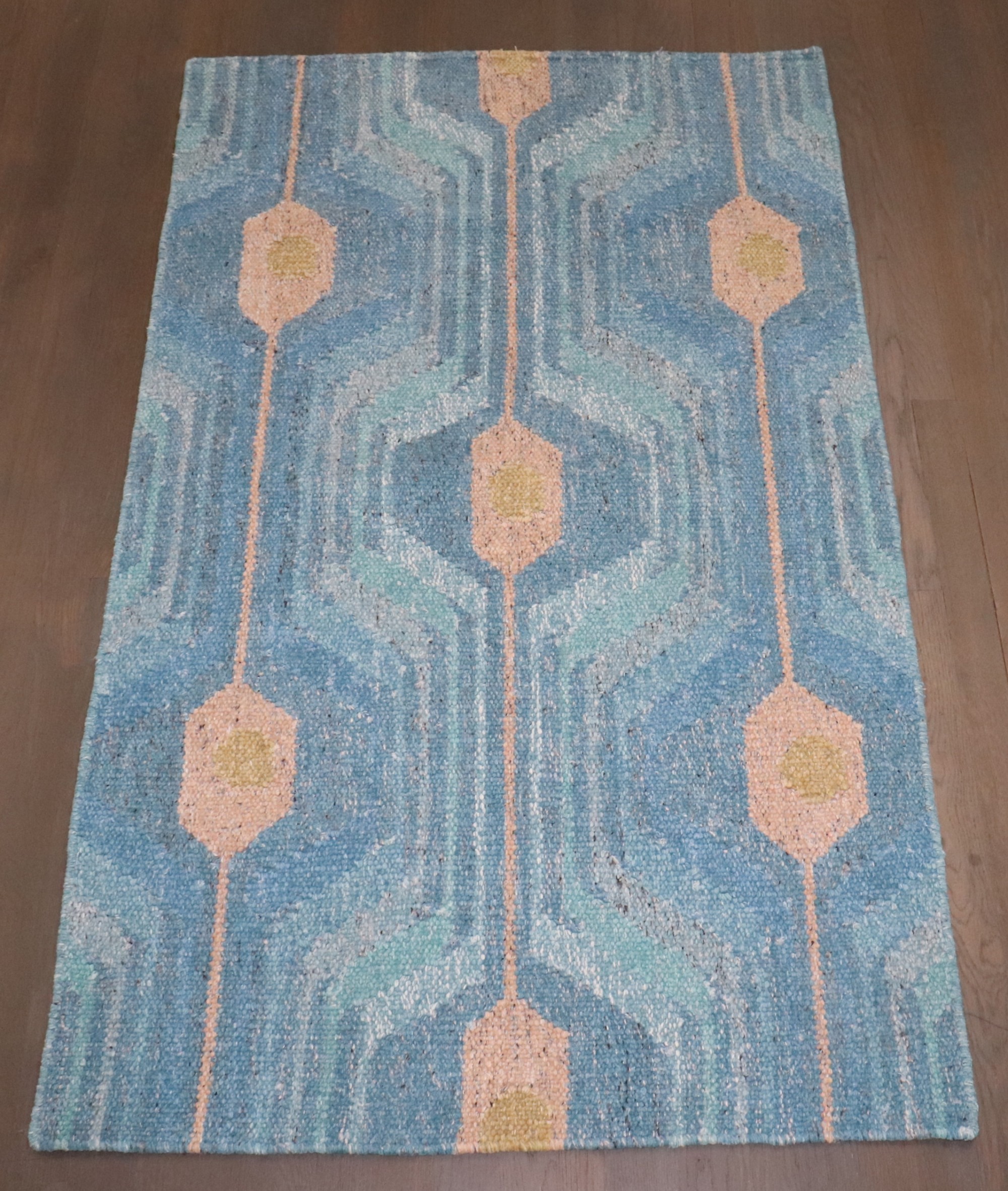 a one of a kind 21st Century Blue Scandinavian Kilim