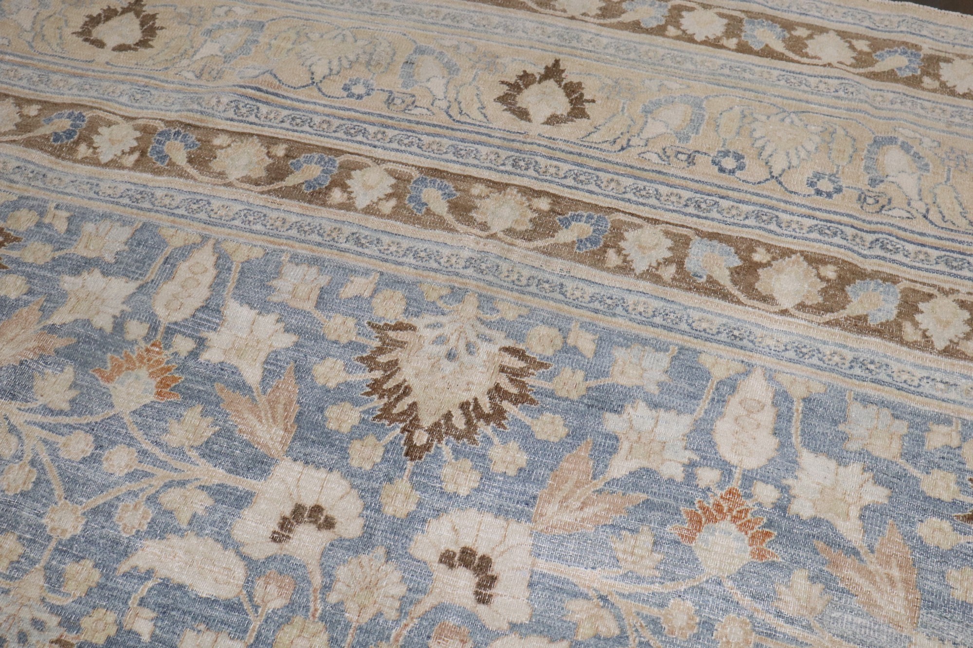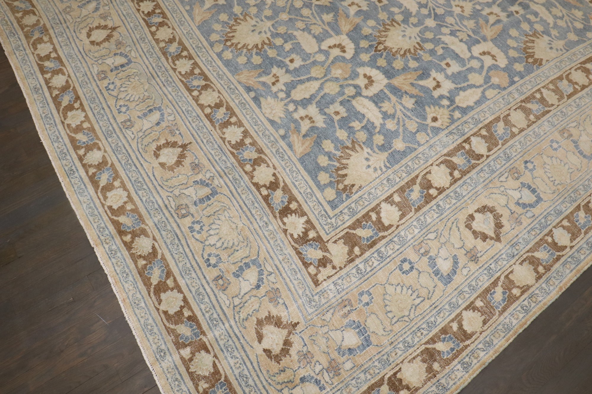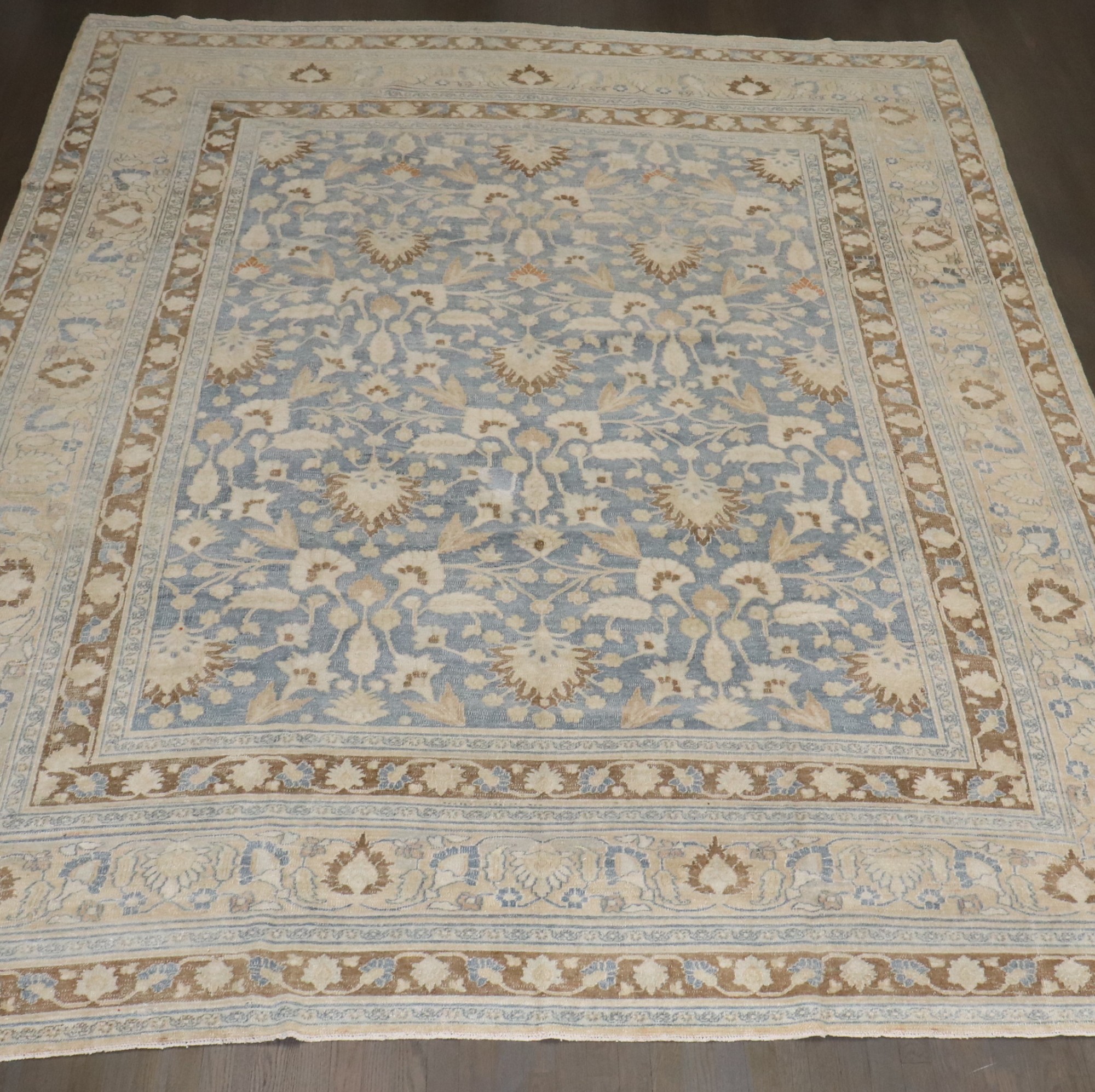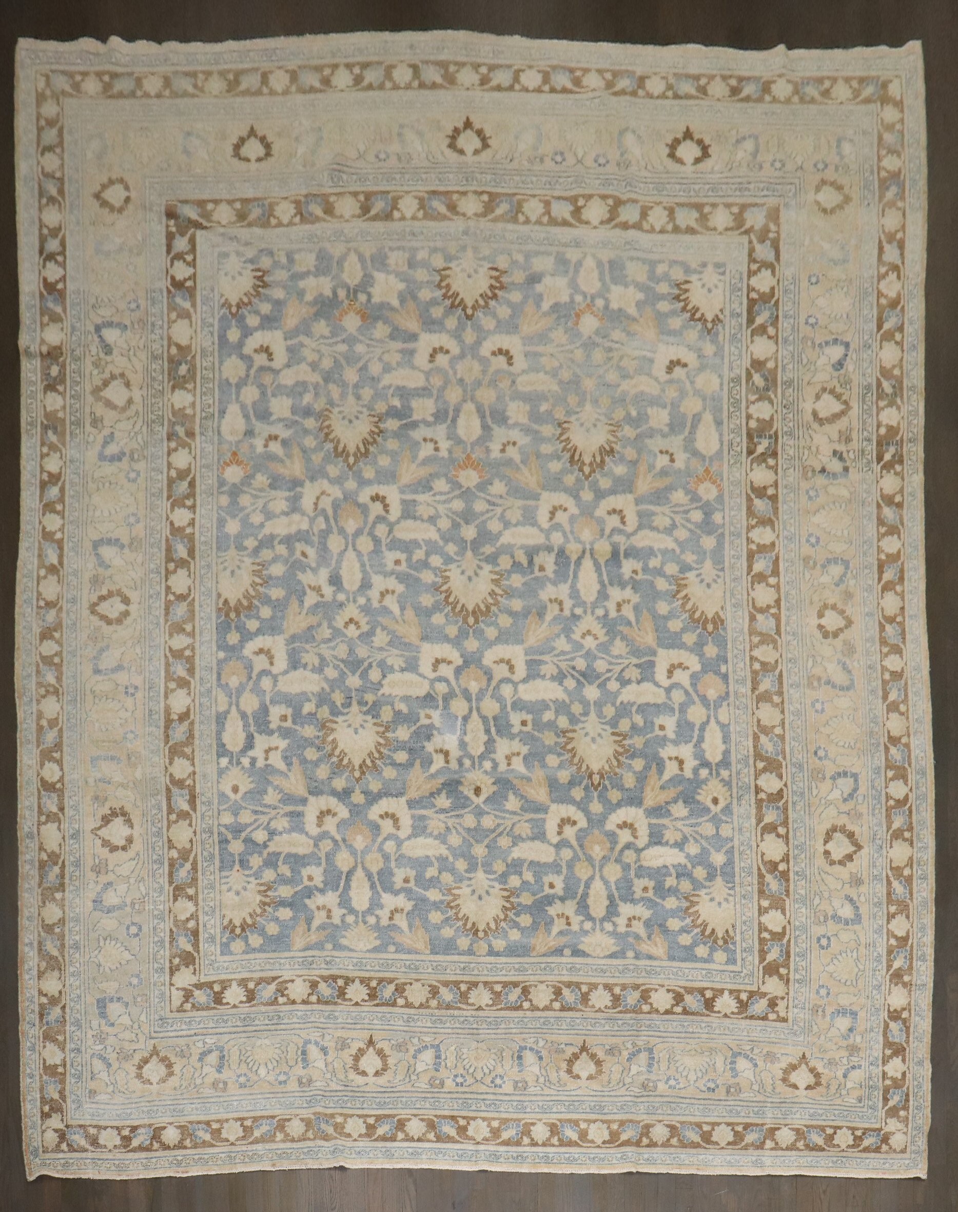 early 20th Century Persian Meshed Rug with an all over design on a soft blue field