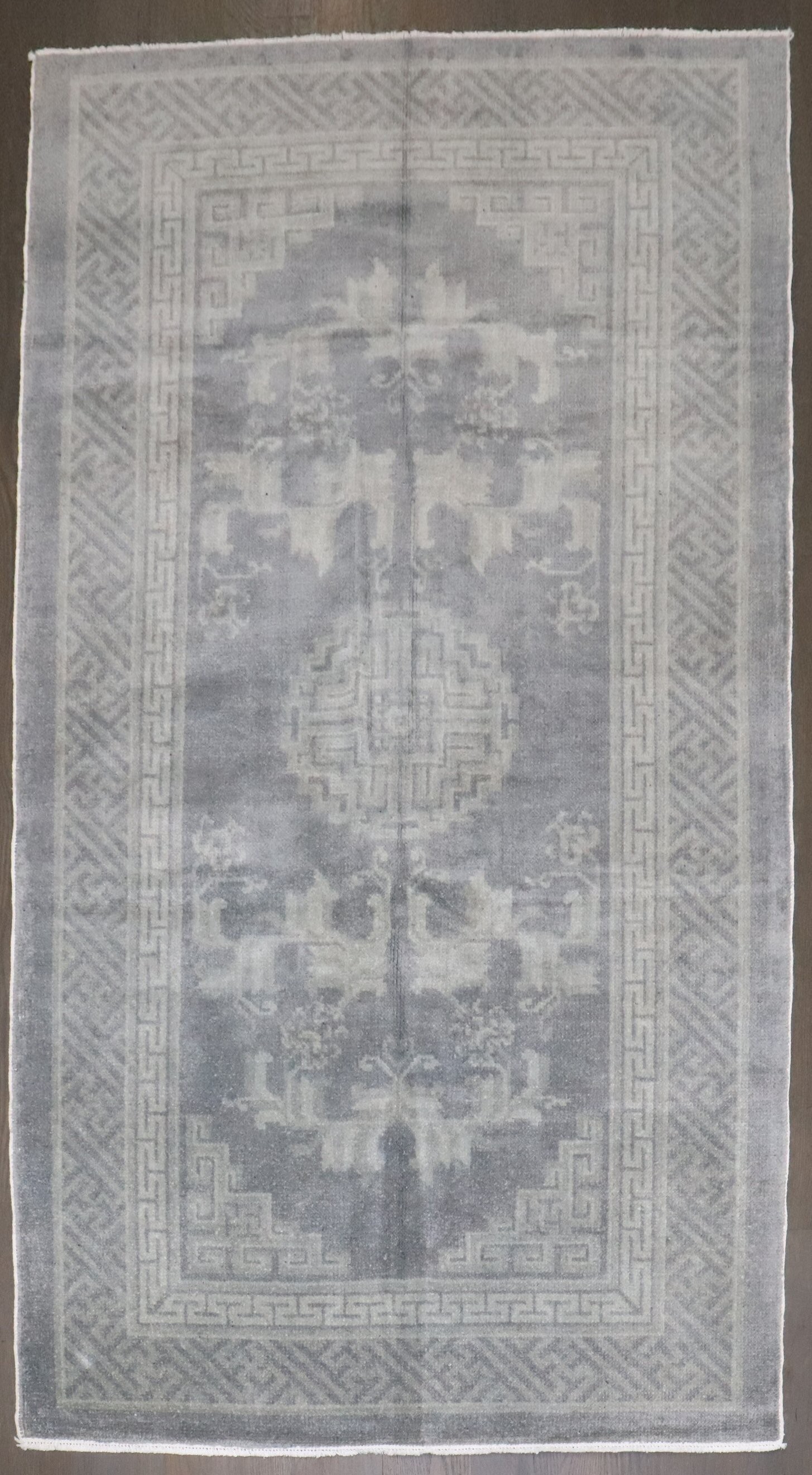 an early 20th Century Chinese Peking in rug in a misty bluiesh gray color