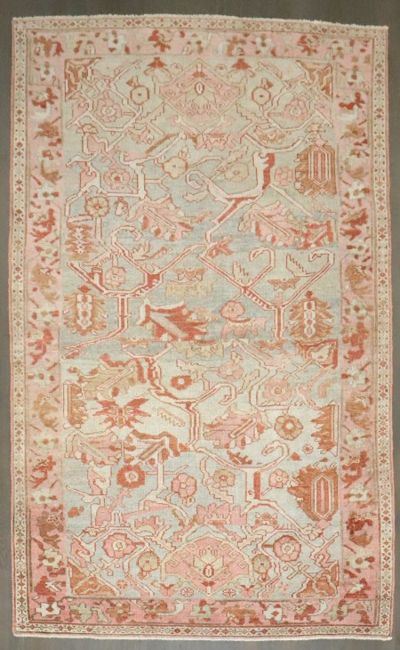 an accent size Persian Malayer rug in greens and pink from the 1st quarter of the 20th century