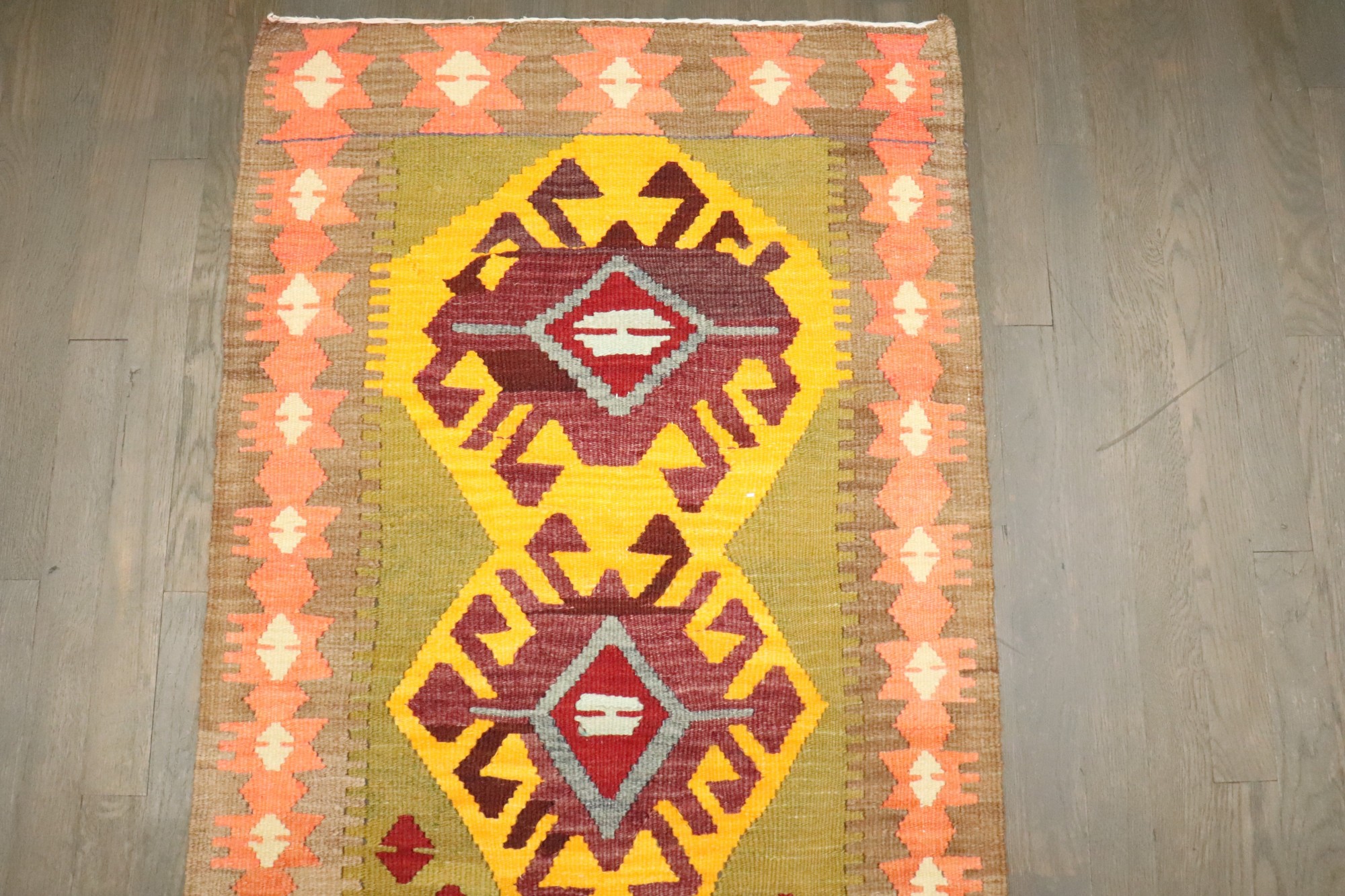 a vibrant mid 20th century Turkish Kilim