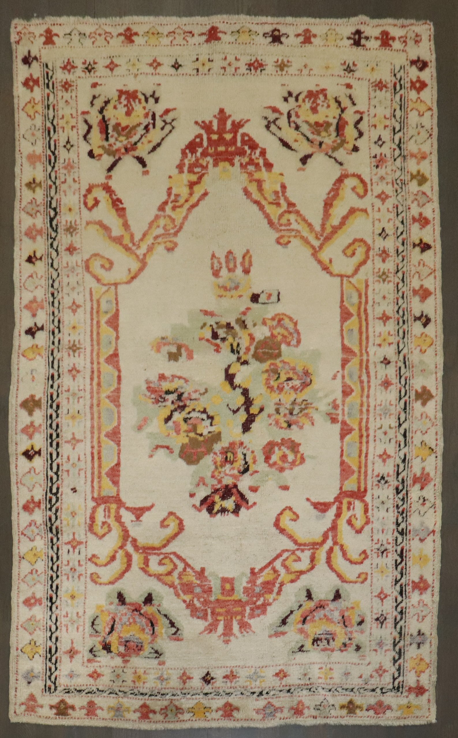 an early 20th century Ivory Turkish Ghiordes Rug