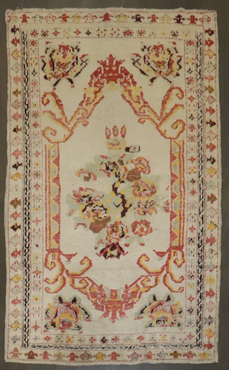 Ivory Antique Turkish Ghiordes Rug rug no. r1281