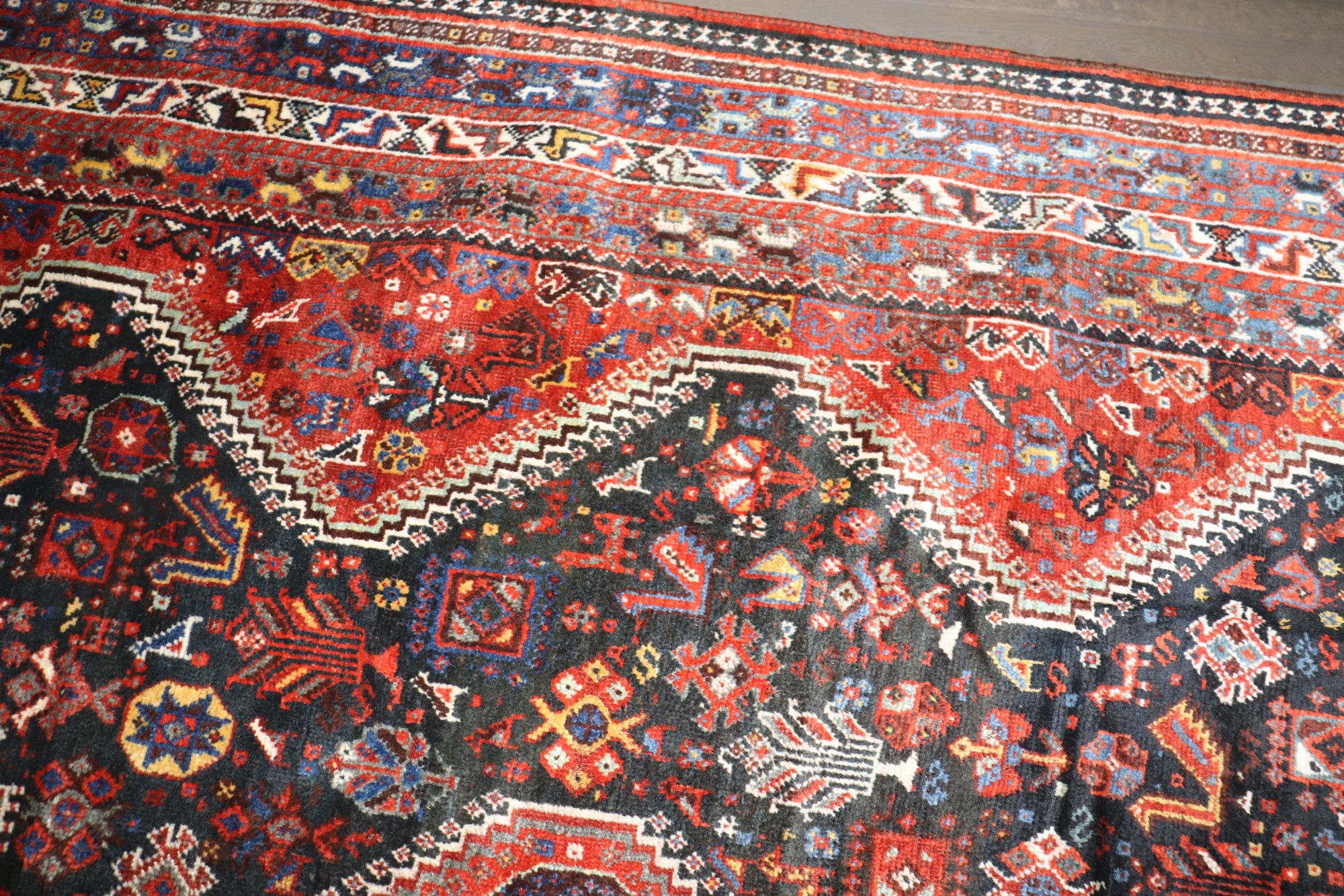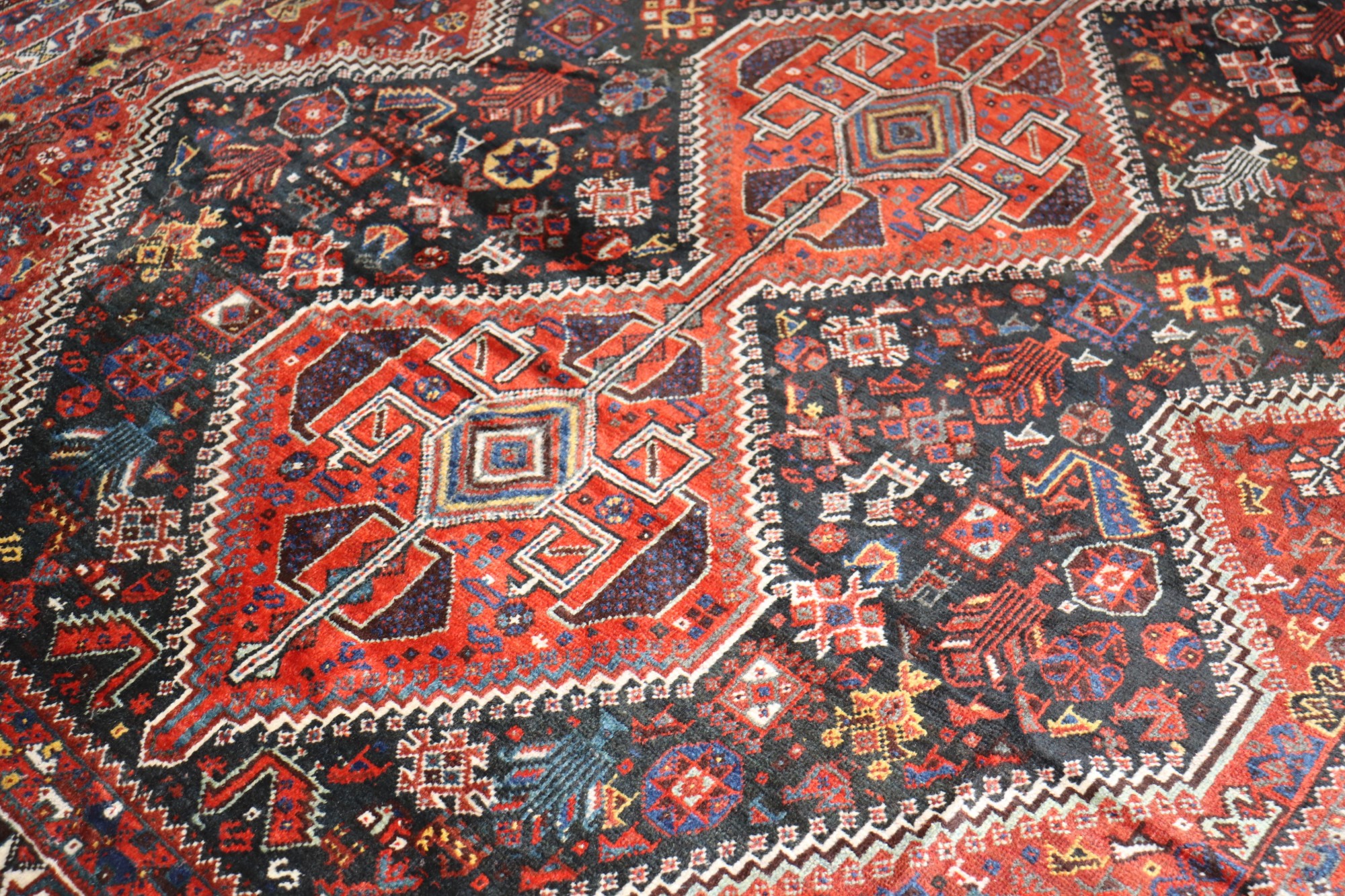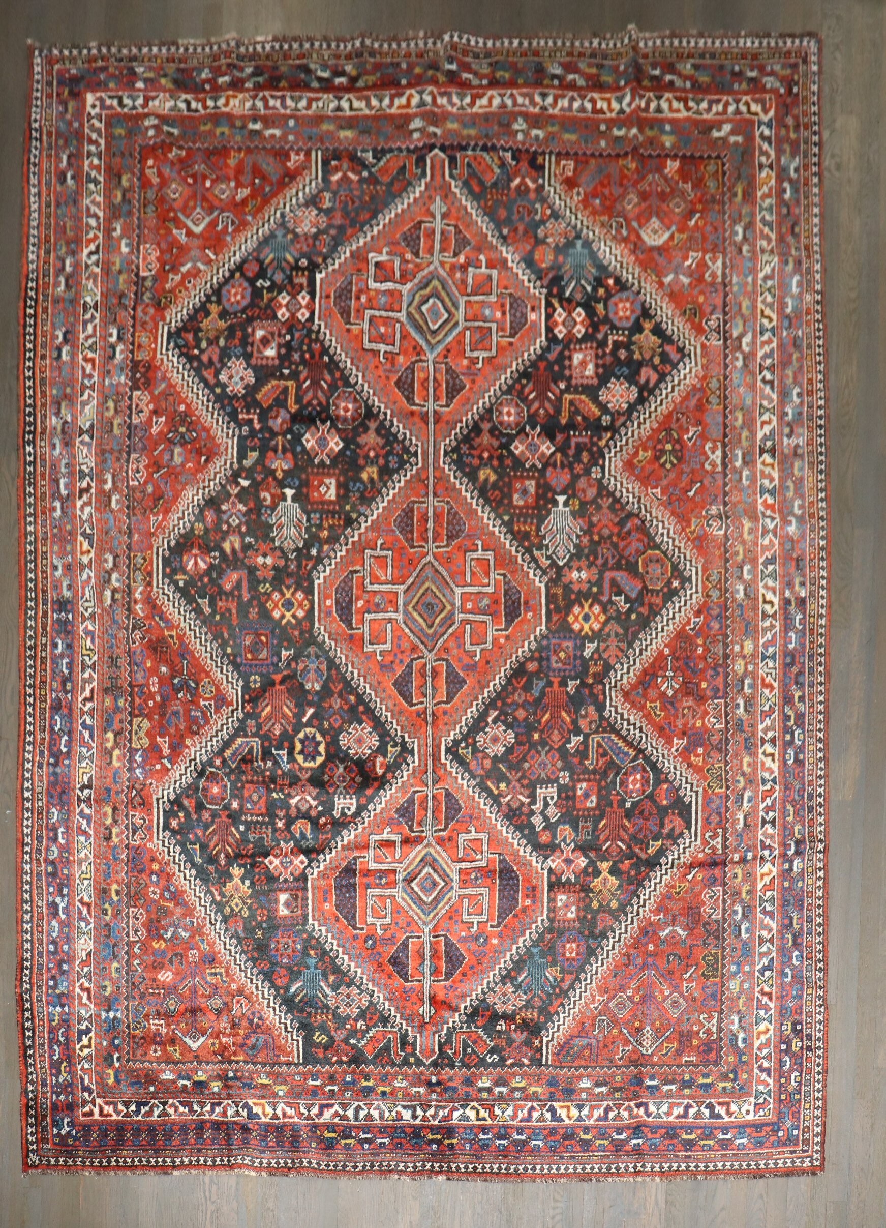 an early 20th-century Jewel Color Geometric Persian Shiraz Rug